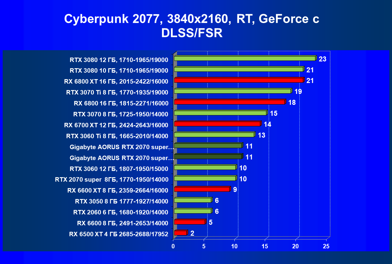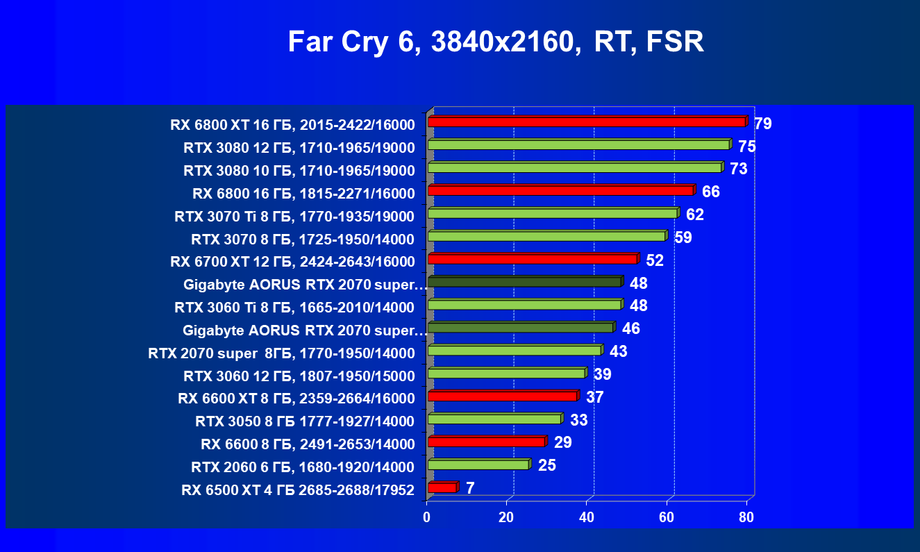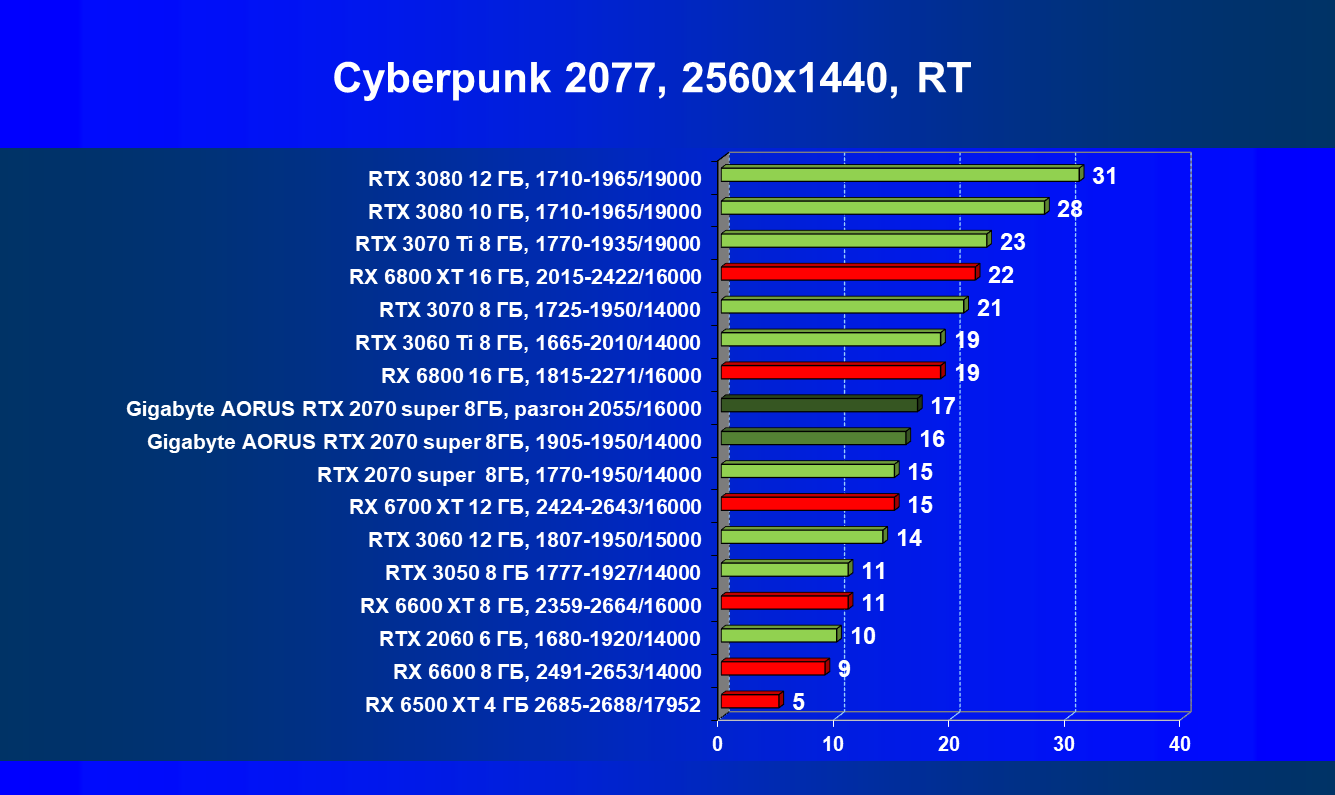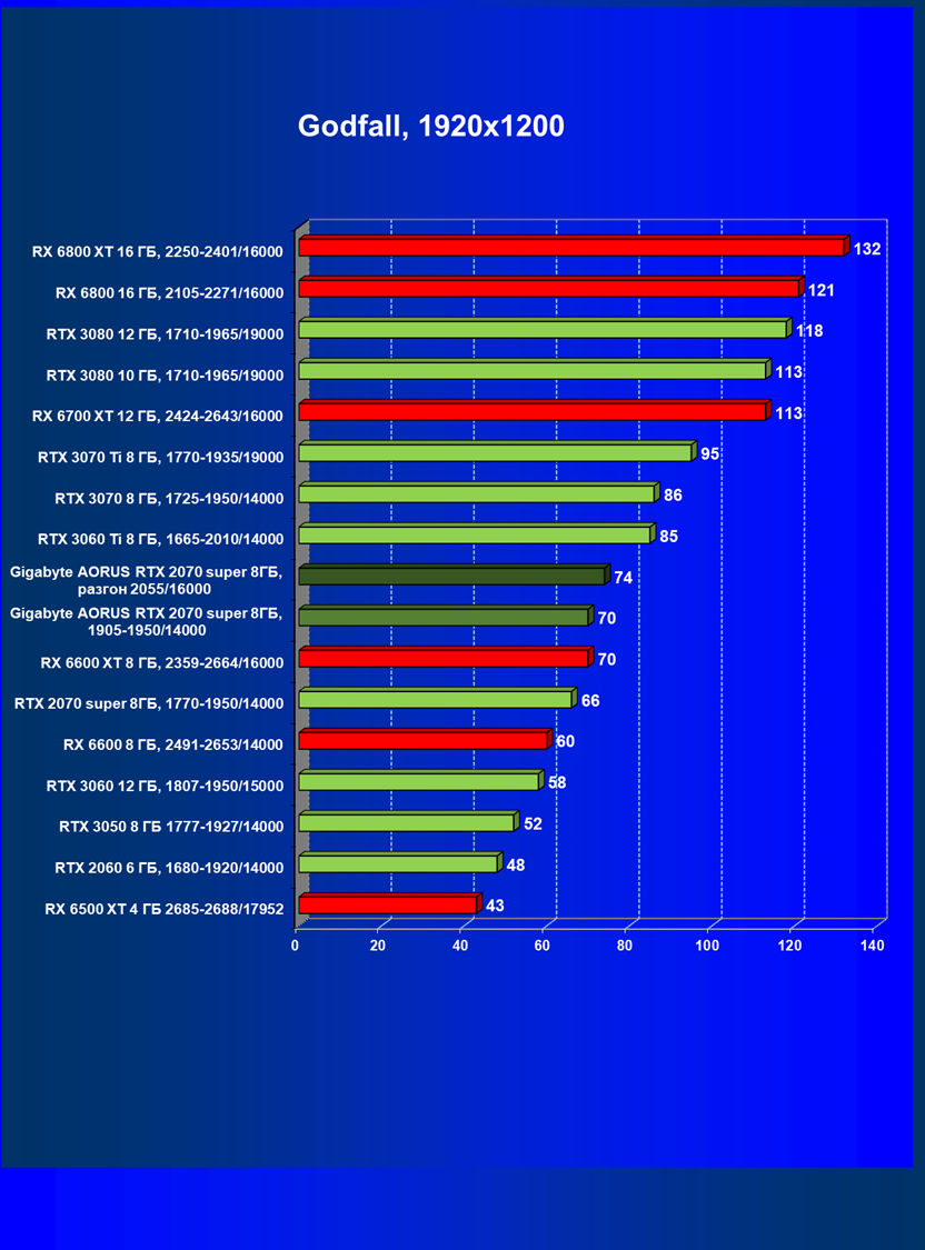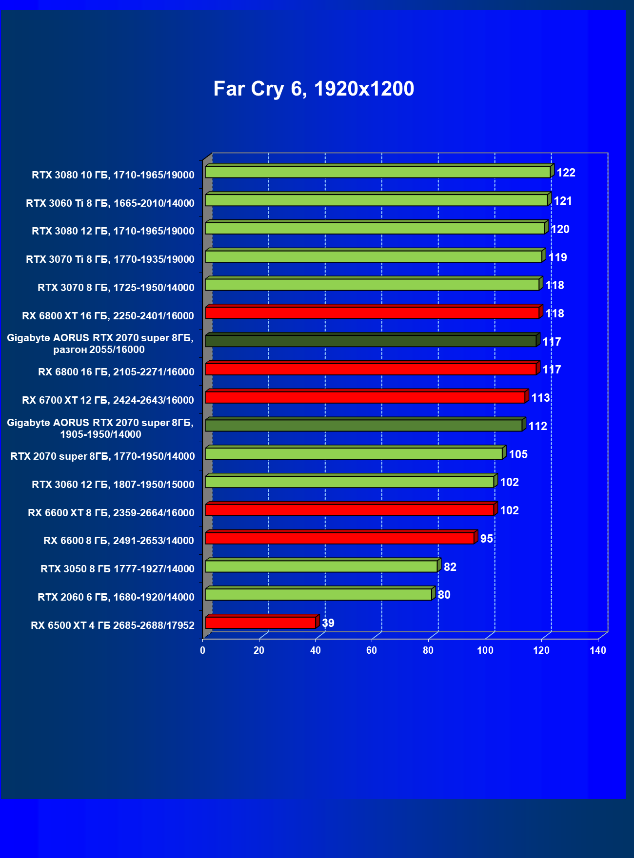 Многочисленные тесты доказали, что GeForce RTX 2070 Super демонстрирует отменную производительность во многих «классических» играх без использования трассировки лучей в разрешении Full HD и даже в 2.5K при условии максимального качества графики. Результат получается лучше, чем у GeForce RTX 3060 и где-то на уровне или чуть выше, чем у Radeon RX 6600 XT. Карта Gigabyte чуть производительнее референс-аналога.