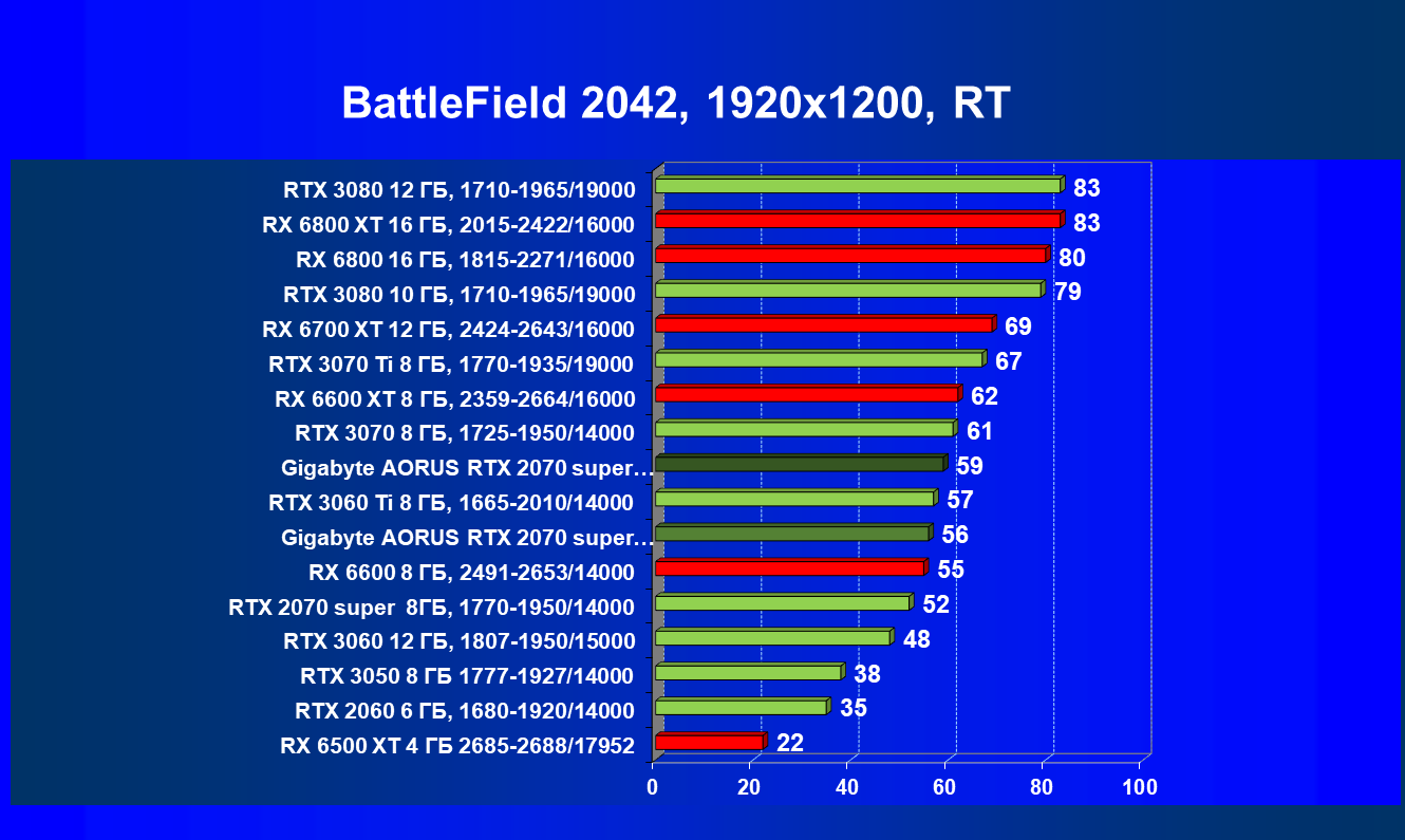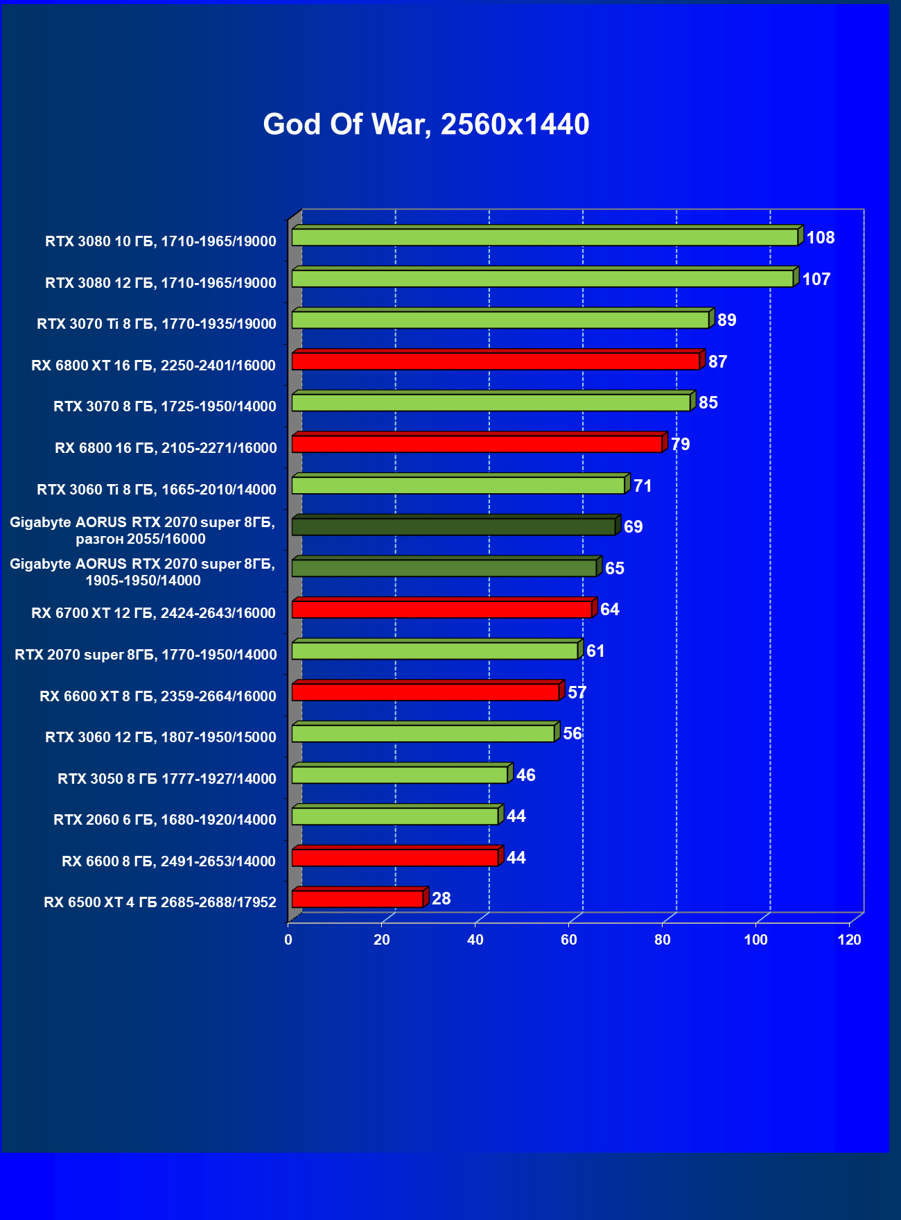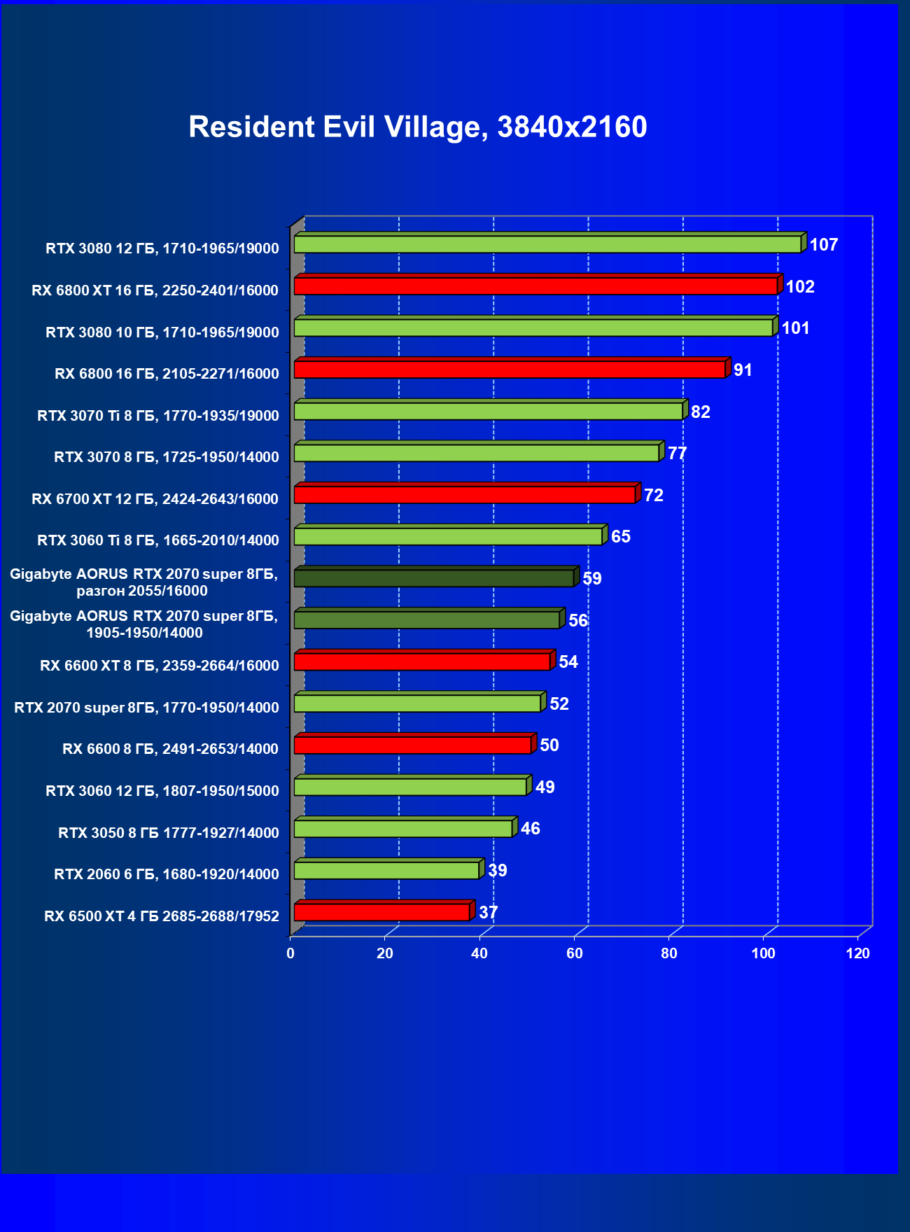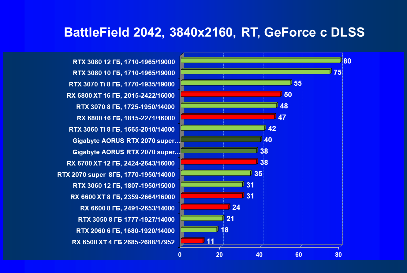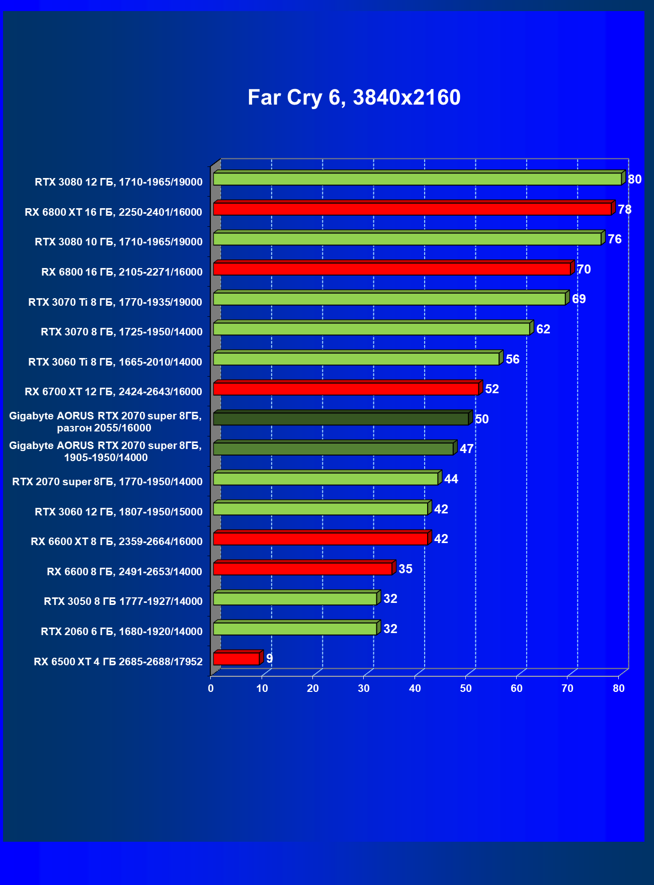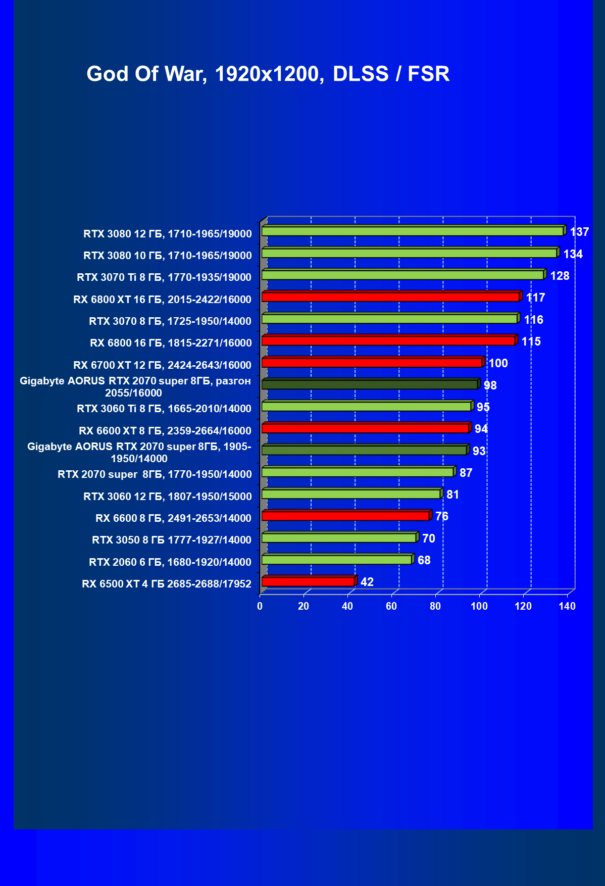 Многочисленные тесты доказали, что GeForce RTX 2070 Super демонстрирует отменную производительность во многих «классических» играх без использования трассировки лучей в разрешении Full HD и даже в 2.5K при условии максимального качества графики. Результат получается лучше, чем у GeForce RTX 3060 и где-то на уровне или чуть выше, чем у Radeon RX 6600 XT. Карта Gigabyte чуть производительнее референс-аналога.