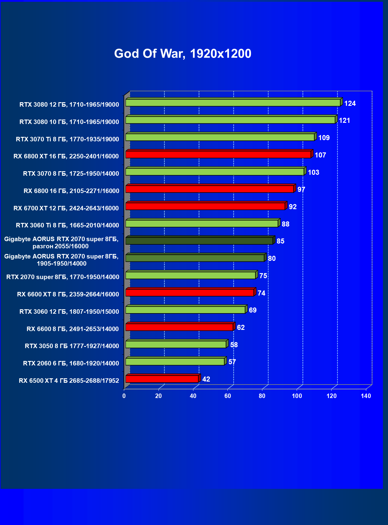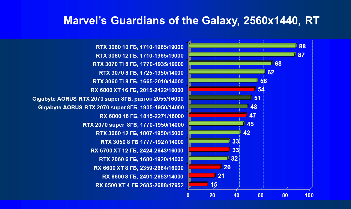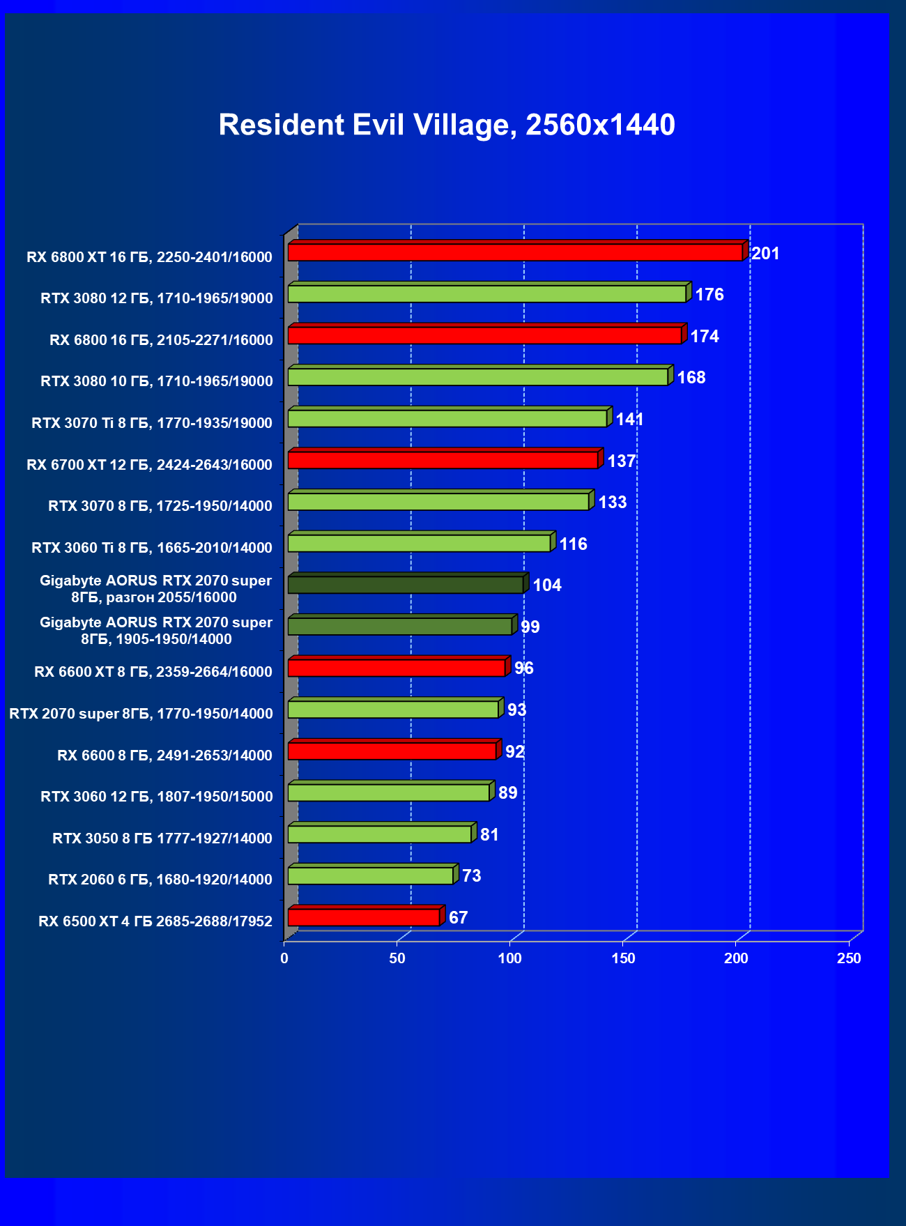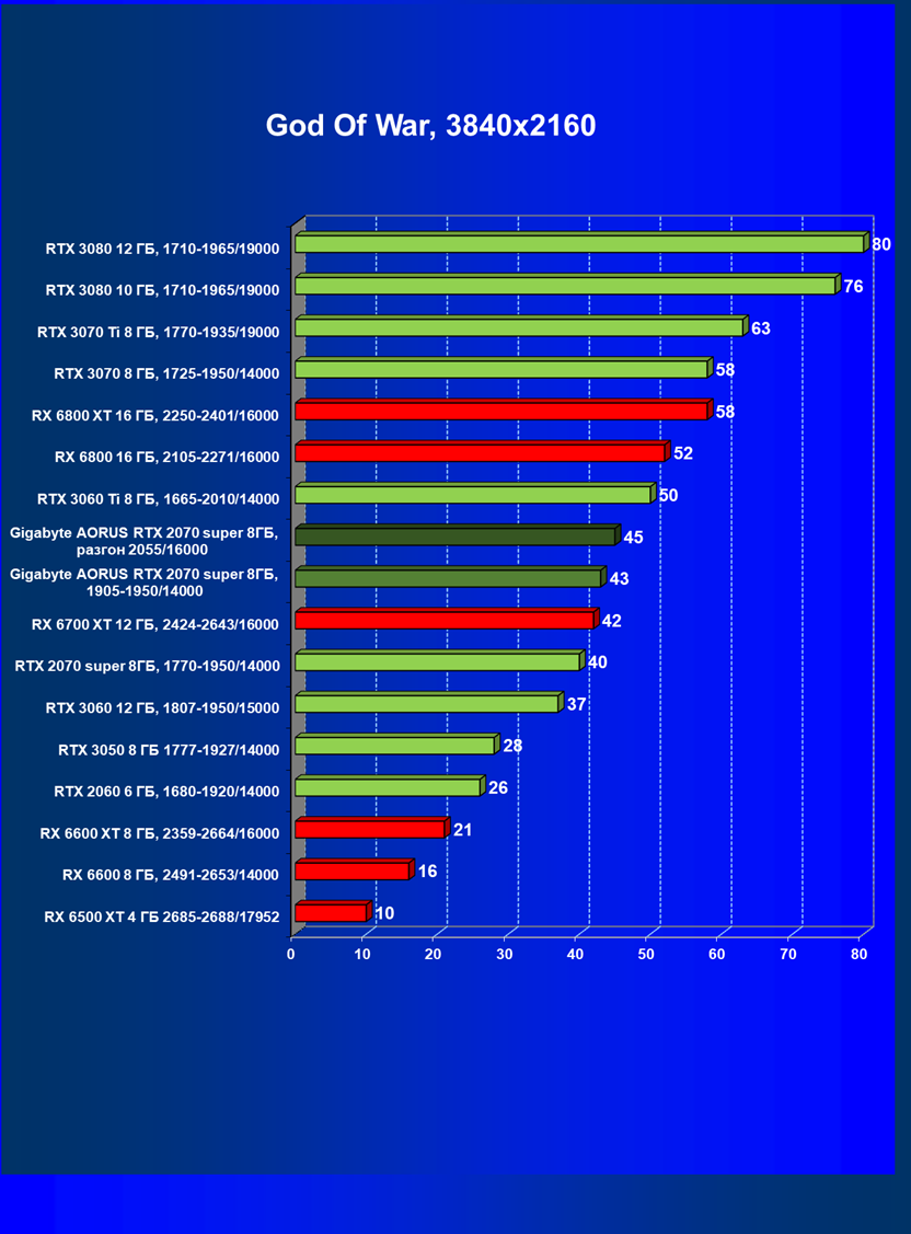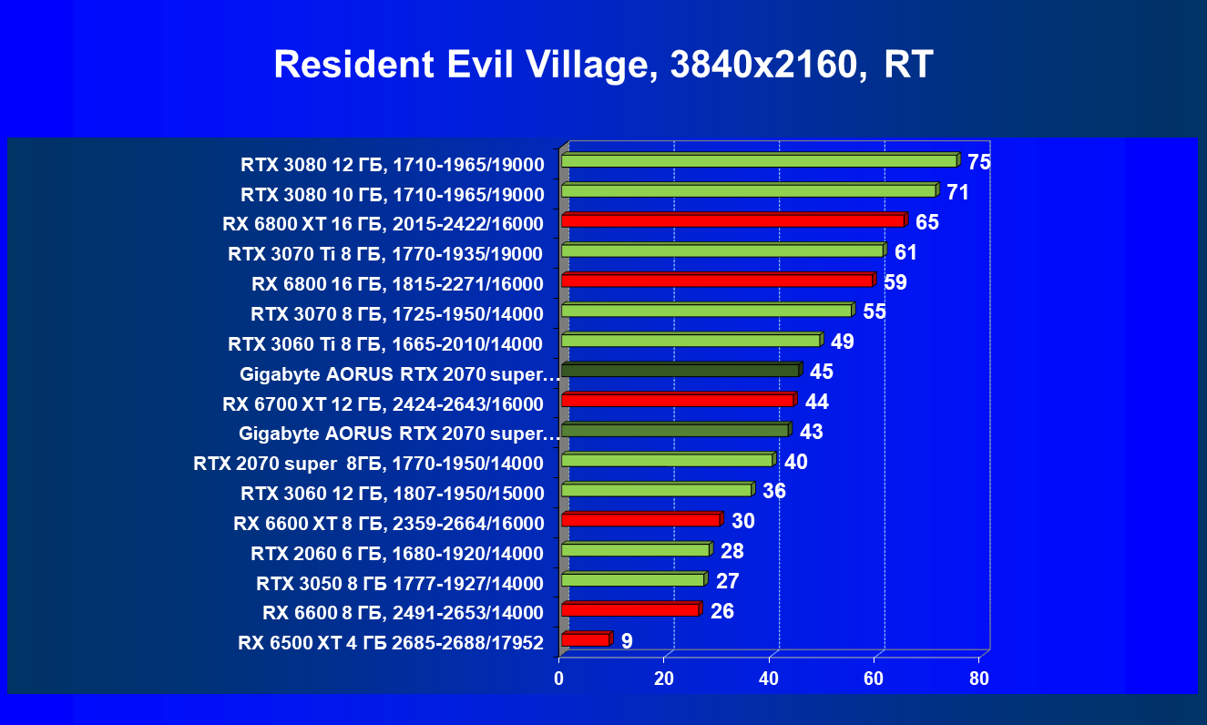 Многочисленные тесты доказали, что GeForce RTX 2070 Super демонстрирует отменную производительность во многих «классических» играх без использования трассировки лучей в разрешении Full HD и даже в 2.5K при условии максимального качества графики. Результат получается лучше, чем у GeForce RTX 3060 и где-то на уровне или чуть выше, чем у Radeon RX 6600 XT. Карта Gigabyte чуть производительнее референс-аналога.