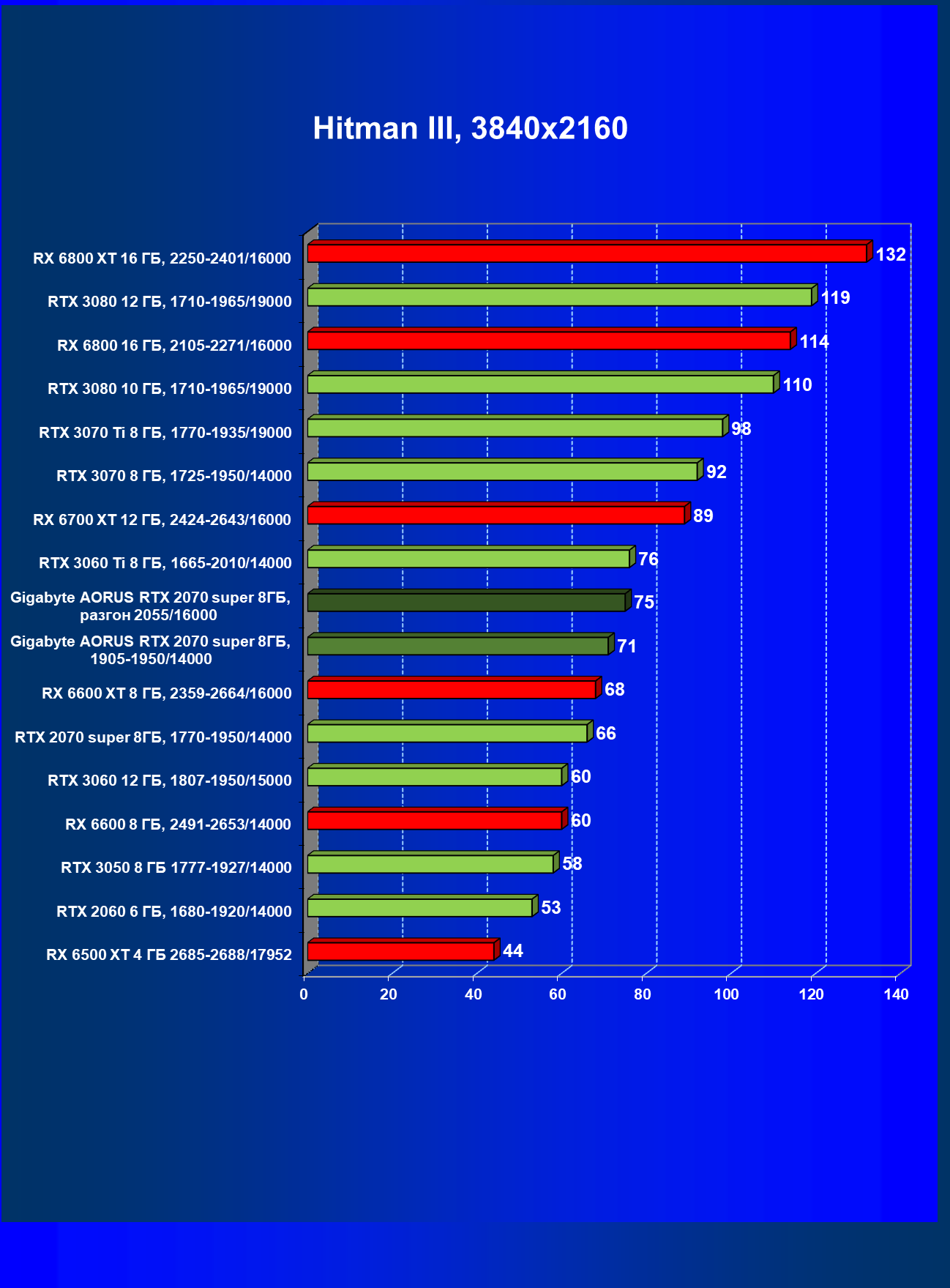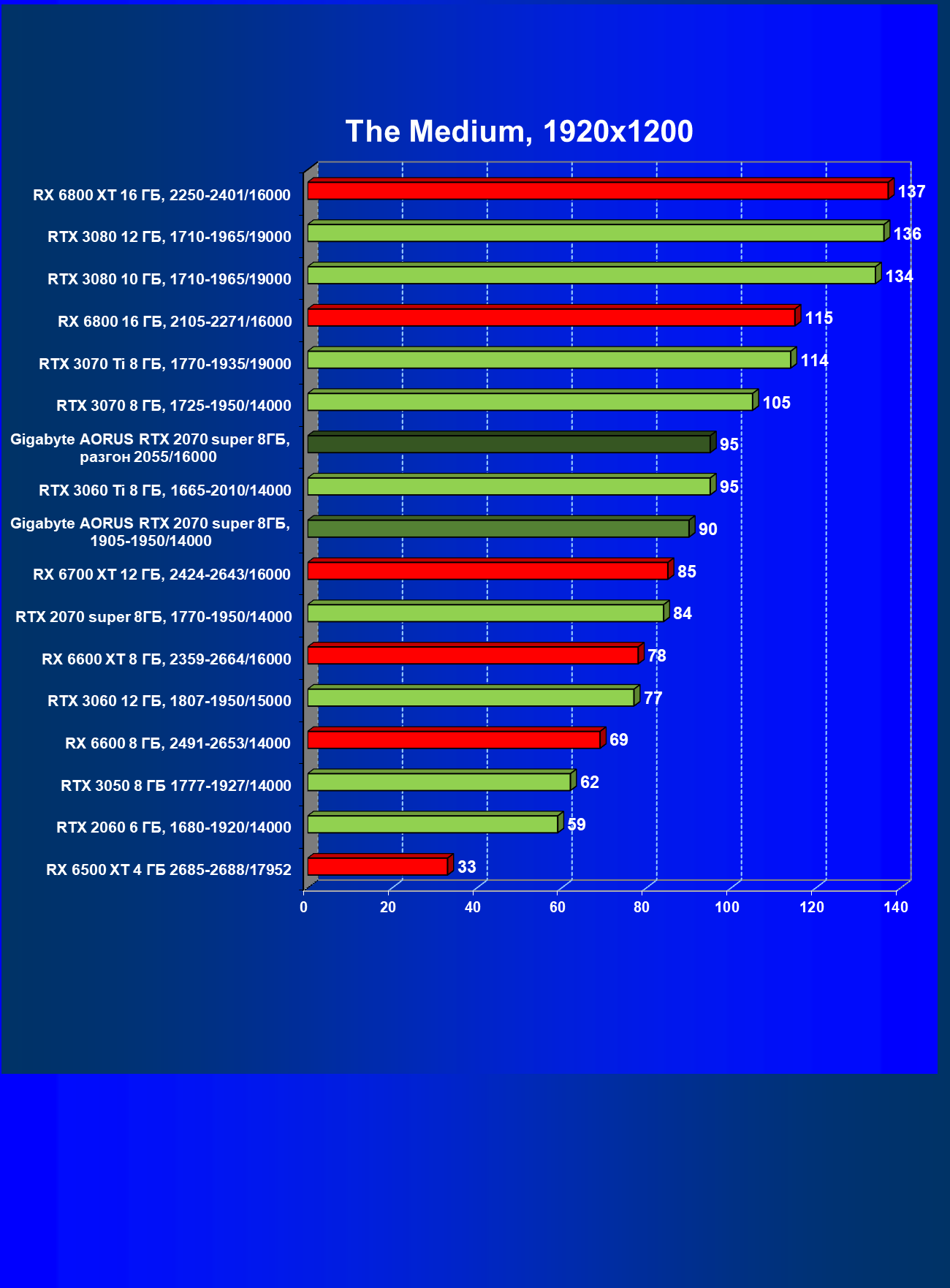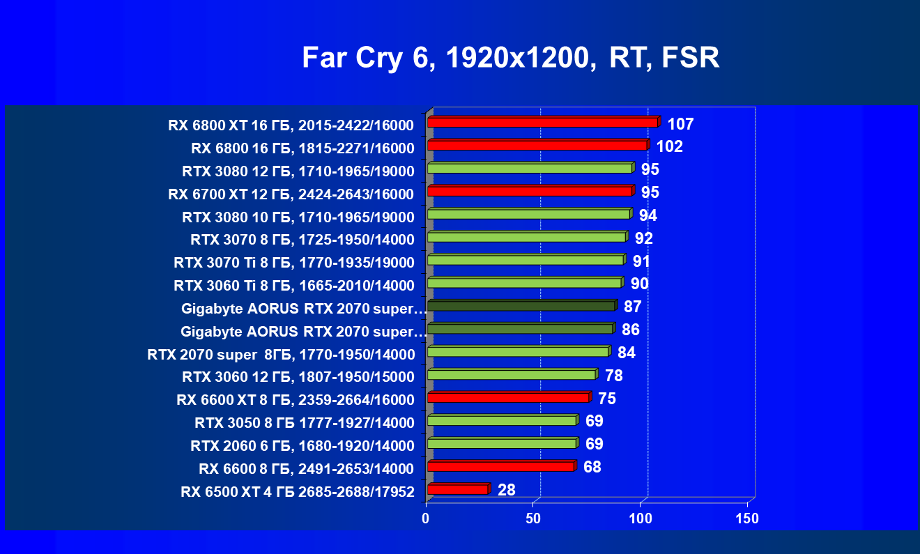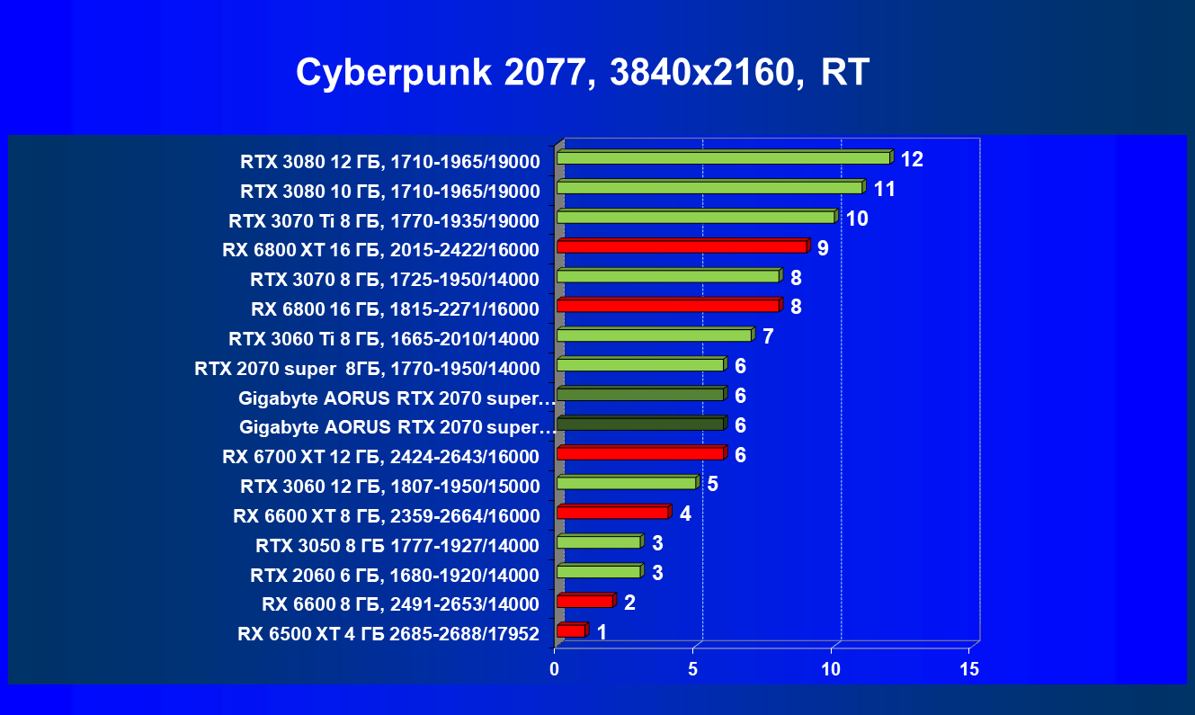 | 12 | RX 6600 XT 8 ГБ, 2359—2664/16000 | 210 | 38 | 56 000 |