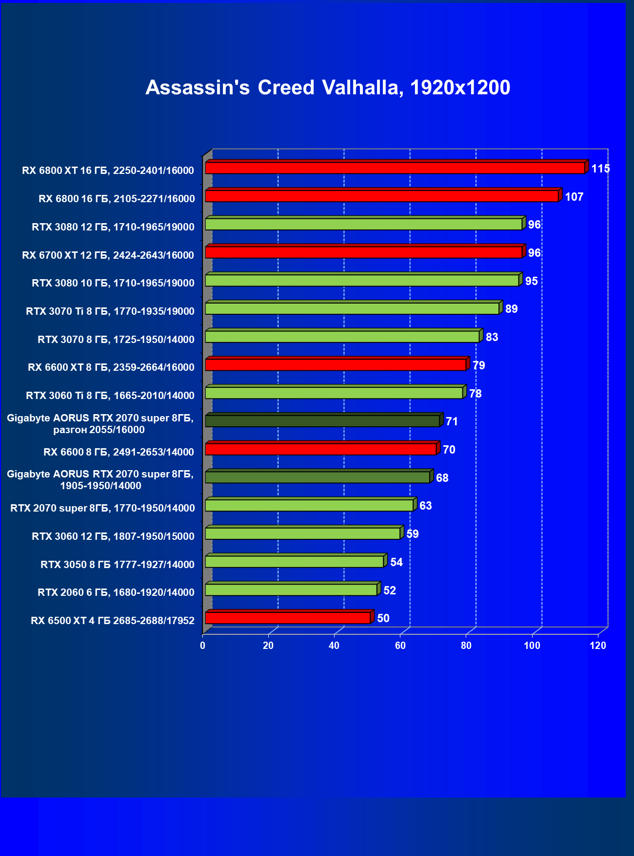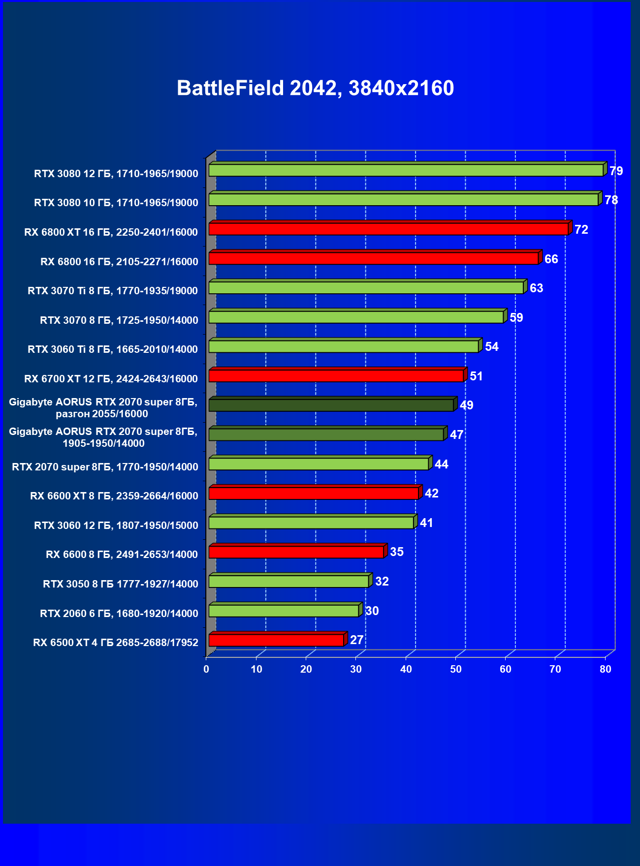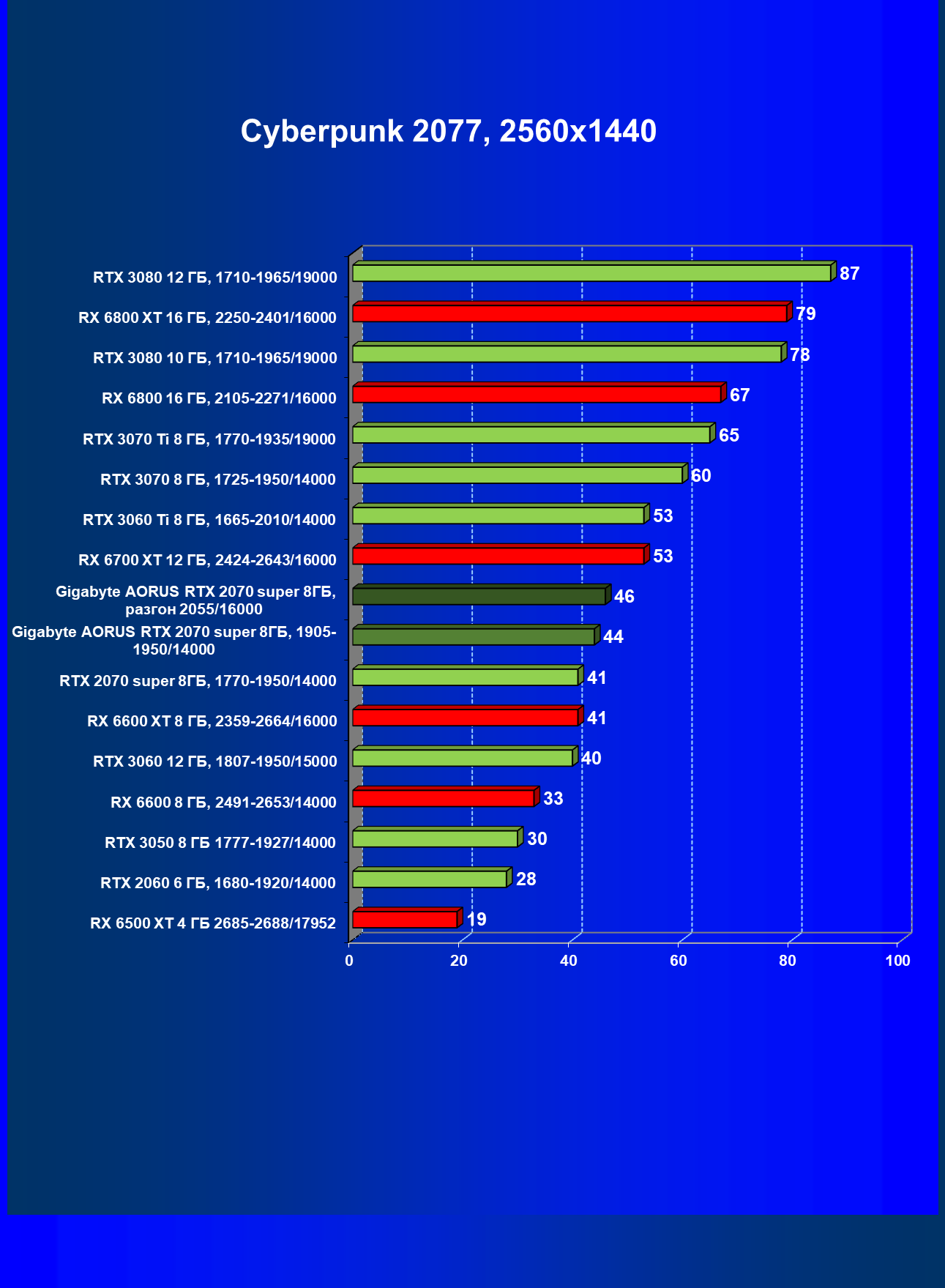 | 02 | Gigabyte Aorus RTX 2070 Super 8 ГБ, 1905—1950/14000 | 79 | 380 | 48 000 |