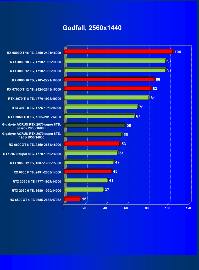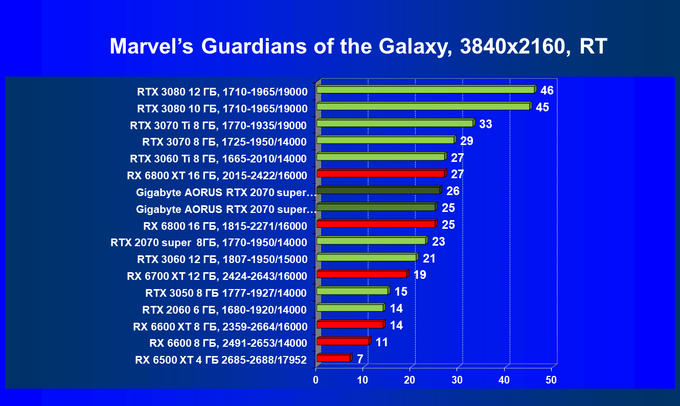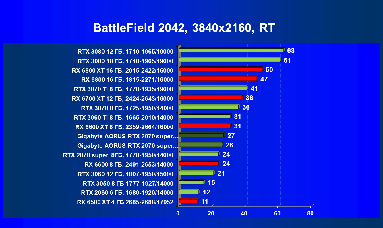 | 11 | RX 6600 XT 8 ГБ, 2359—2664/16000 | 38 | 210 | 56 000 |