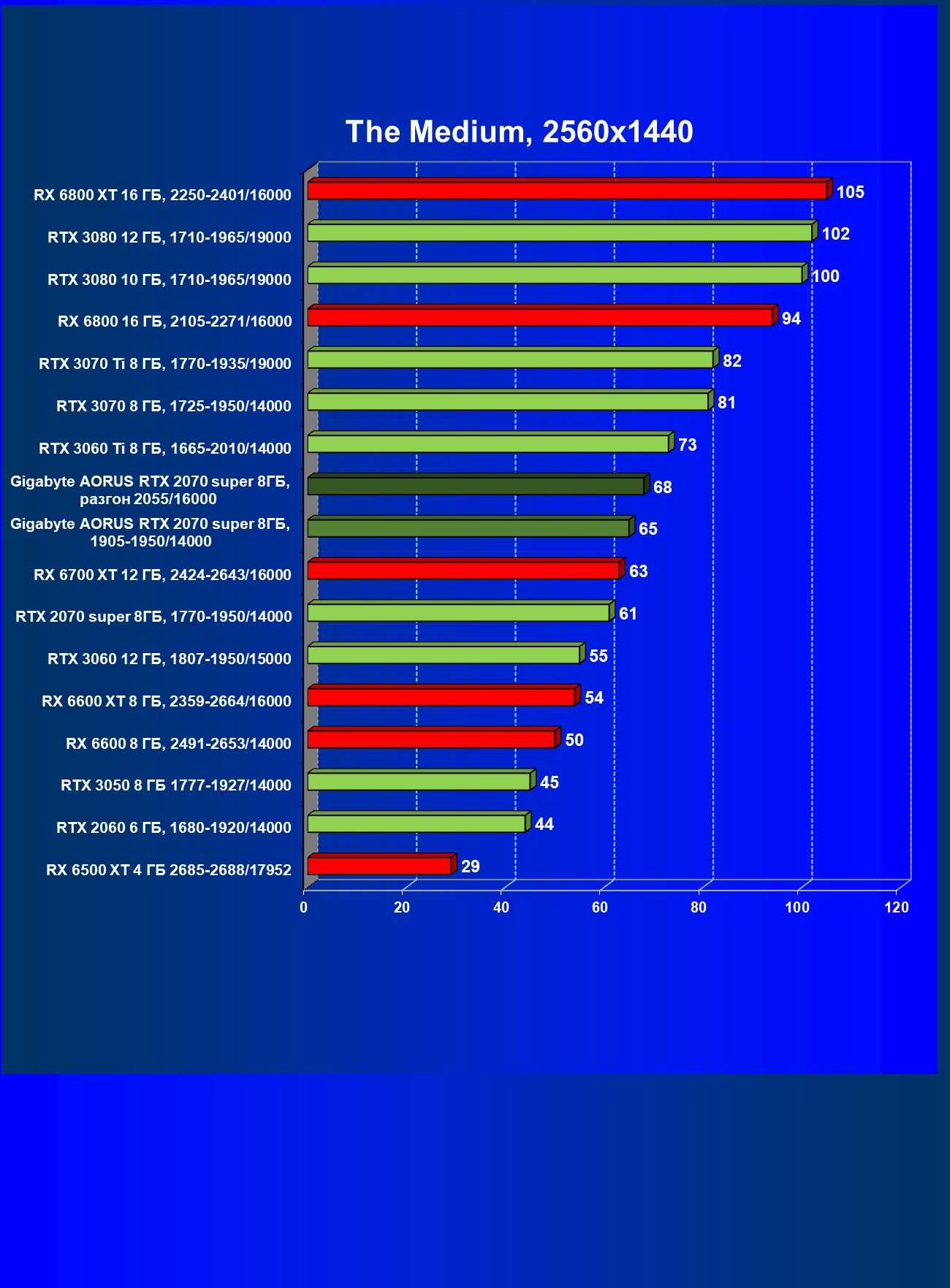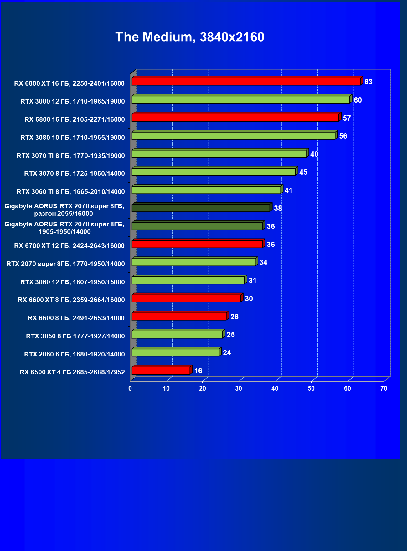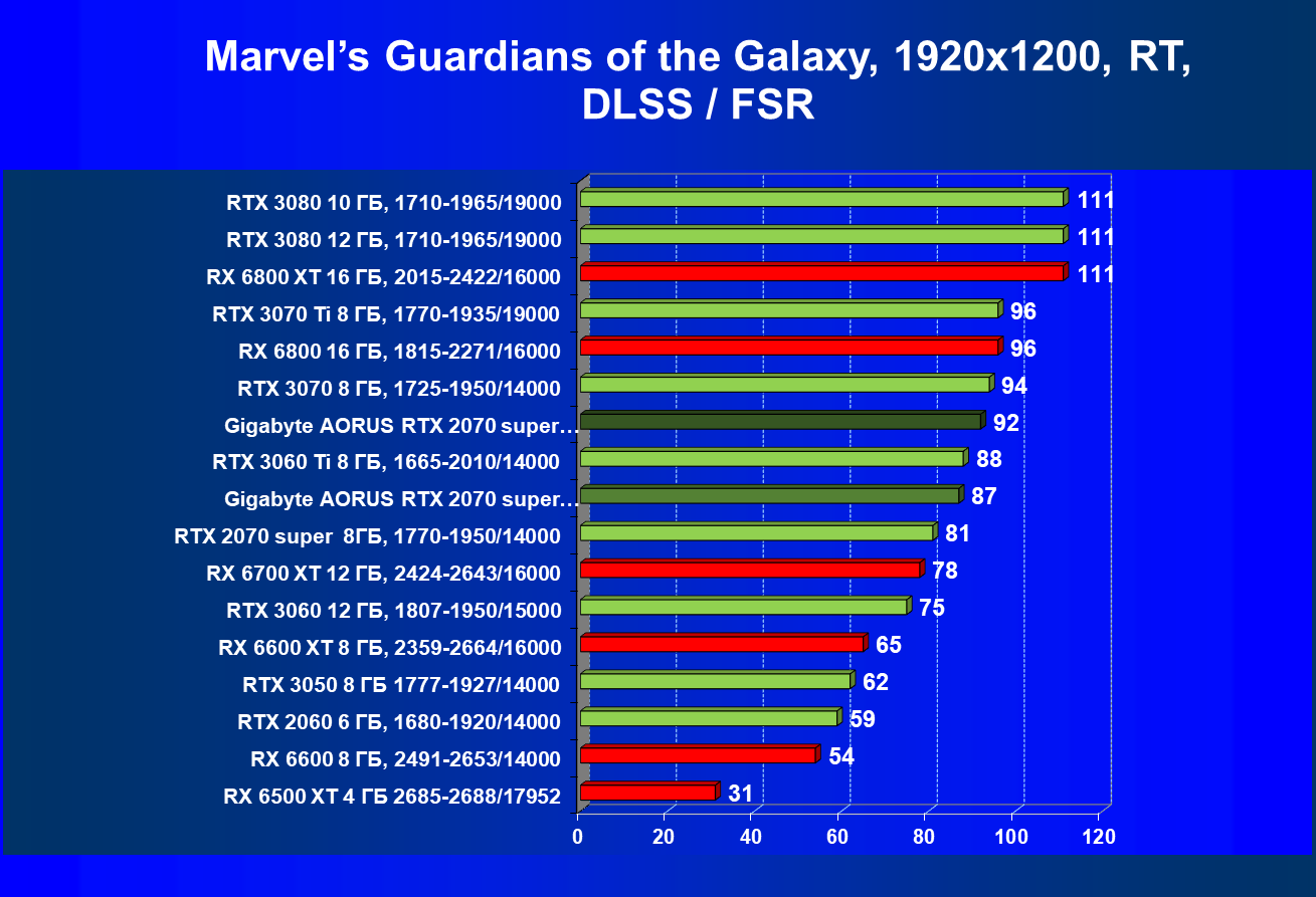 | 11 | RX 6600 XT 8 ГБ, 2359—2664/16000 | 38 | 210 | 56 000 |