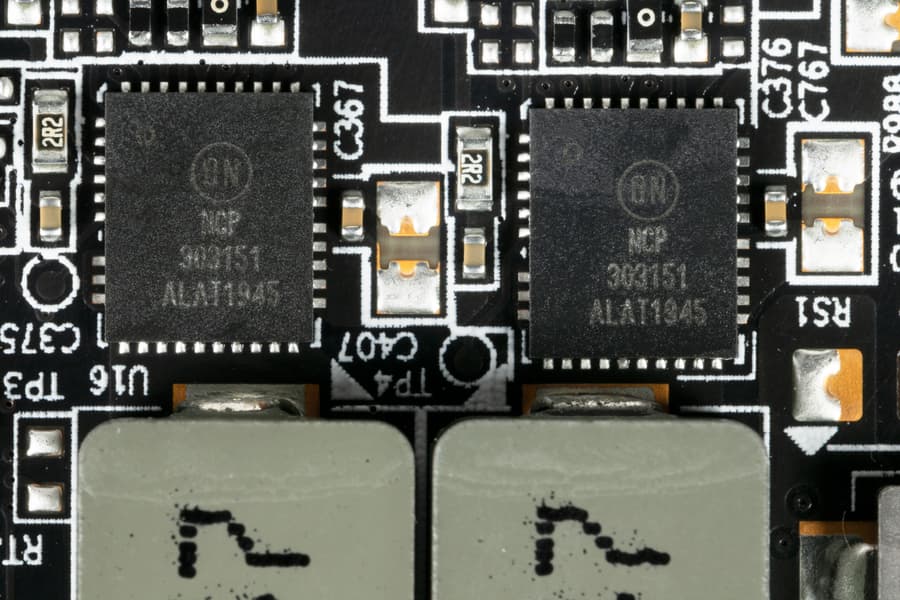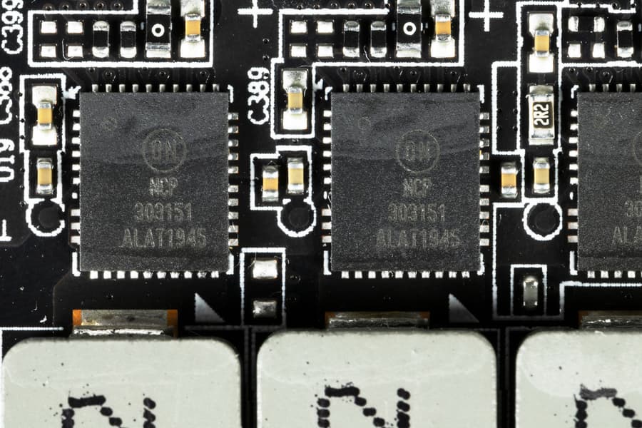 В преобразователе питания используются транзисторные сборки On Semiconductor — NCP303151, каждая из которых рассчитана максимум на 45 А.