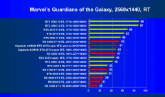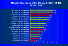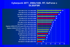 Результаты тестов со включенной аппаратной трассировкой лучей и/или DLSS / FSR в разрешениях 1920×1200, 2560×1440 и 3840×2160