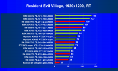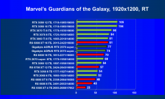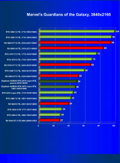 Следует повторить, что серия карт GeForce RTX 30 работает с RT и DLSS 2.0 более эффективно, чем предыдущая: прирост производительности в таких тестах у GeForce RTX 30 относительно GeForce RTX 20 выше, нежели в тестах без RT/DLSS.