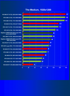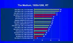 | 09 | Gigabyte Aorus RTX 2070 Super 8 ГБ, разгон 2055/16000 | 400 | 83 | 48 000 |