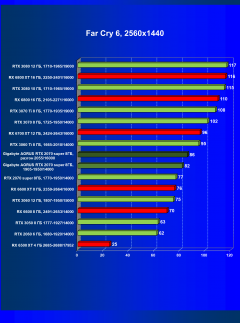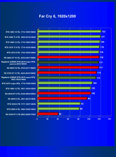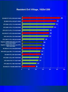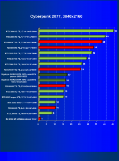 В штатном режиме частота работы исследуемой карты повышена на 7,6% относительно референсного варианта, и производительность примерно на 6% выше. В итоге видеокарта Gigabyte успешно обходит всех взятых нами для сравнения соперников. Разгон на 100 МГц по ядру и 1000 МГц по памяти добавляет еще 4% скорости, и тогда рассмотренный ускоритель во многих играх может даже догонять GeForce RTX 3060 Ti, обладая при этом меньшей ценой.