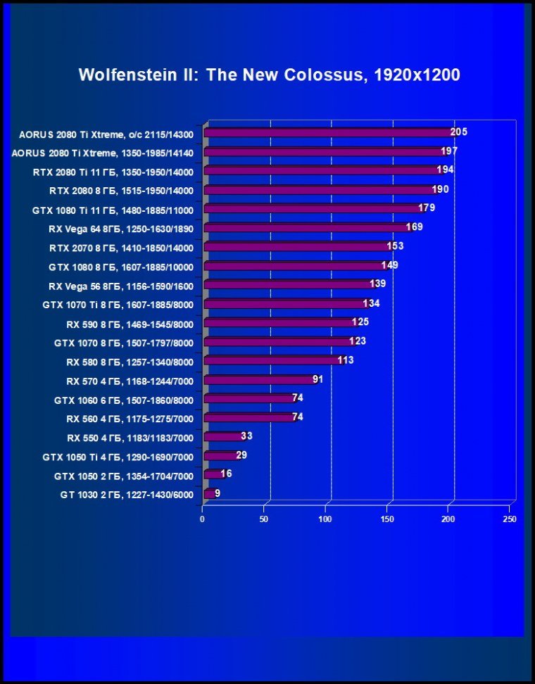 | 17 | Aorus 2080 Ti Xtreme, o/c 2115/14300 (ручной разгон) | 229 | 2210 | 96 500 |