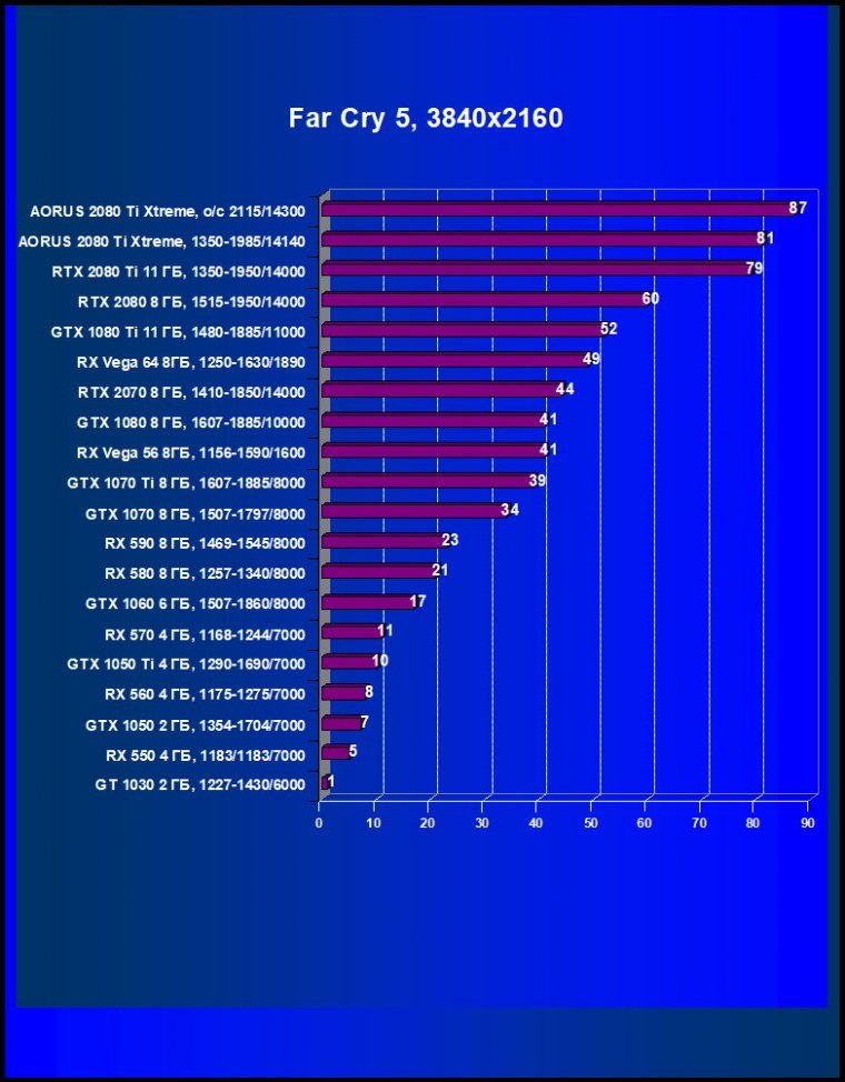 Возвращаясь к результатам RTX 2080 Ti, отметим, что соперники логично отстают.