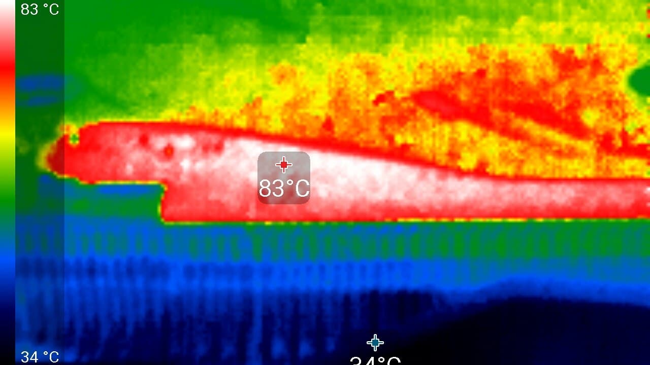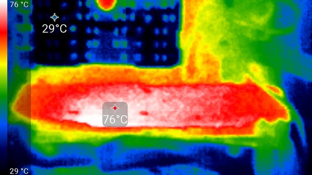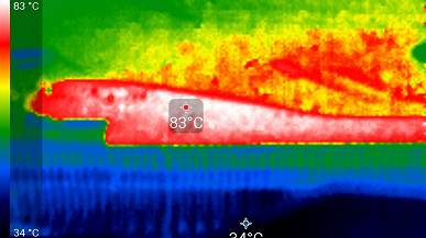 Максимальный нагрев — край с обратной стороны печатной платы.