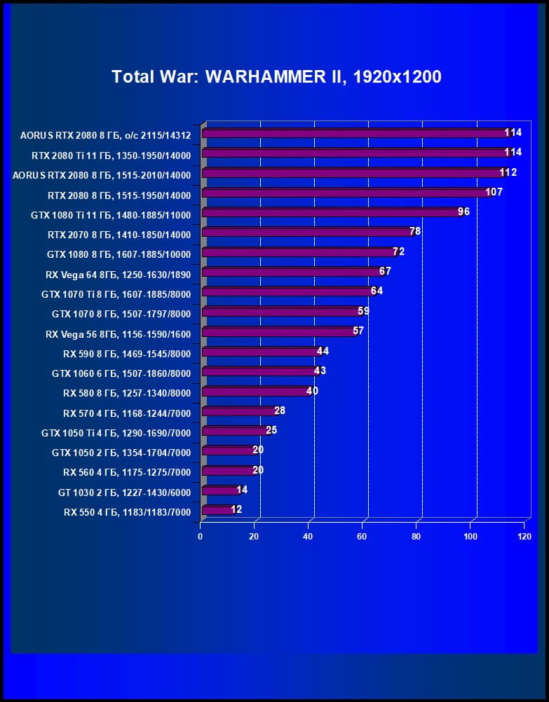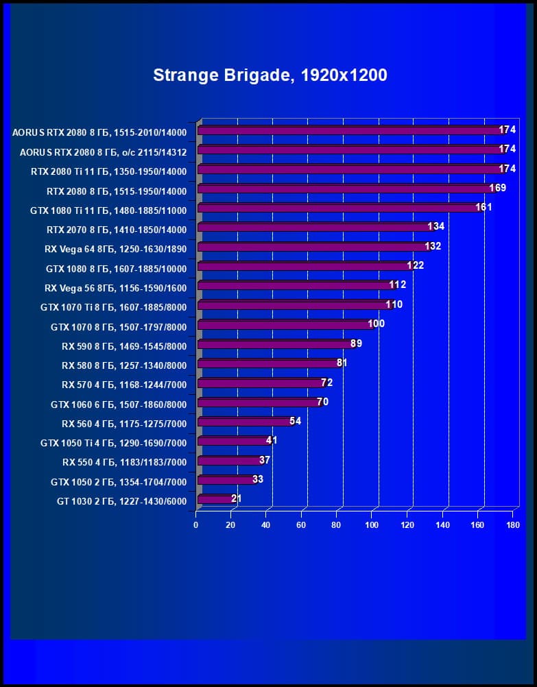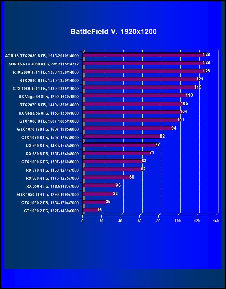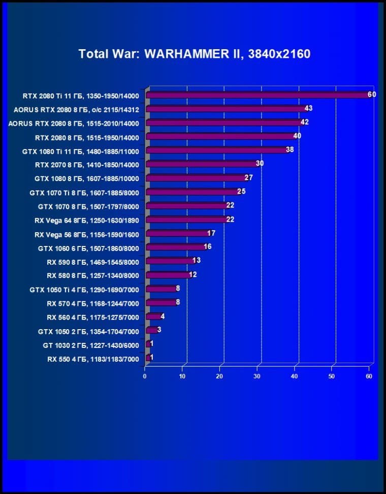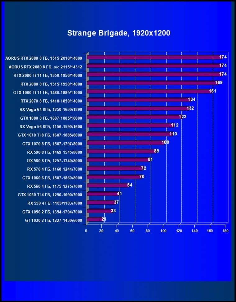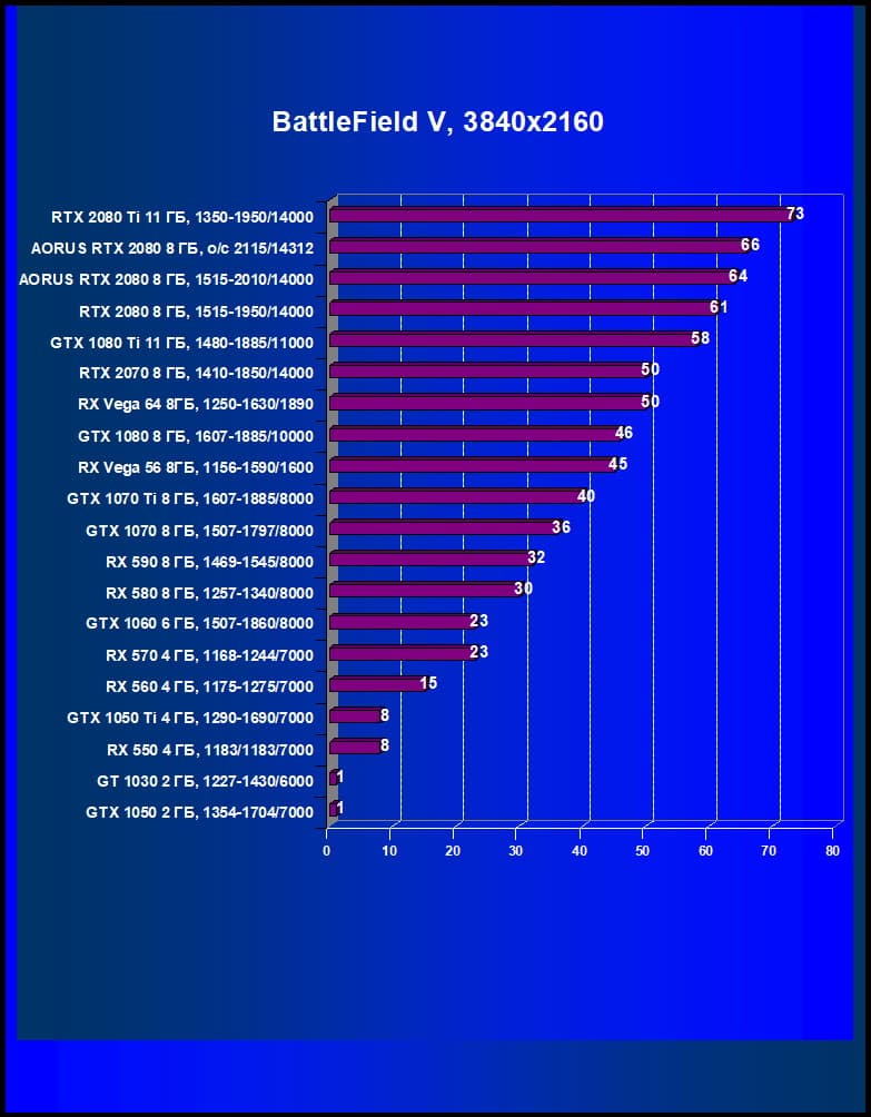| 11 | Aorus RTX 2080 8 ГБ, o/c 2115/14312 | 256 | 1552 | 60 700 |