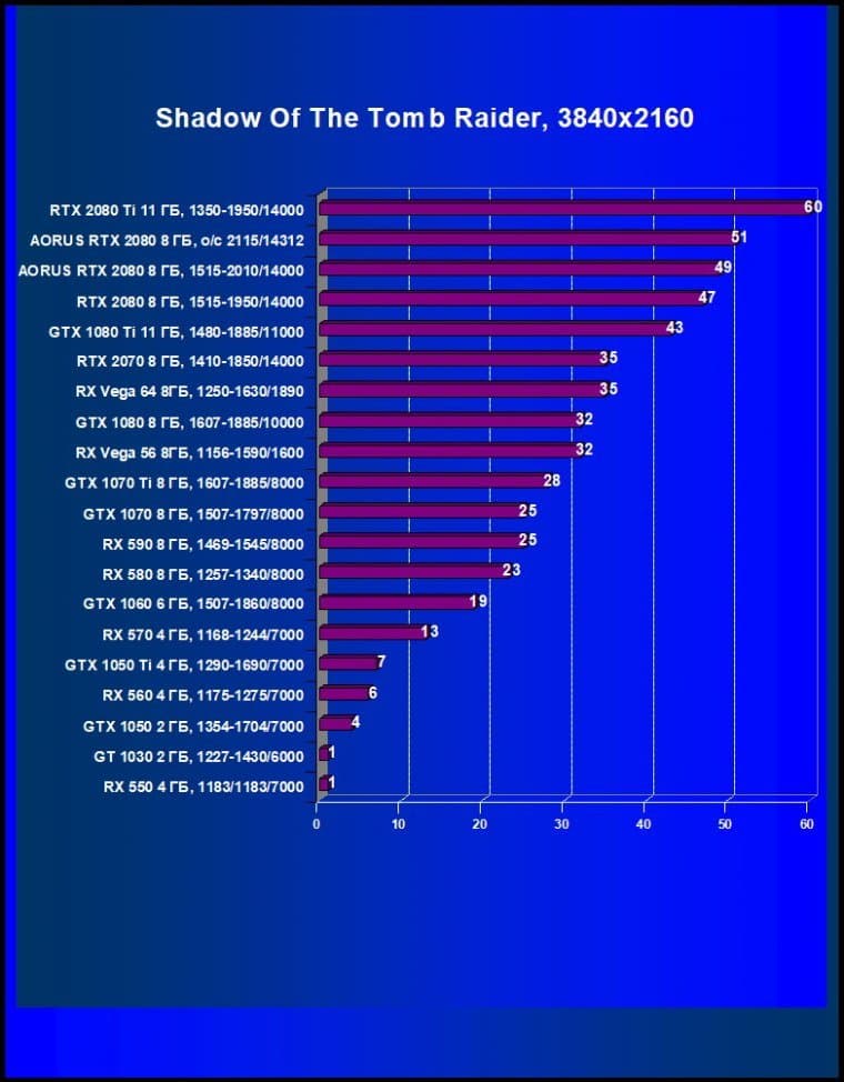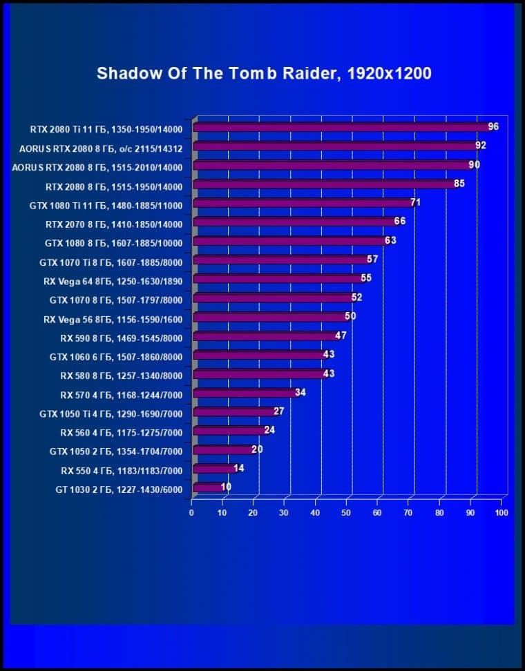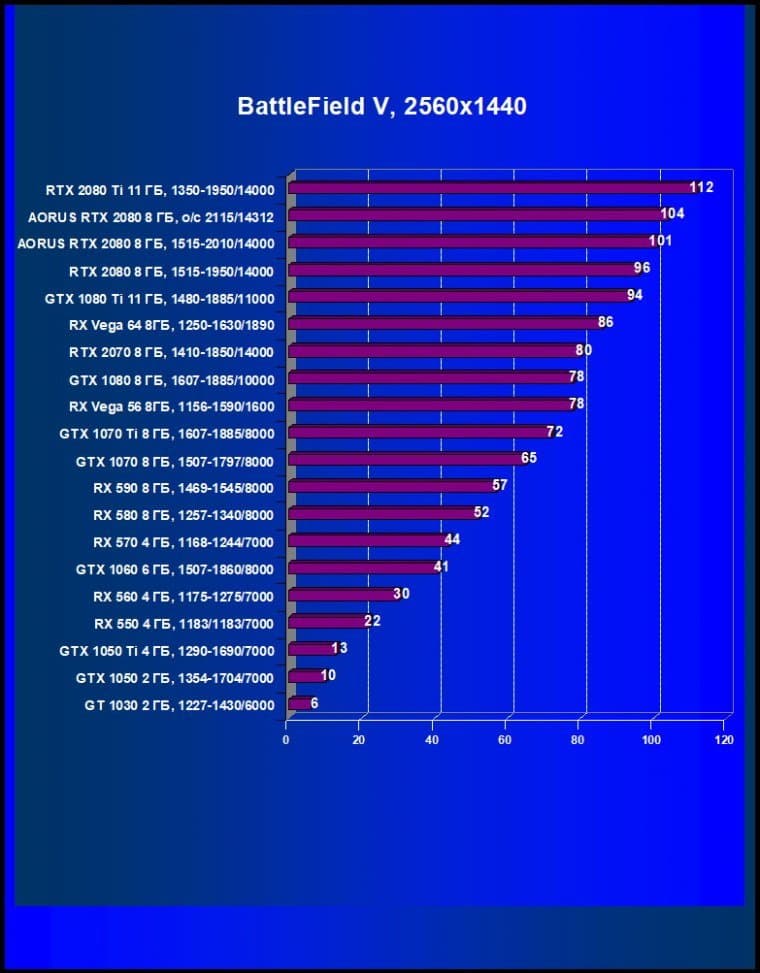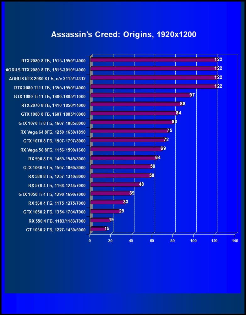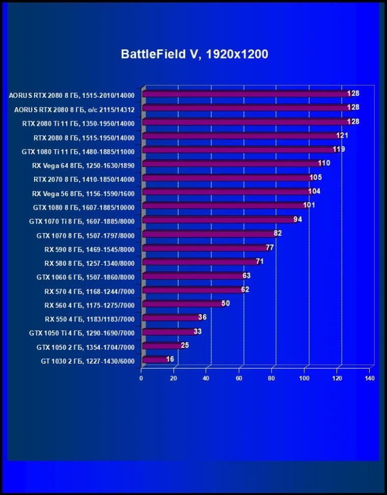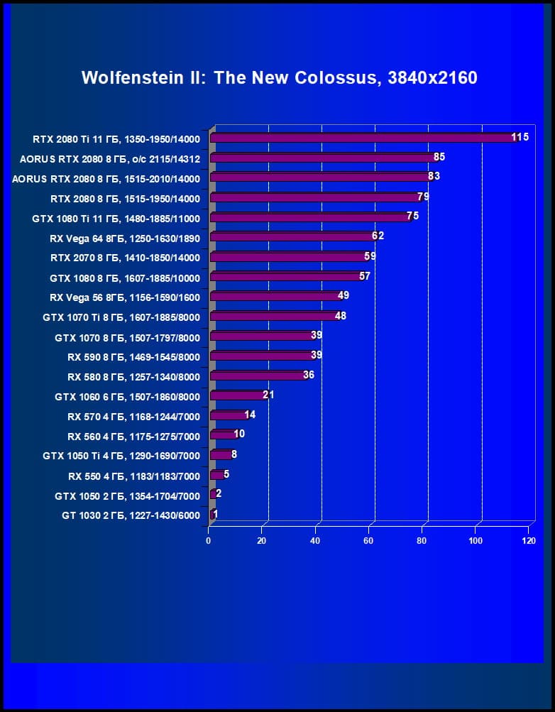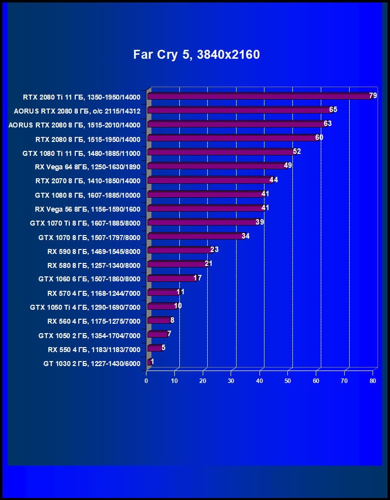 | 11 | Aorus RTX 2080 8 ГБ, o/c 2115/14312 | 256 | 1552 | 60 700 |