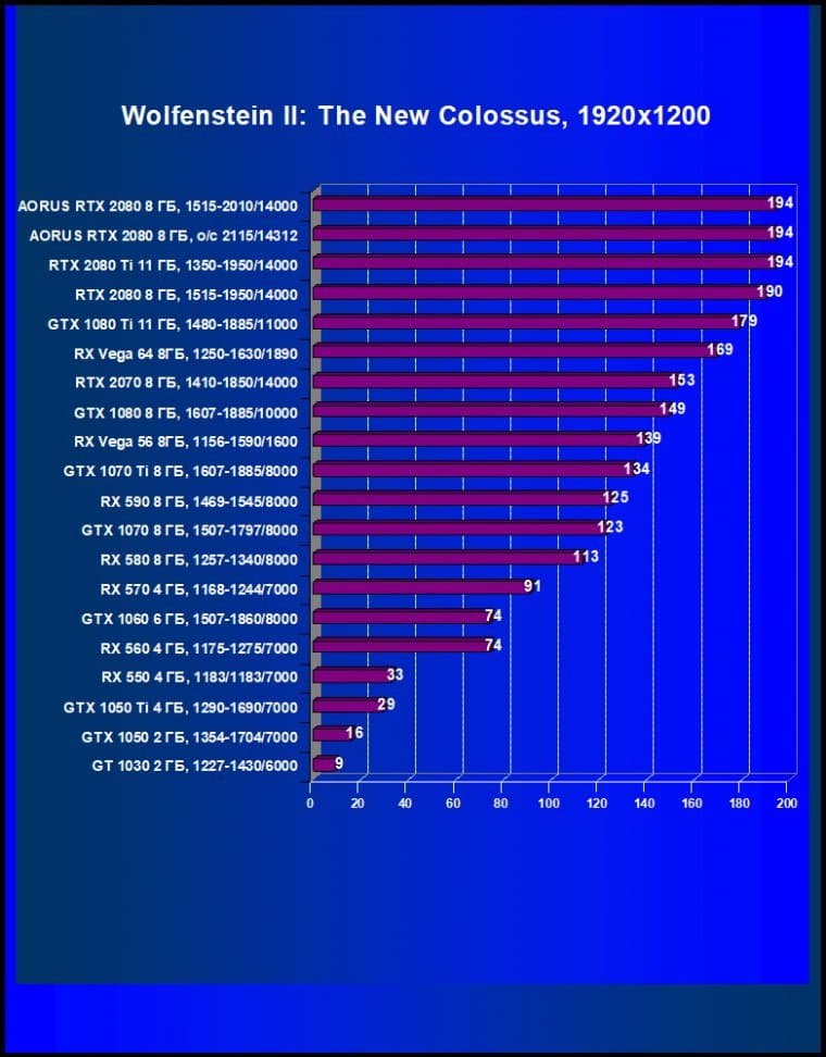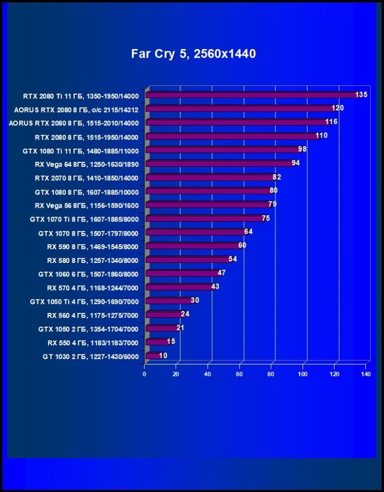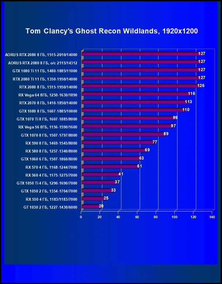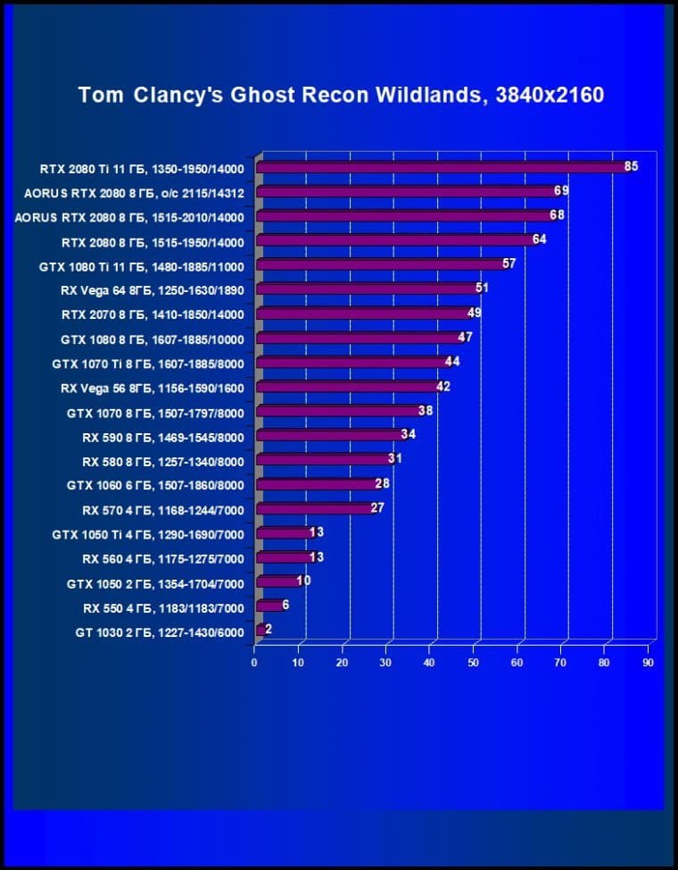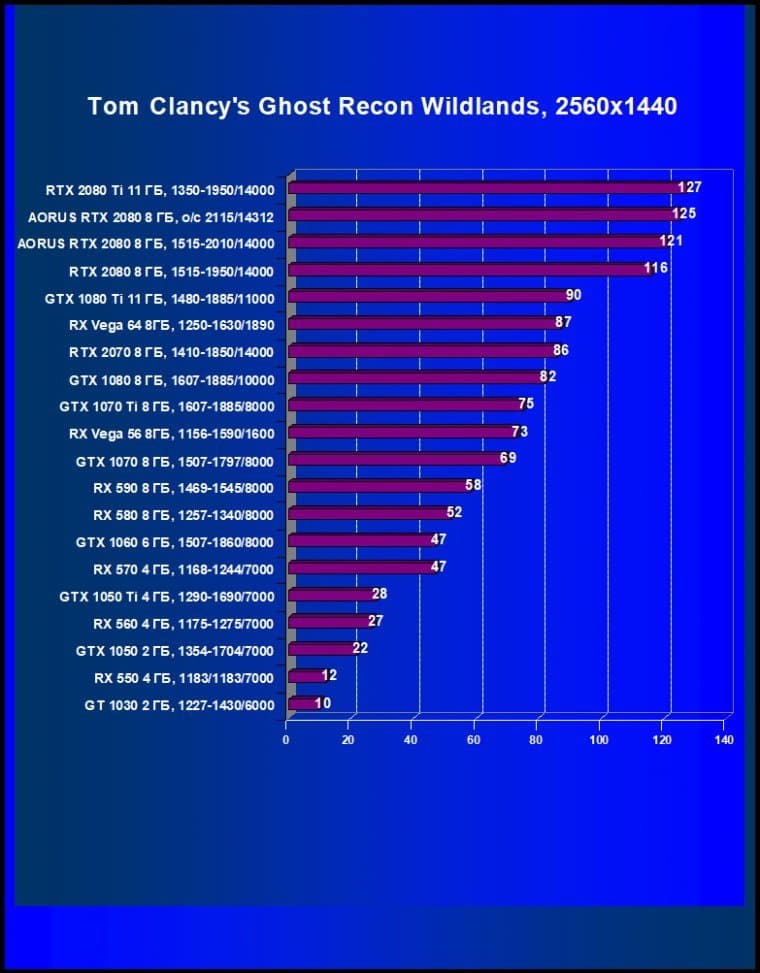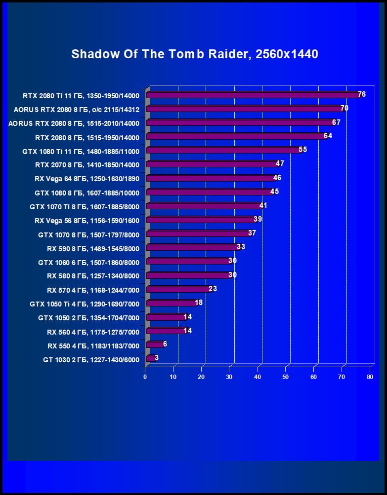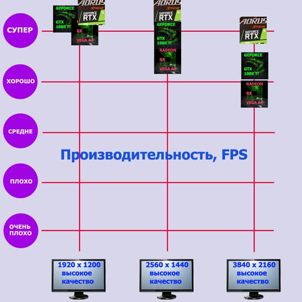 RTX 2080 и, в частности, эта карта Aorus прекрасно подойдут, если вы хотите играть при максимальном качестве графики во всех играх в разрешении до 2560×1440 включительно. При тех же максимальных настройках графики в разрешении 4К этот ускоритель также выдаст хорошую производительность в большинстве игр. Следом идет GTX 1080 Ti, а RX Vega 64 — на третьем месте.