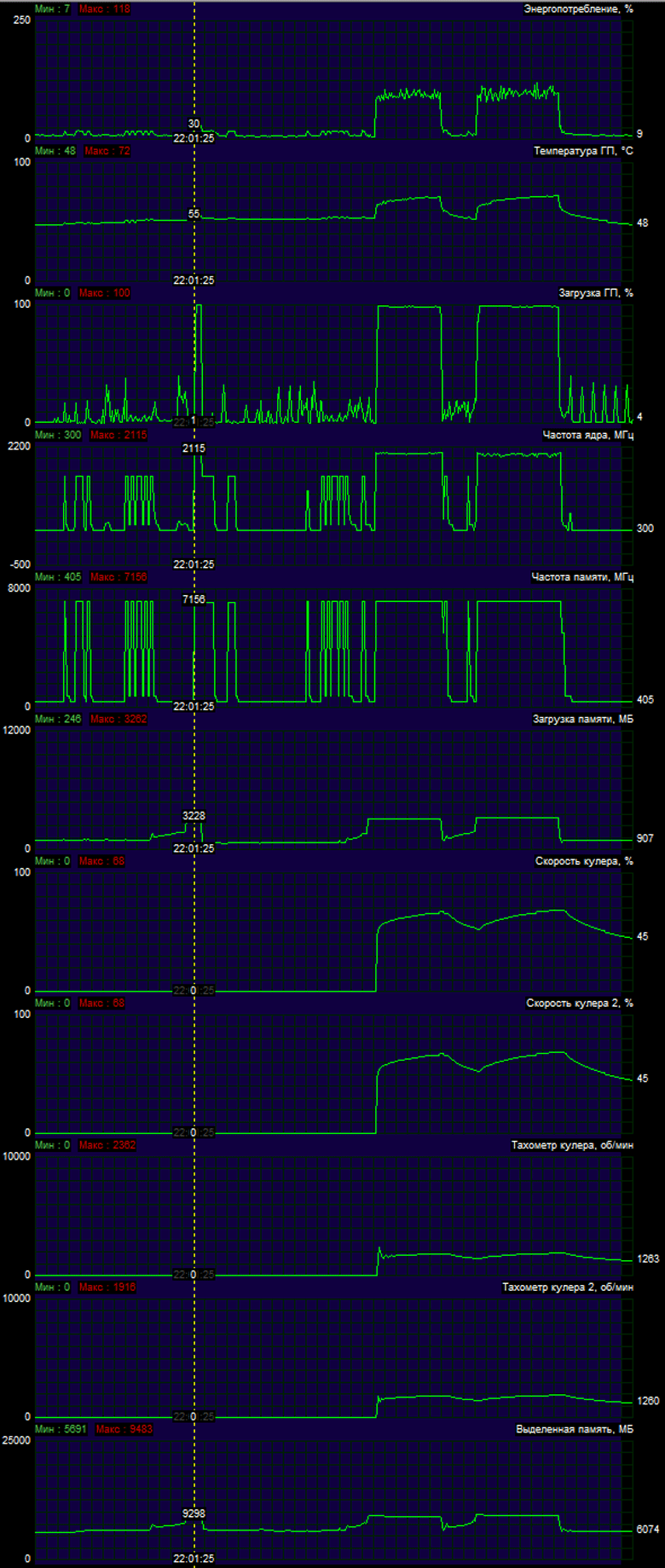 | 04 | RTX 2080 8 ГБ, 1515—1950/14000 | 1432 | 305 | 47 000 |