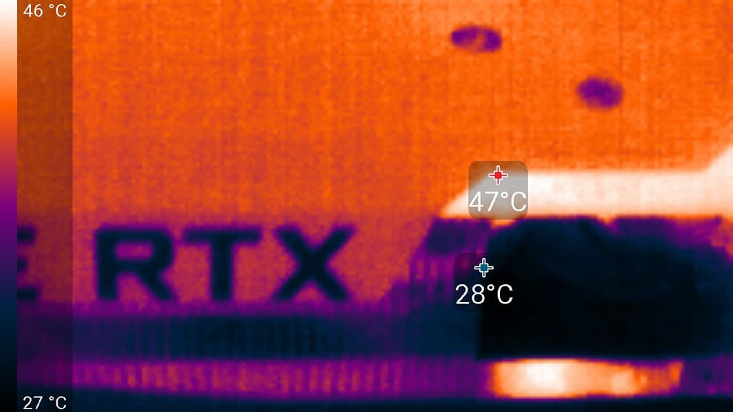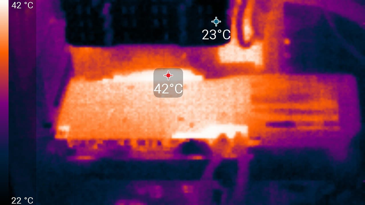 В режиме простоя в 2D температура была не выше 40 °C, вентиляторы не работали, уровень шума был равен фоновому — 18 дБА.