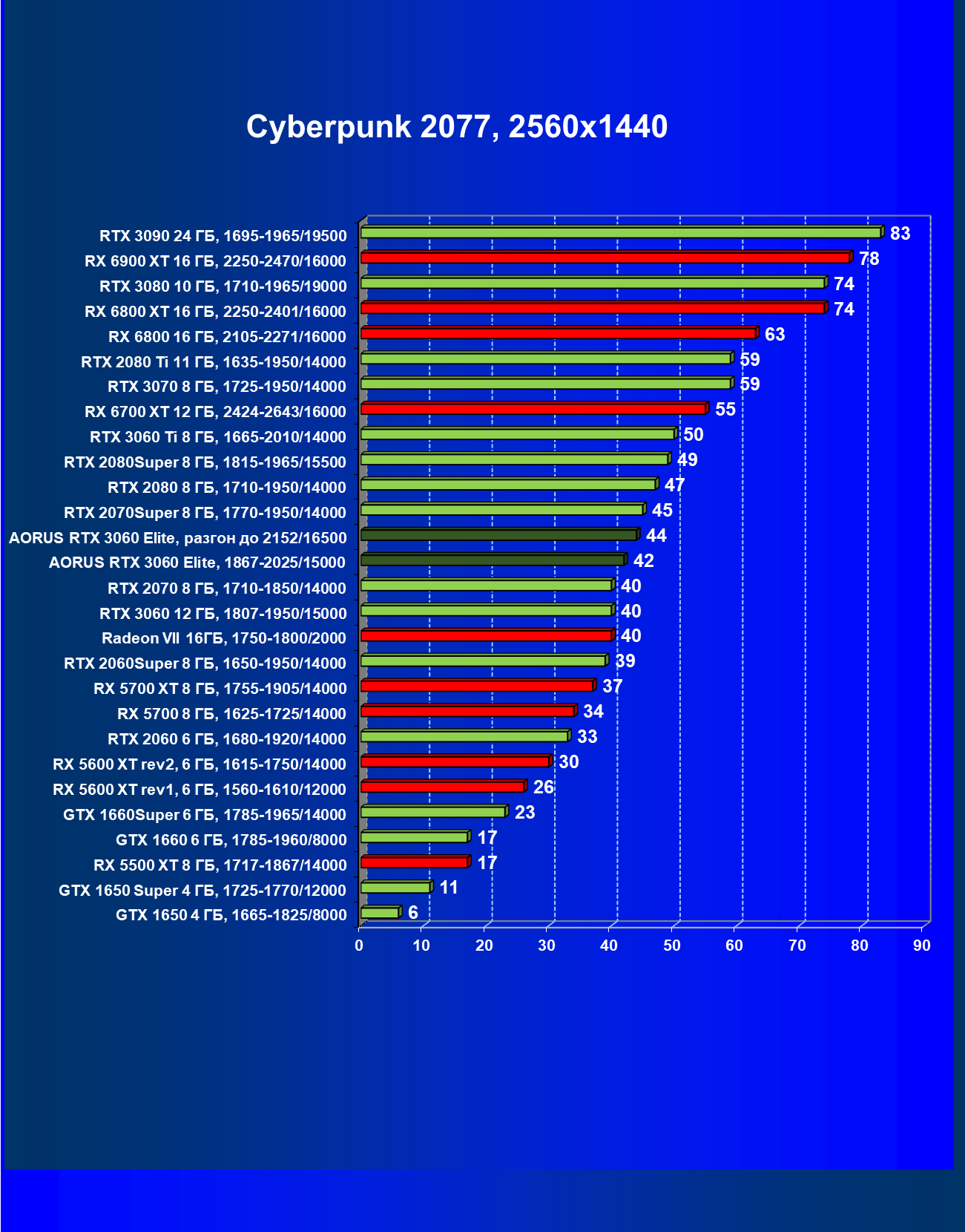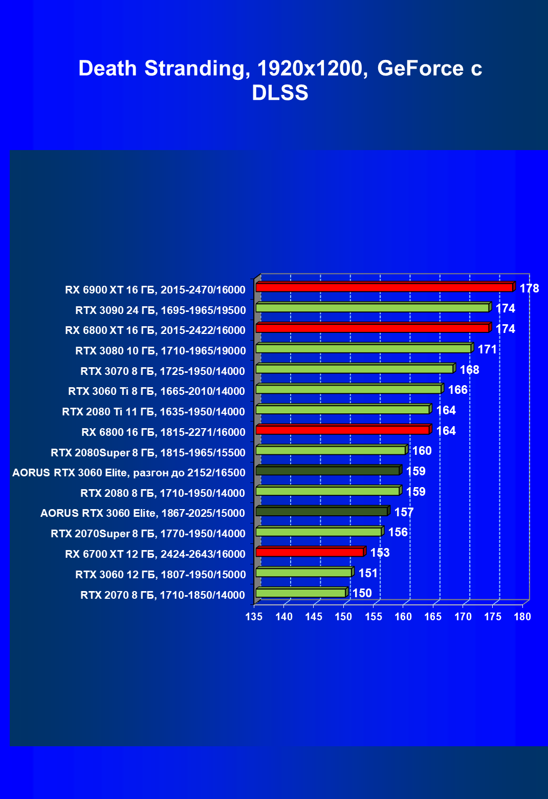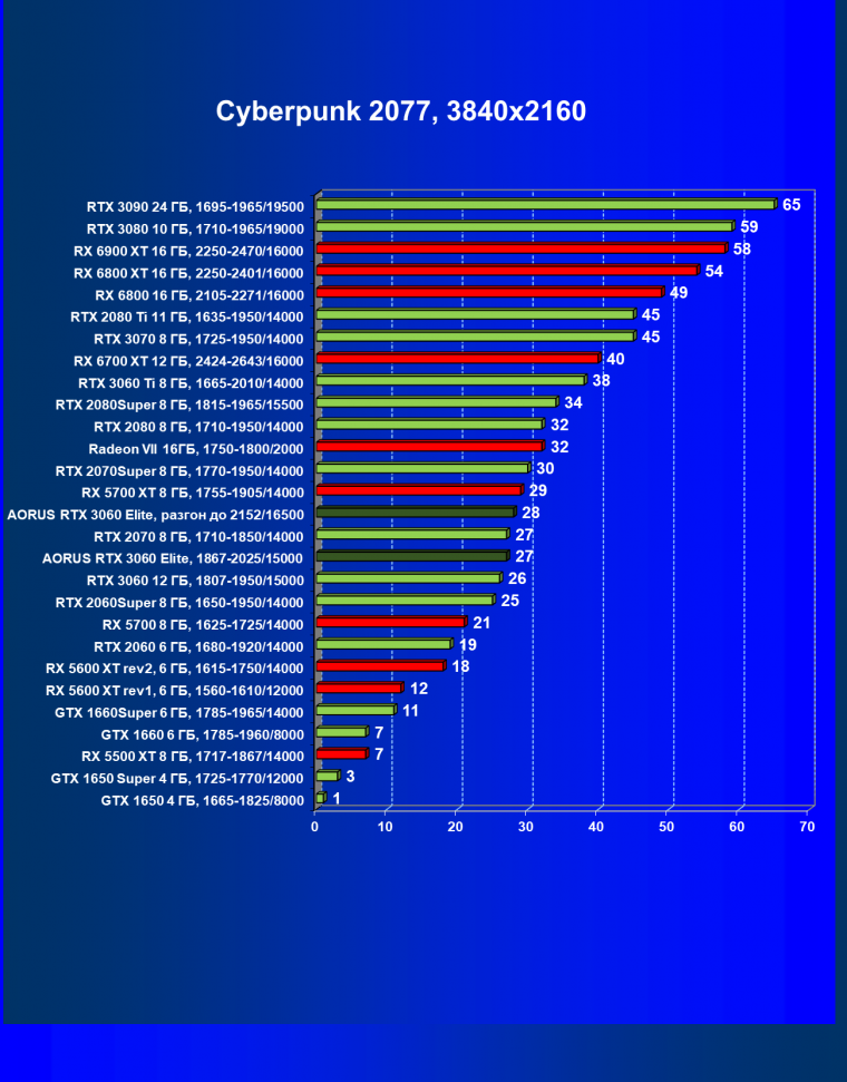 | 13 | Aorus RTX 3060 Elite, разгон до 2152/16500 | 470 | 53 | 88 000 |