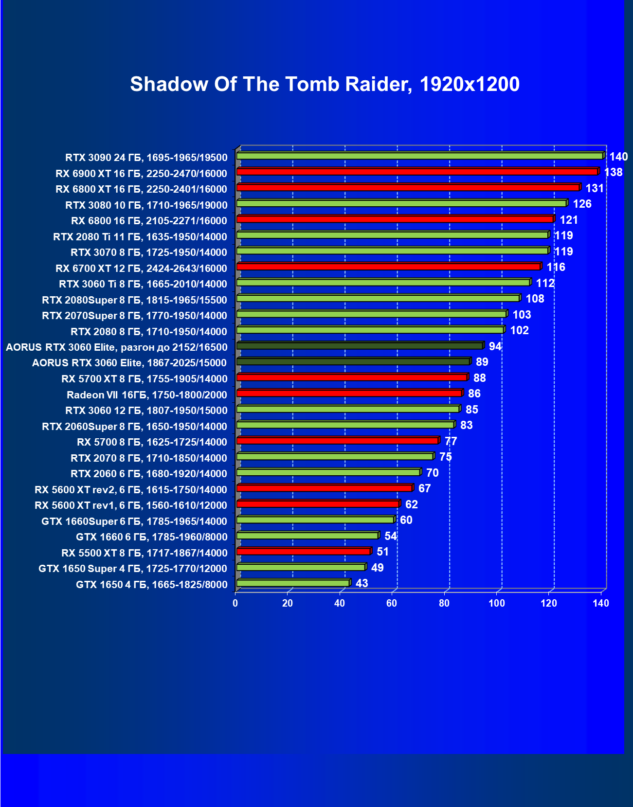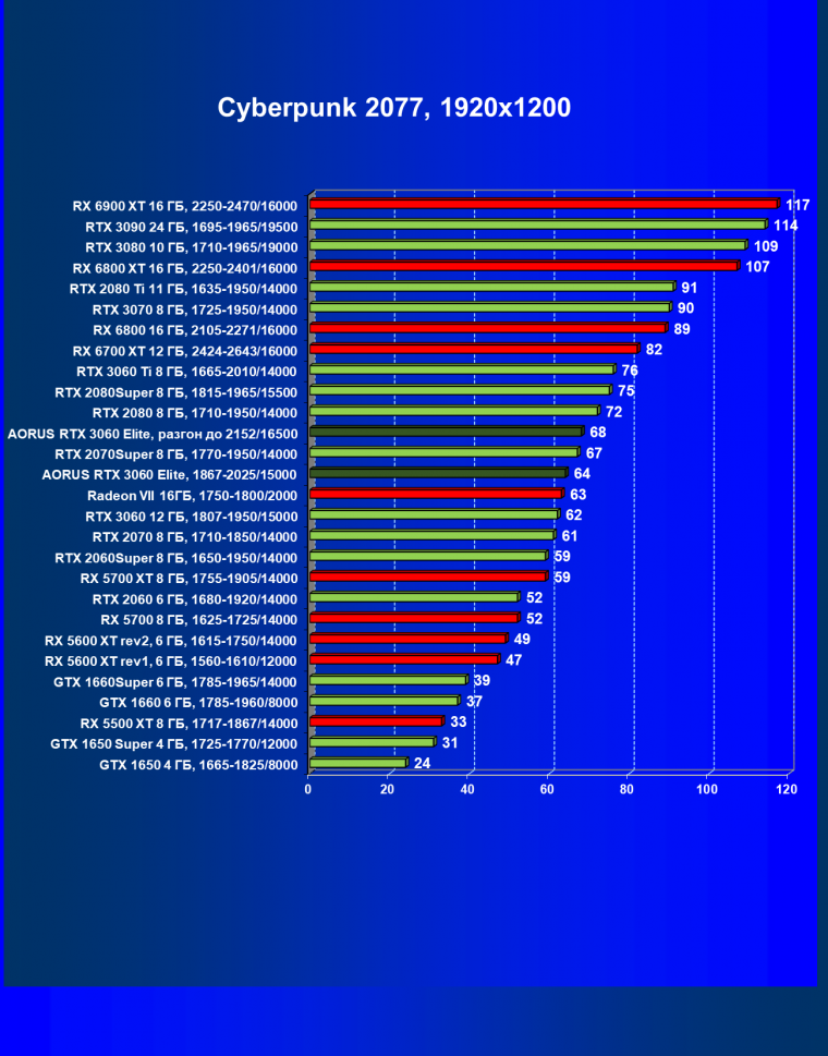 | 06 | Aorus RTX 3060 Elite, разгон до 2152/16500 | 13 | 110 | 88 000 |
