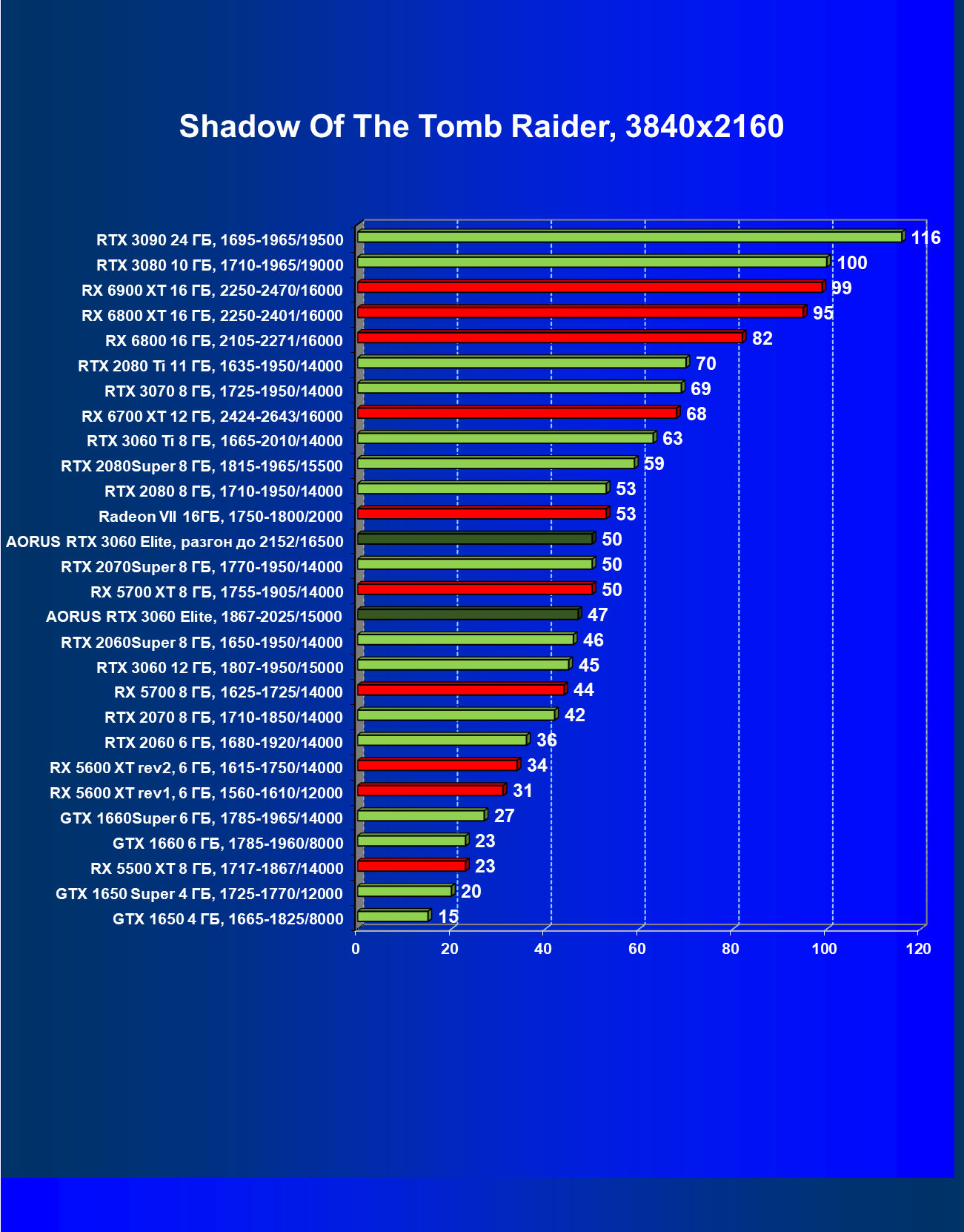 | 15 | RX 6800 16 ГБ, 1815—2271/16000 | 8 | 100 | 120 000 |