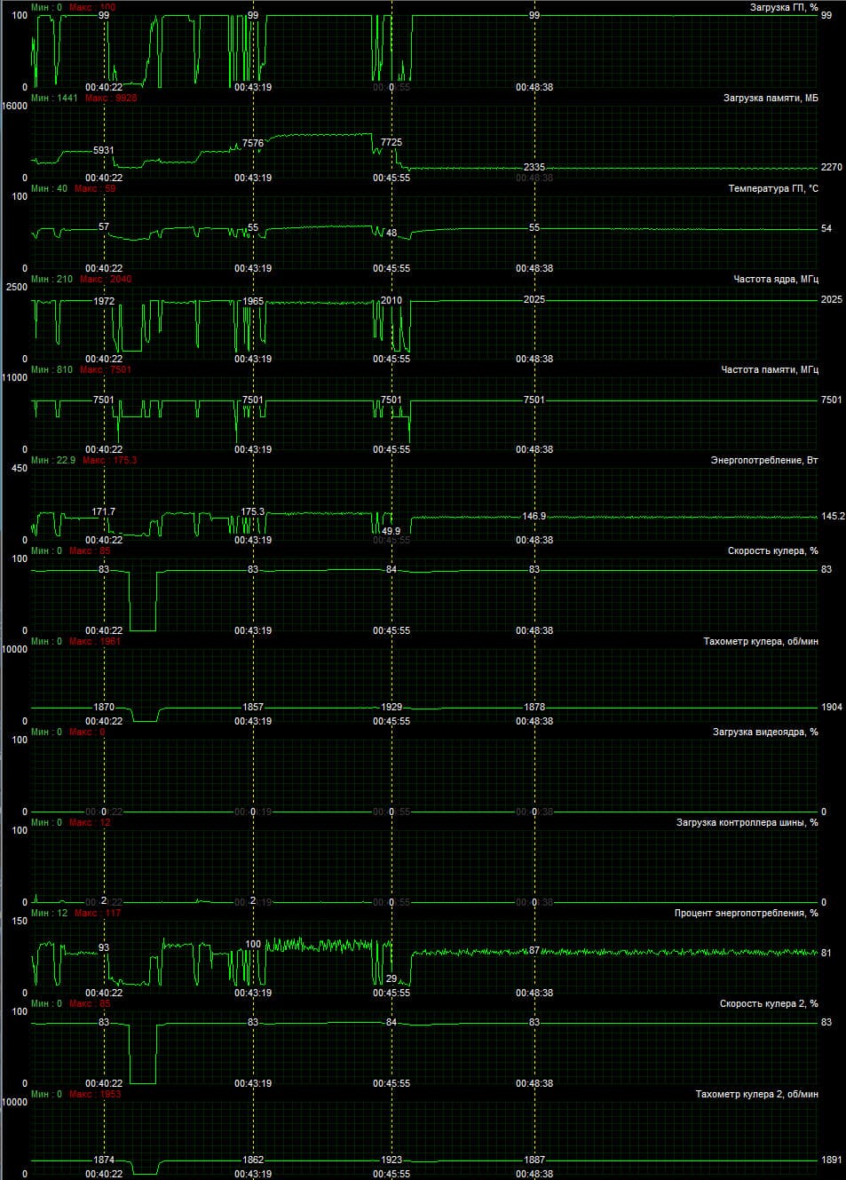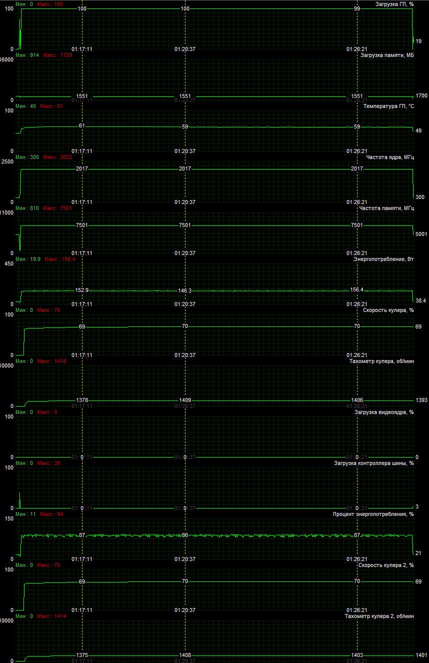 | 08 | RTX 2070 Super 8 ГБ, 1770—1950/14000 | 12 | 110 | 92 000 |