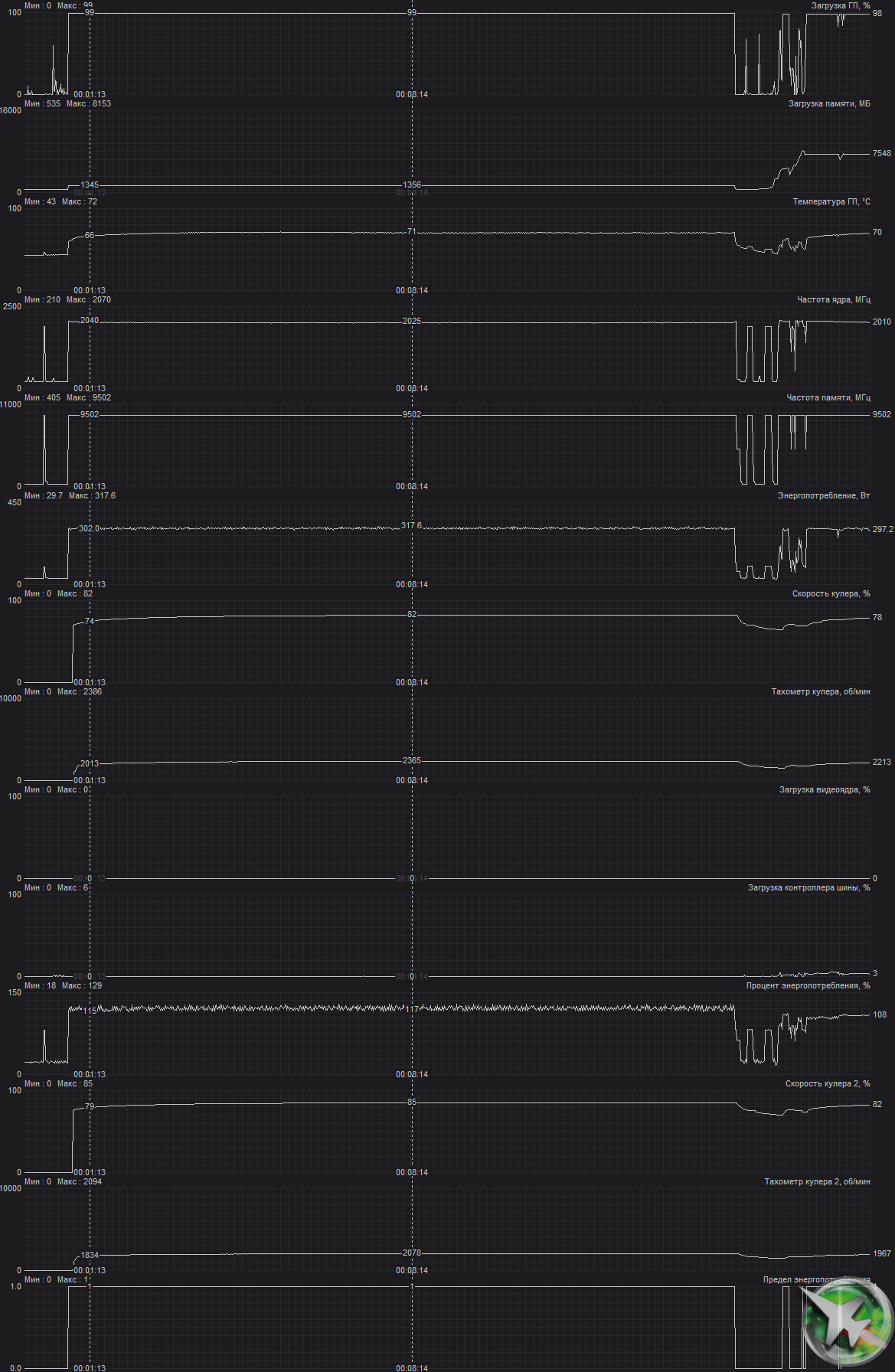| 07 | RTX 3070 8 ГБ, 1725—1950/14000 | 18 | 173 | 97 000 |