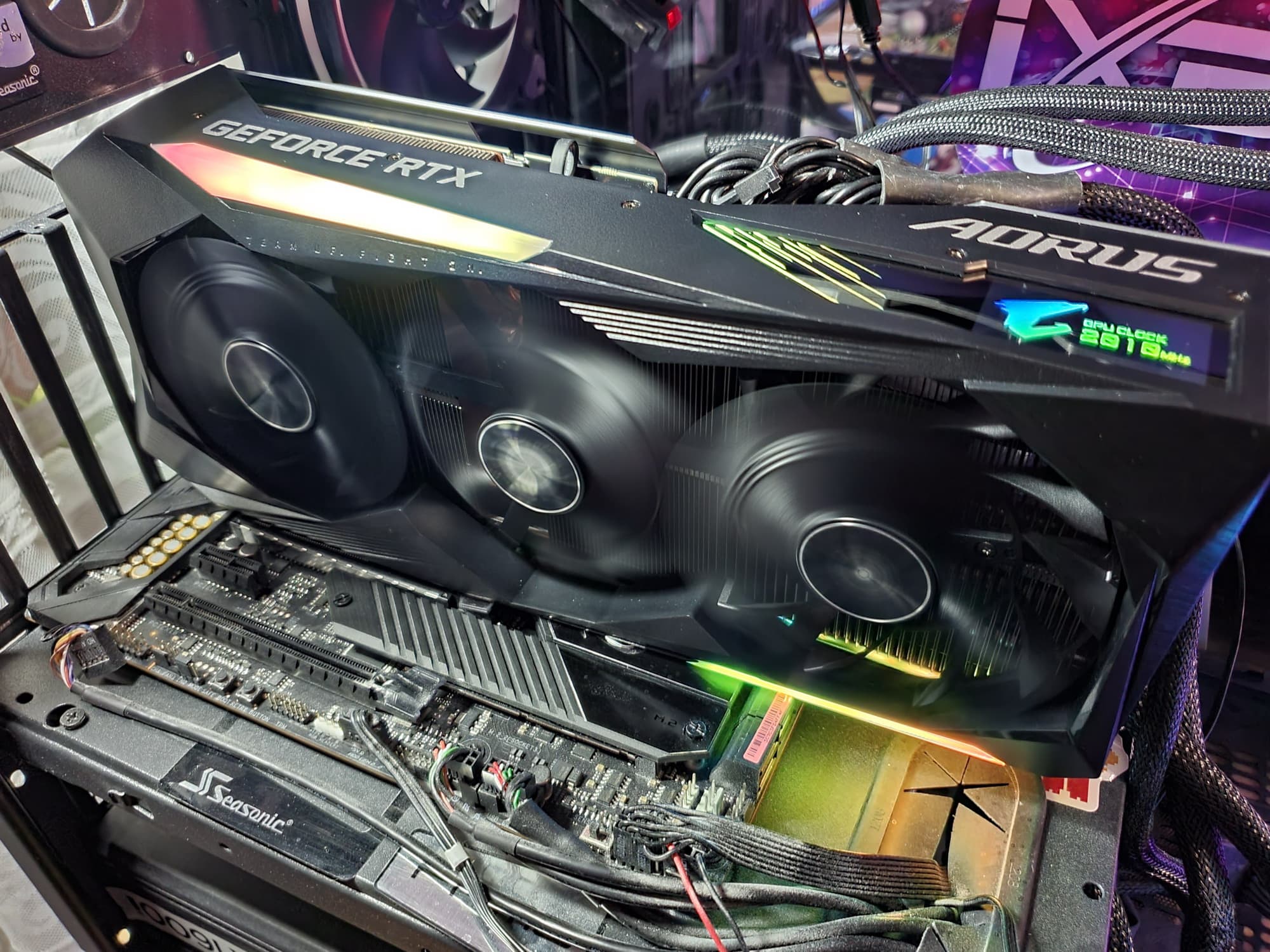 Управление работой карты обеспечивается силами фирменной утилиты Aorus Engine. Кстати, стоит упомянуть, что я попробовал ручной разгон и после экспериментов получил максимум по частотам 2145/20036 МГц и прирост производительности в среднем на 9% (в разрешении 4К — более +9% относительно референс-значений). При этом максимум энергопотребления составил уже 329 Вт.