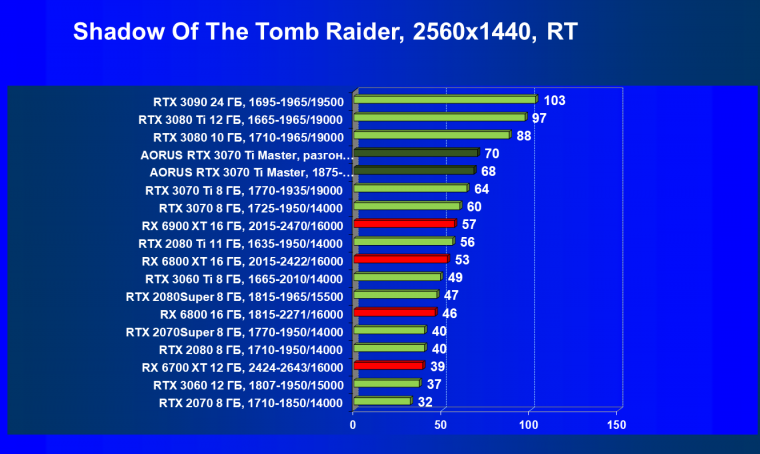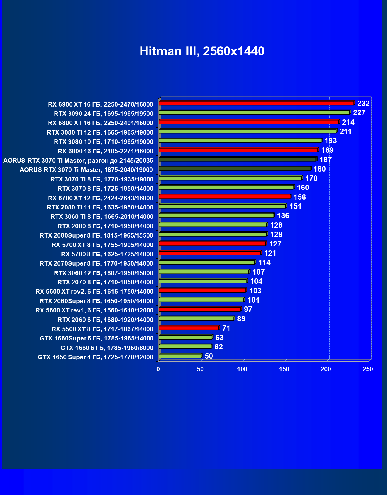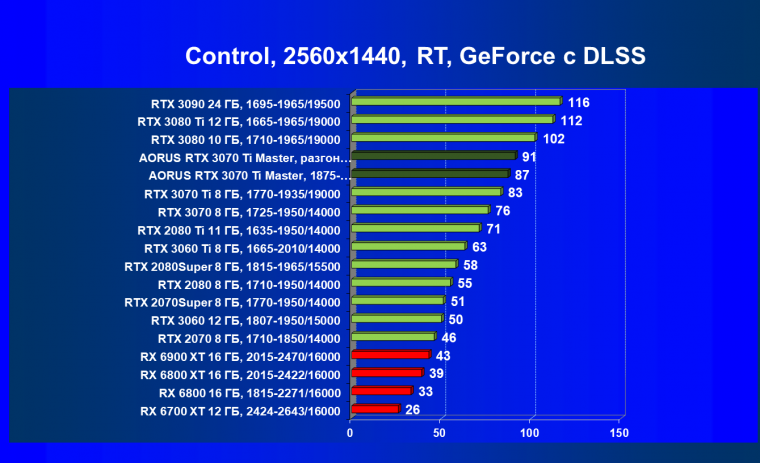 | 03 | Aorus RTX 3070 Ti Master, разгон до 2145/20036 | 47 | 459 | 97 000 |