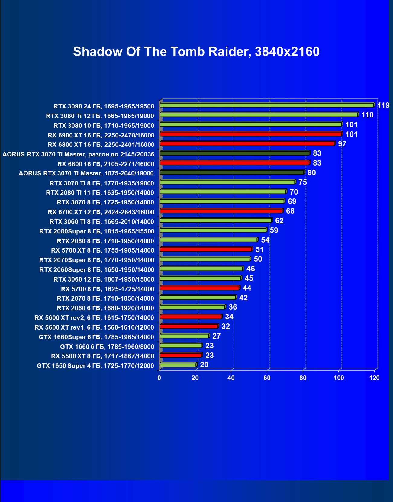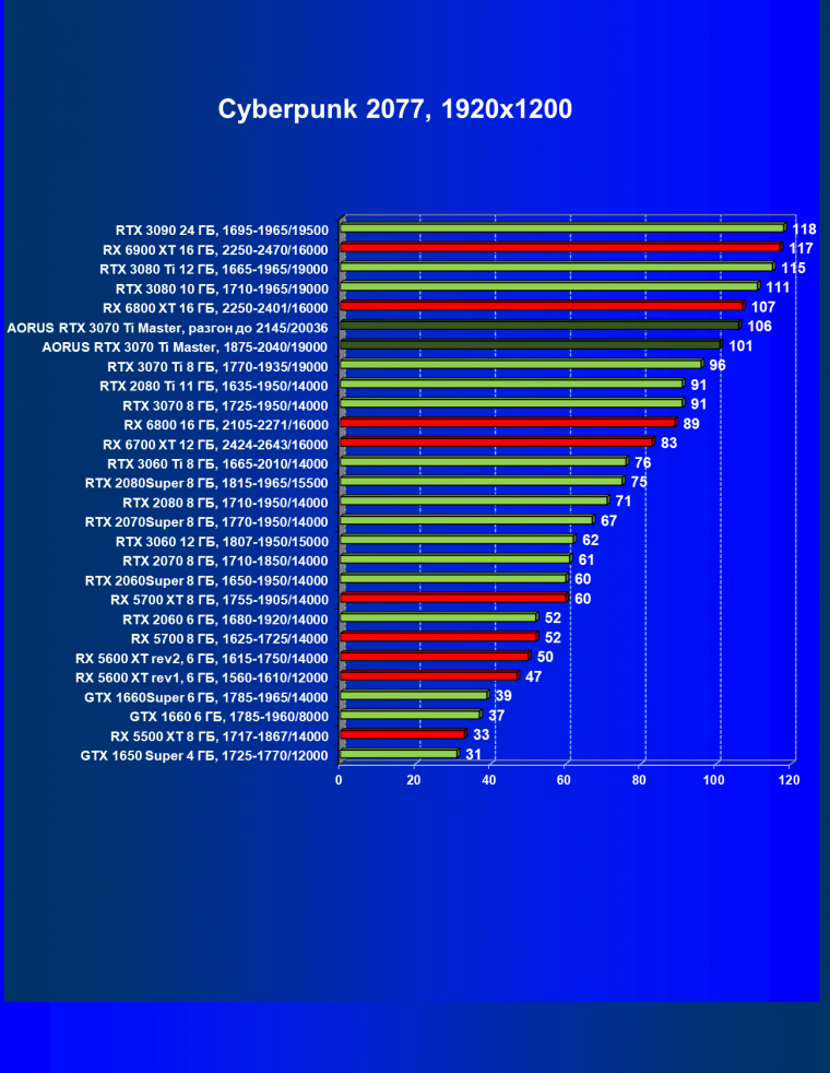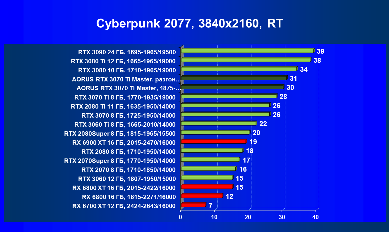 | 08 | Aorus RTX 3070 Ti Master, 1875—2040/19000 | 470 | 48 | 97 000 |