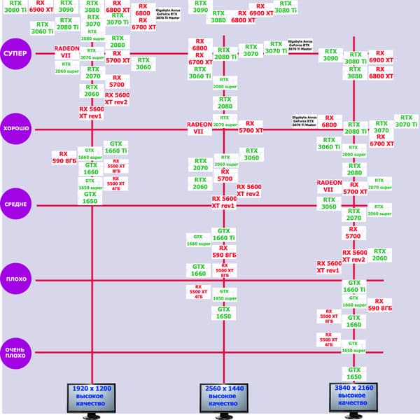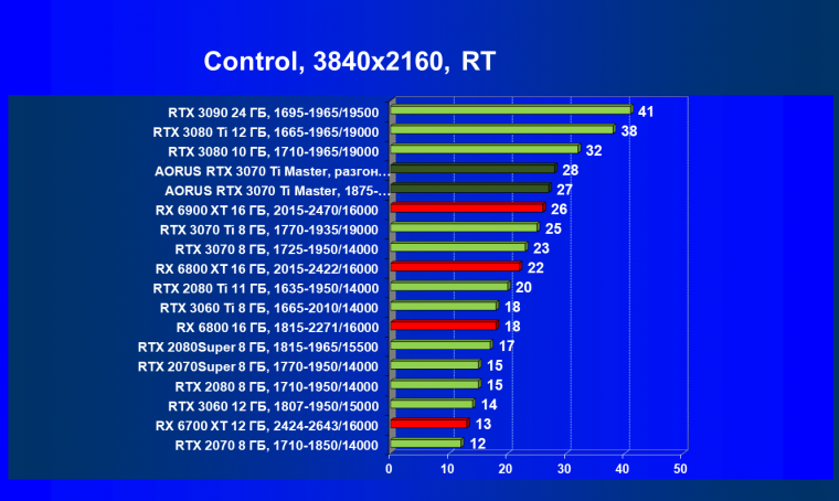 Наши тесты показали, что GeForce RTX 3070 Ti отлично подходит в «классических» играх без использования трассировки лучей в разрешении 4К при условии максимального качества графики, то же самое справедливо и для игр с использованием трассировки лучей при задействовании умного антиалиасинга DLSS, а остальные игры с RT (но без DLSS) будут играбельны в 2.5K при максимальном качестве графики. Ближайший конкурент — Radeon RX 6800. Рассматриваемая сегодня карта Gigabyte несколько быстрее, чем референс-аналог.