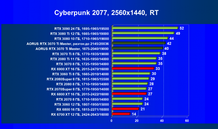 | 06 | Aorus RTX 3070 Ti Master, разгон до 2145/20036 | 490 | 51 | 97 000 |