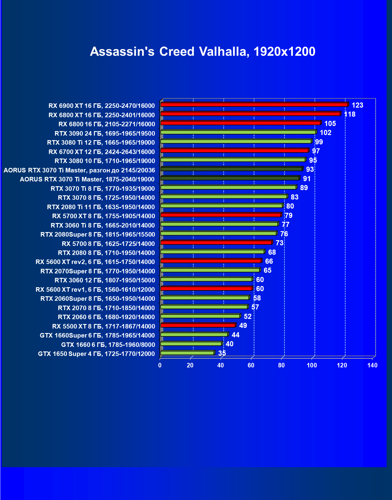 | 02 | Aorus RTX 3070 Ti Master, 1875—2040/19000 | 21 | 199 | 97 000 |