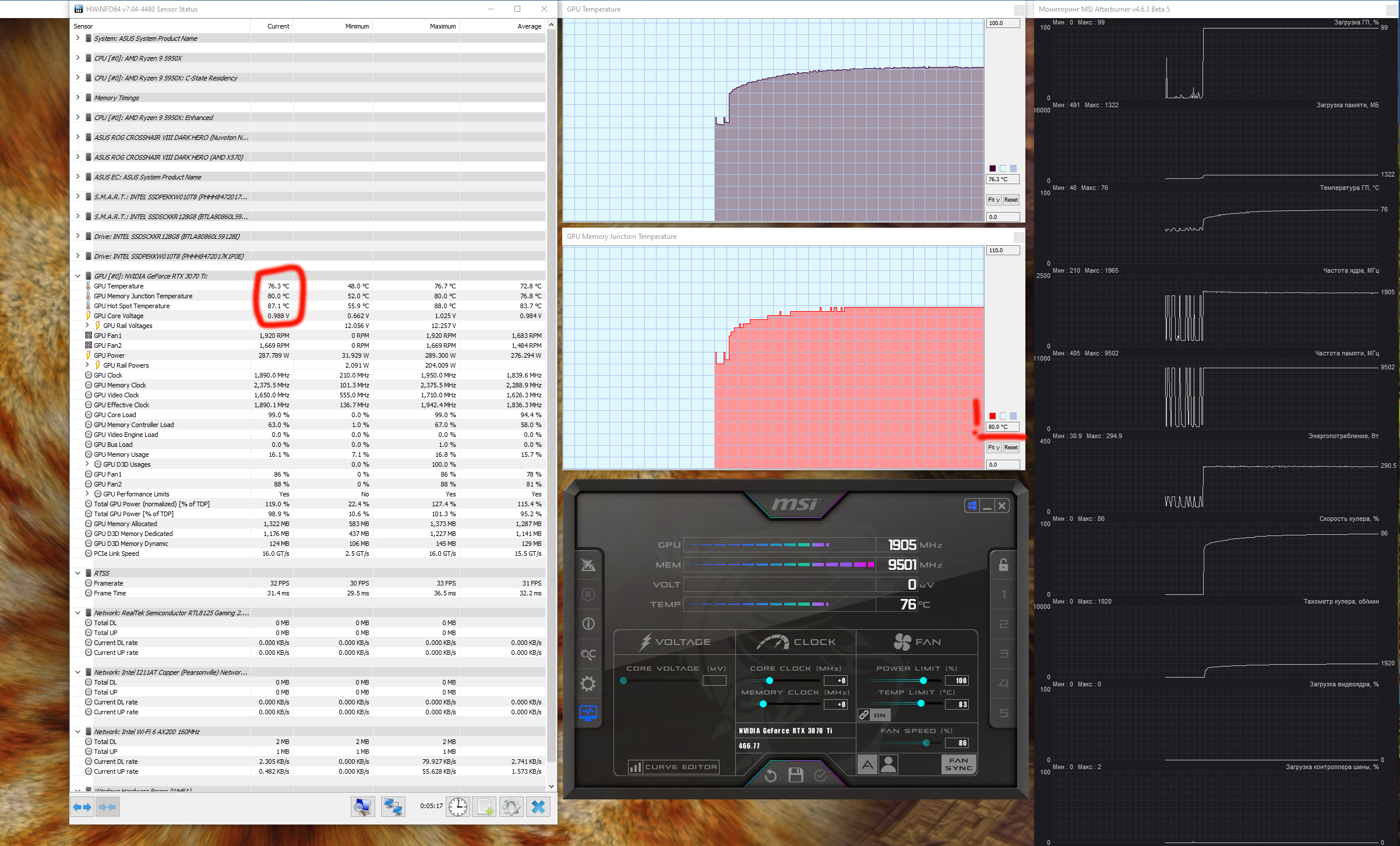 | 05 | Aorus RTX 3070 Ti Master, 1875—2040/19000 | 46 | 442 | 97 000 |