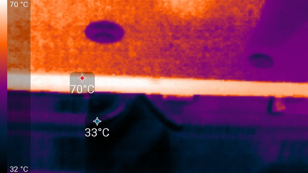В режиме Silent Mode температура достигала 71 °C. Вентиляторы при этом раскручивались до 1880 оборотов в минуту, шум вырастал до 35,5 дБА: это уже не так громко, но все равно отчетливо слышно.