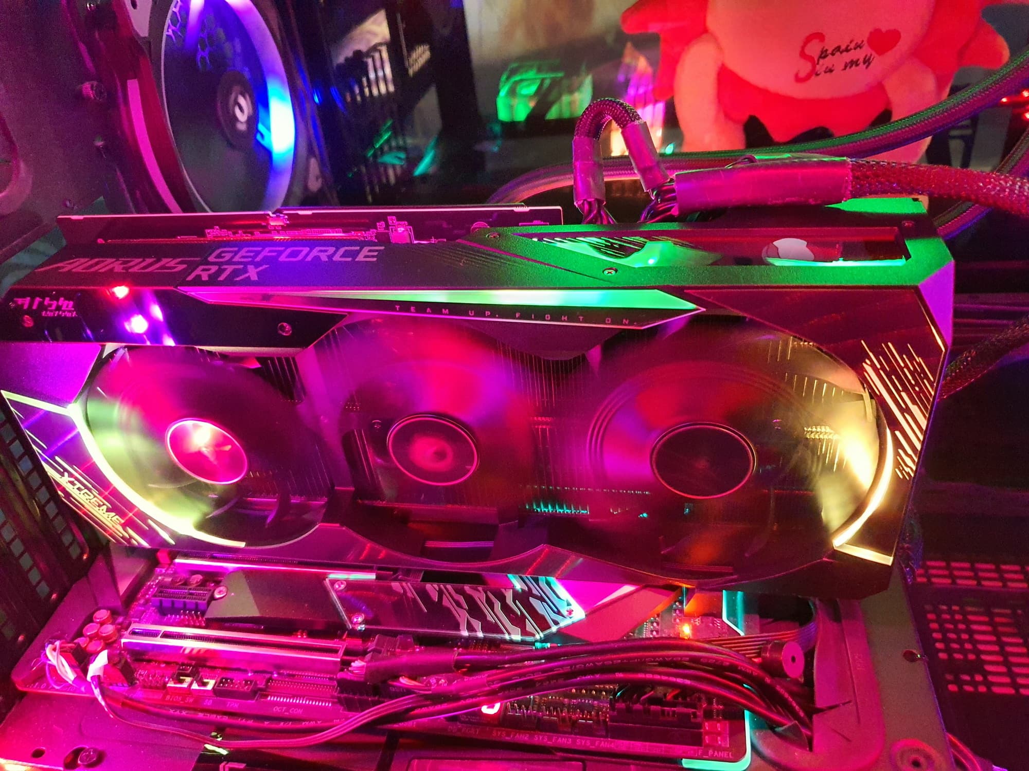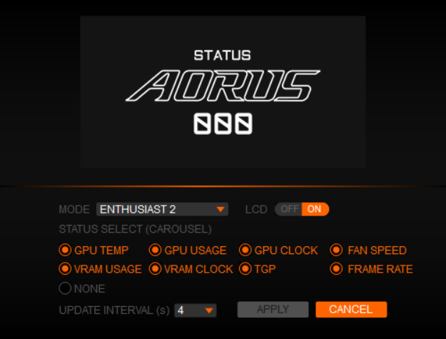 Также можно выбрать любой текст или загрузить свое изображение или GIF-анимацию. Или отдать этот экран Chibi, символу Aorus.