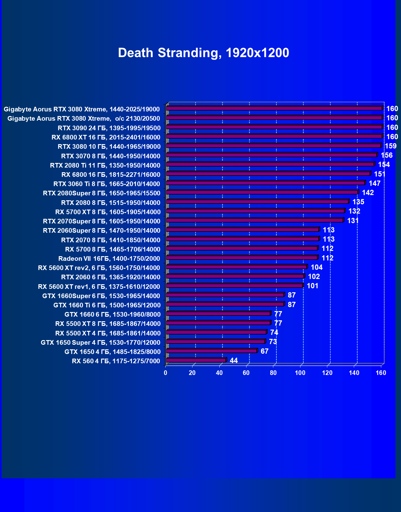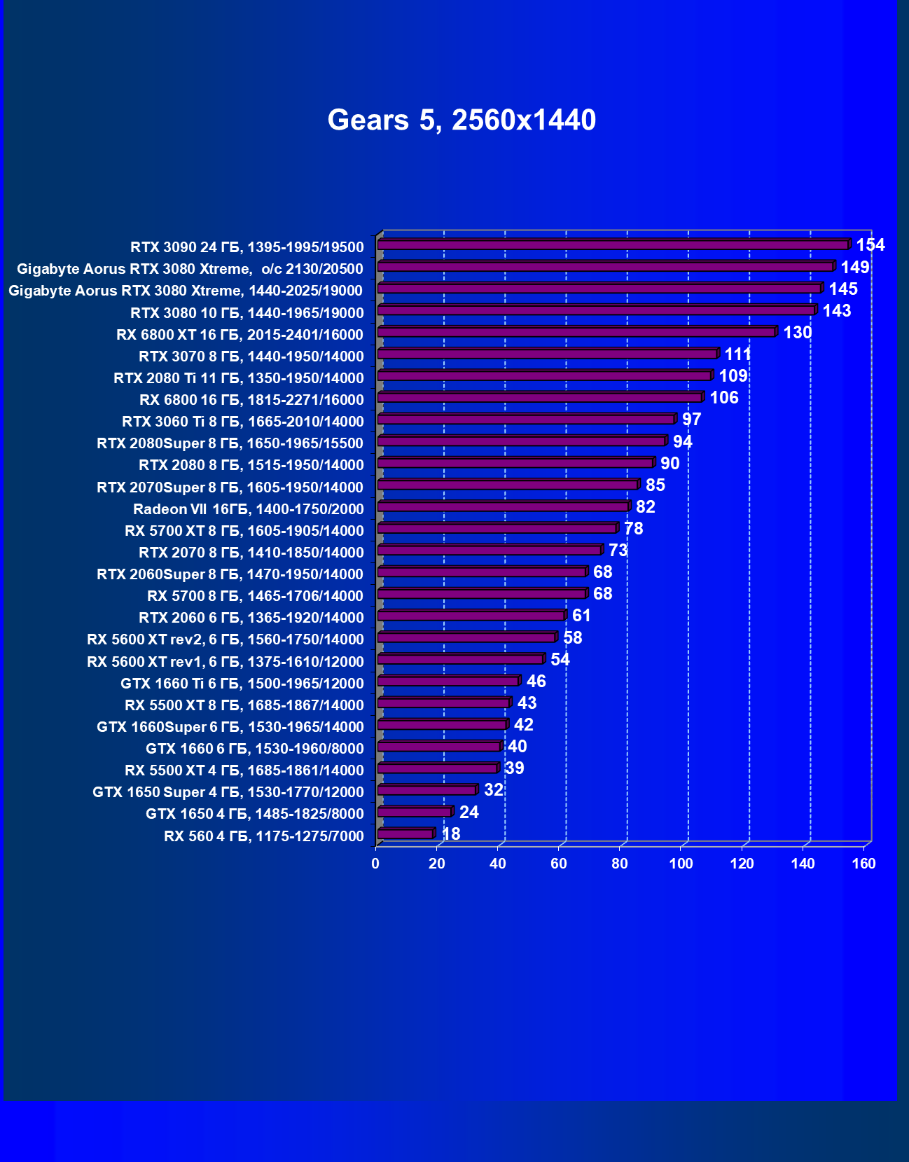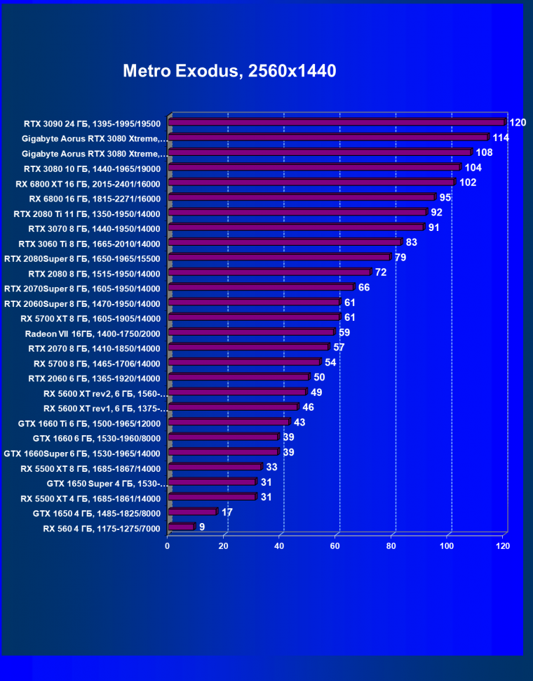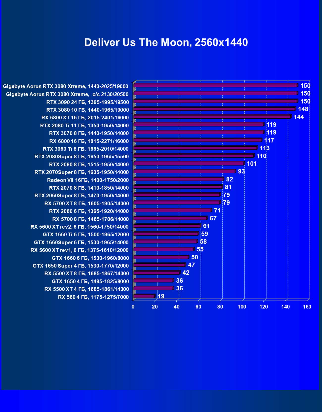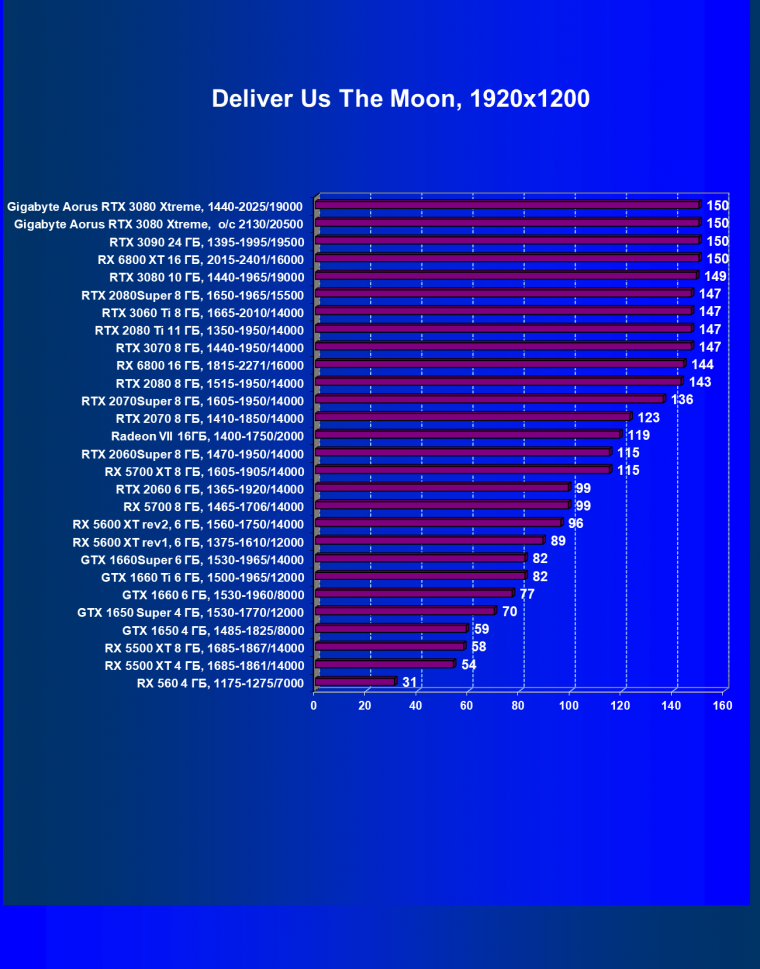 | 13 | Gigabyte Aorus RTX 3080 Xtreme, 1440—2025/19000 | 151 | 1807 | 120 000 |