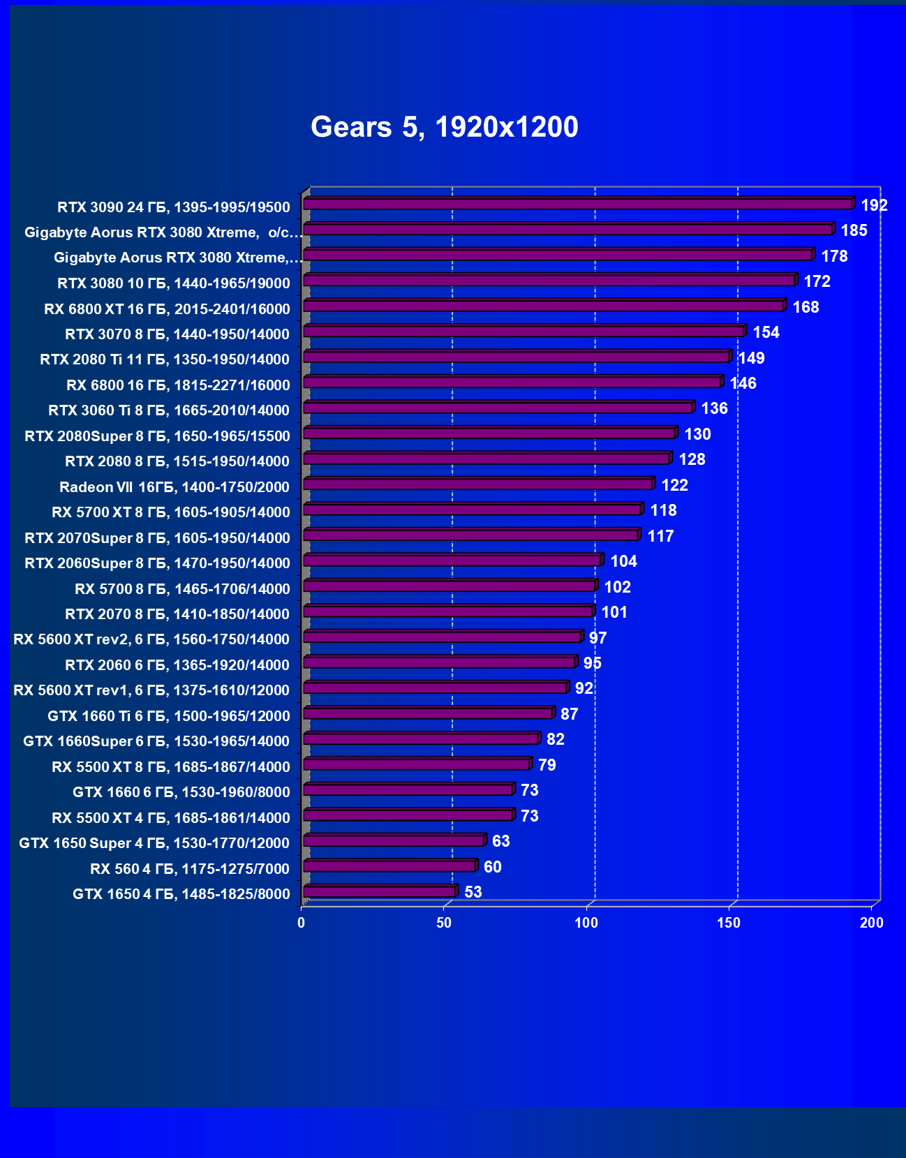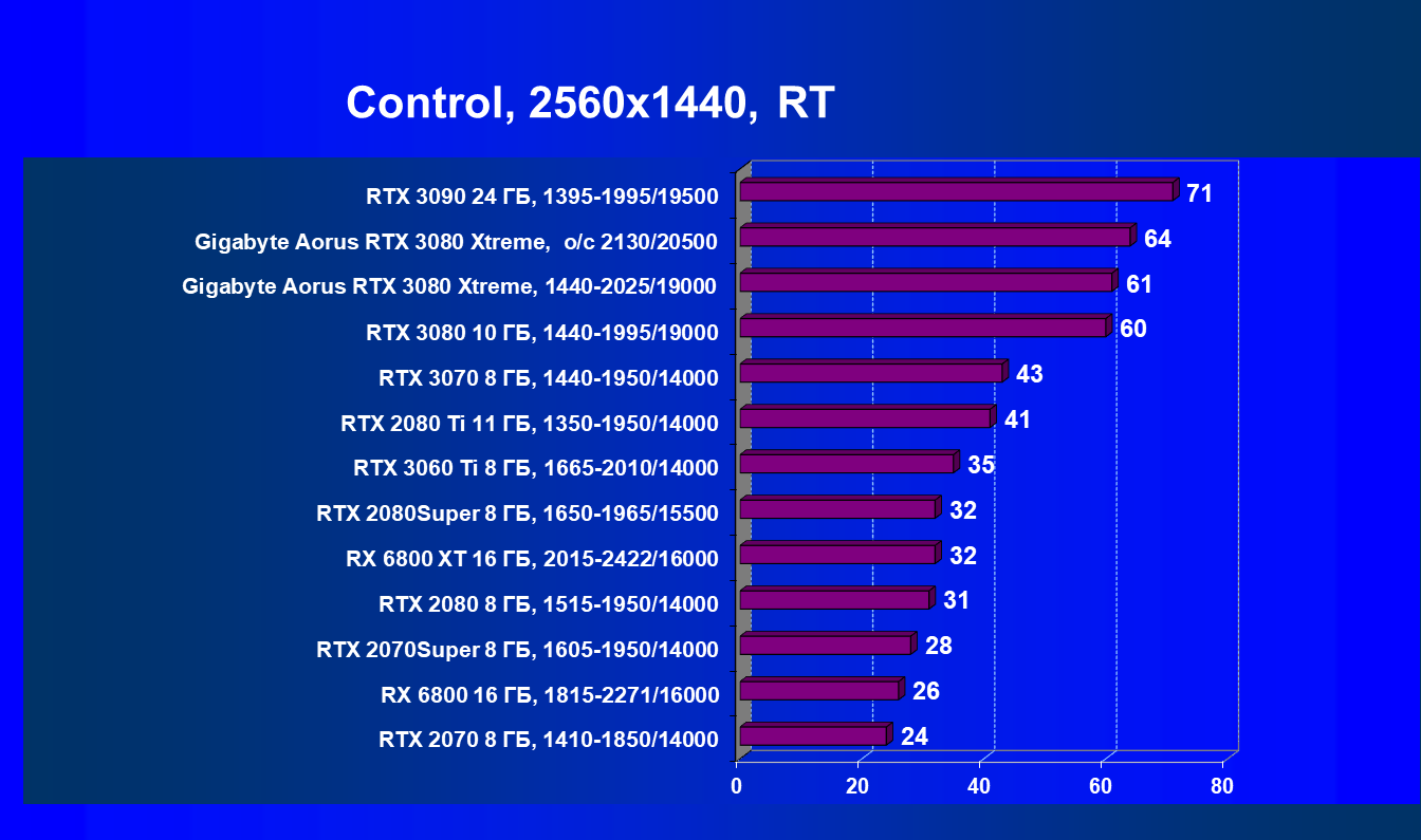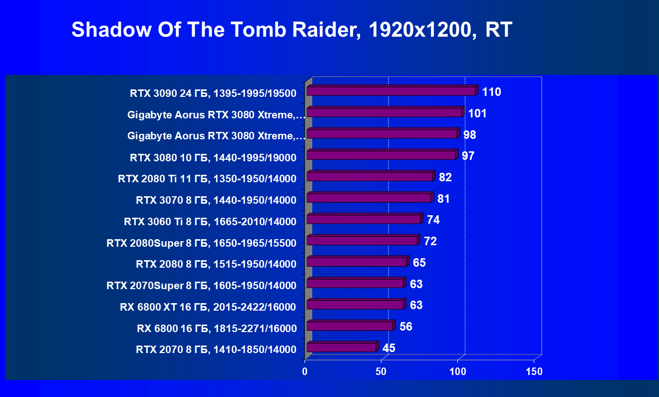 | 08 | Gigabyte Aorus RTX 3080 Xtreme, разгон до 2130/20500 | 21 | 249 | 120 000 |