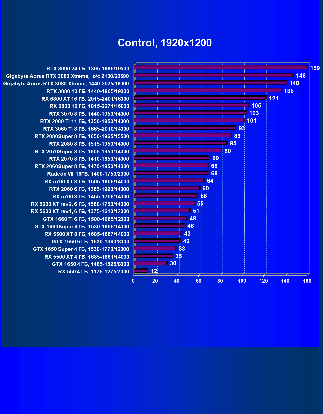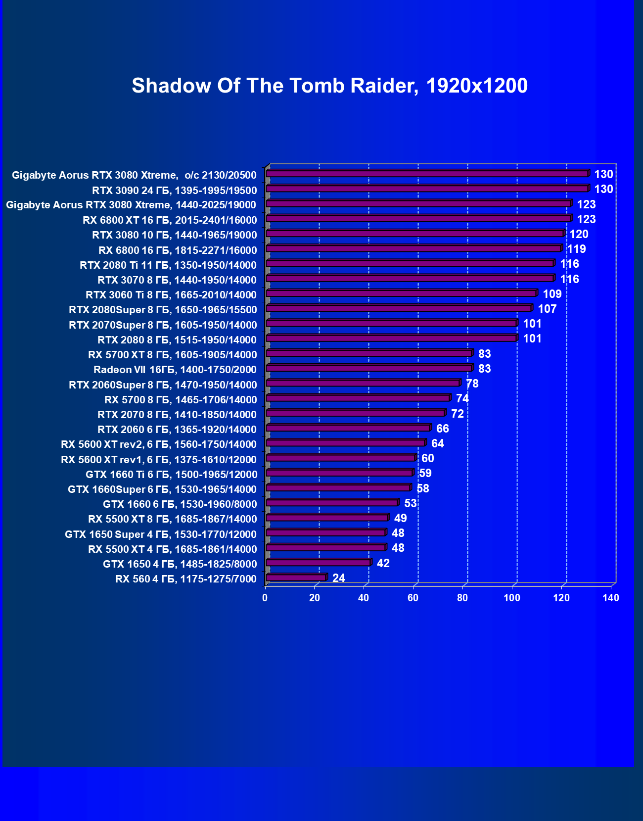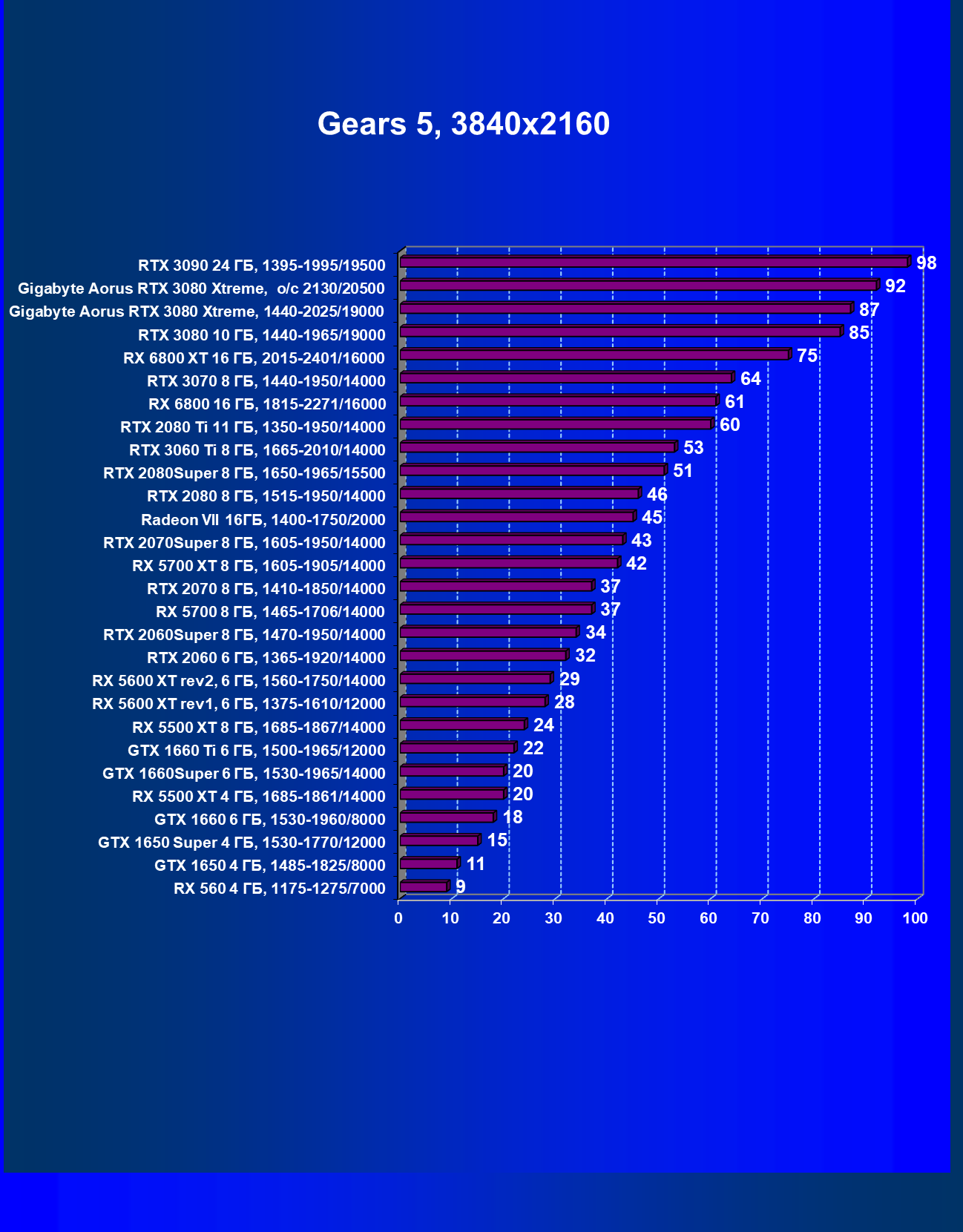 | 08 | Gigabyte Aorus RTX 3080 Xtreme, разгон до 2130/20500 | 21 | 249 | 120 000 |