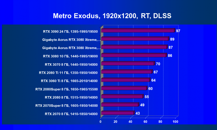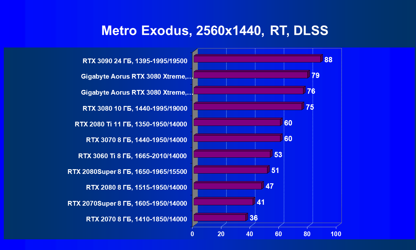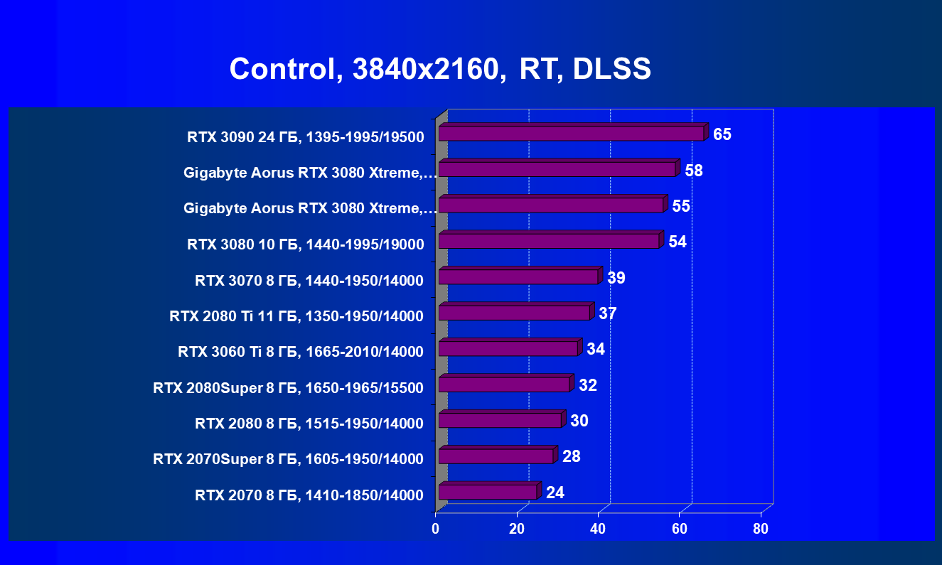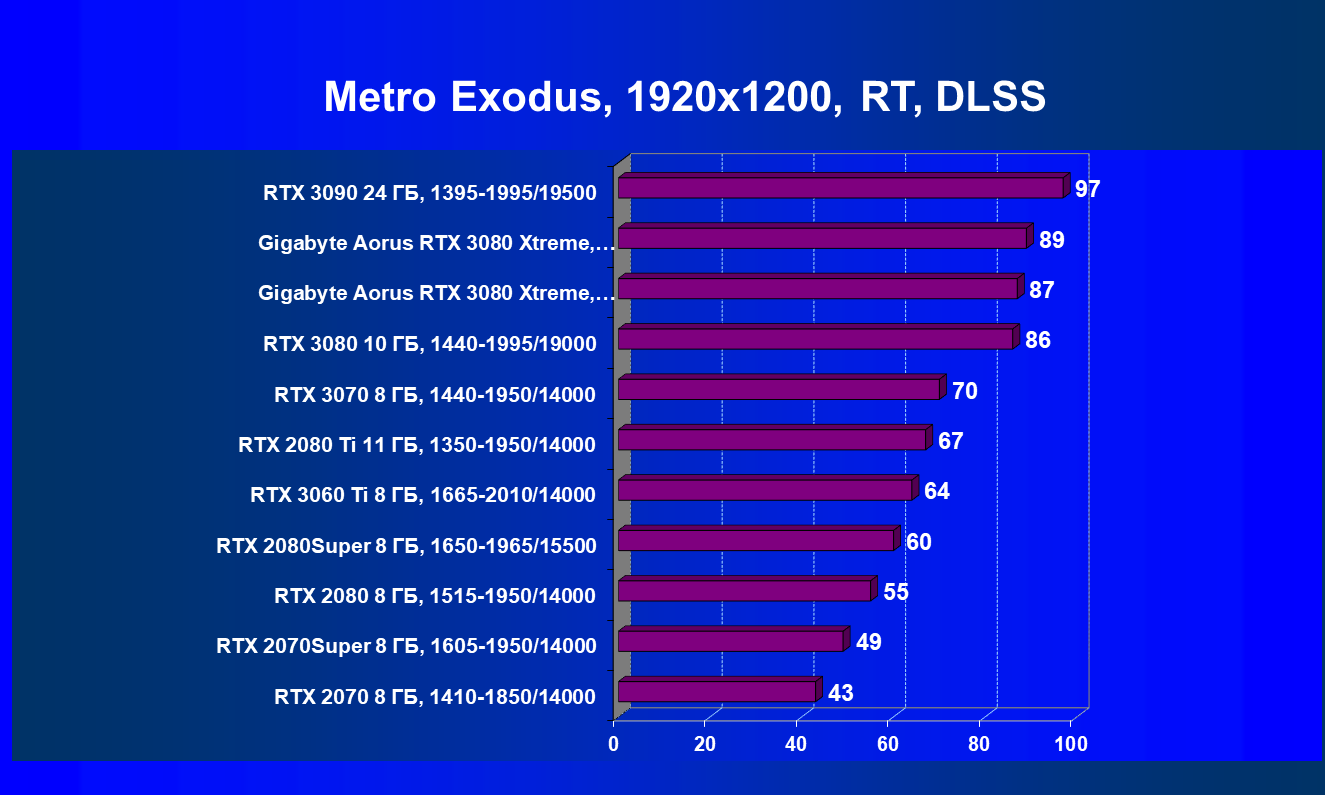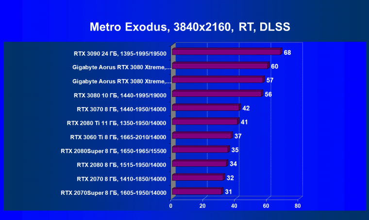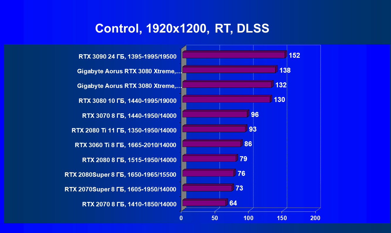 В заключение хочется сказать: мы надеемся, что выйдет еще немало игр с поддержкой RT+DLSS, в которых GeForce RTX 3080 проявит себя в качестве лидера игрового 3D (GeForce RTX 3090 из-за его цены мы выносим за скобки), ведь в целом этот ускоритель предназначен для тех энтузиастов ПК-игр, которые планируют играть при использовании максимальных настроек качества и с RT (с или без DLSS) в разрешениях до 4К включительно.