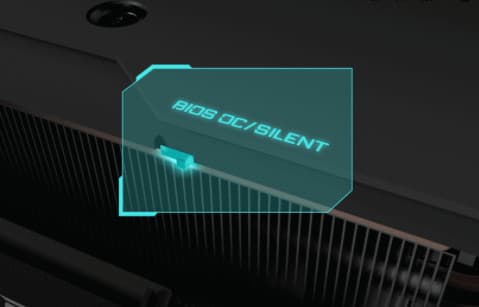 Прошивки отличаются частотами работы и настройками вентиляторов: режим ОС включен по умолчанию, Boost-частота в нем немного поднята, а вентиляторы настроены на чуть более высокие обороты. Режим Silent подразумевает референс-частоты и сниженные частоты вращения вентиляторов. В обоих режимах вентиляторы останавливаются в режиме простоя.