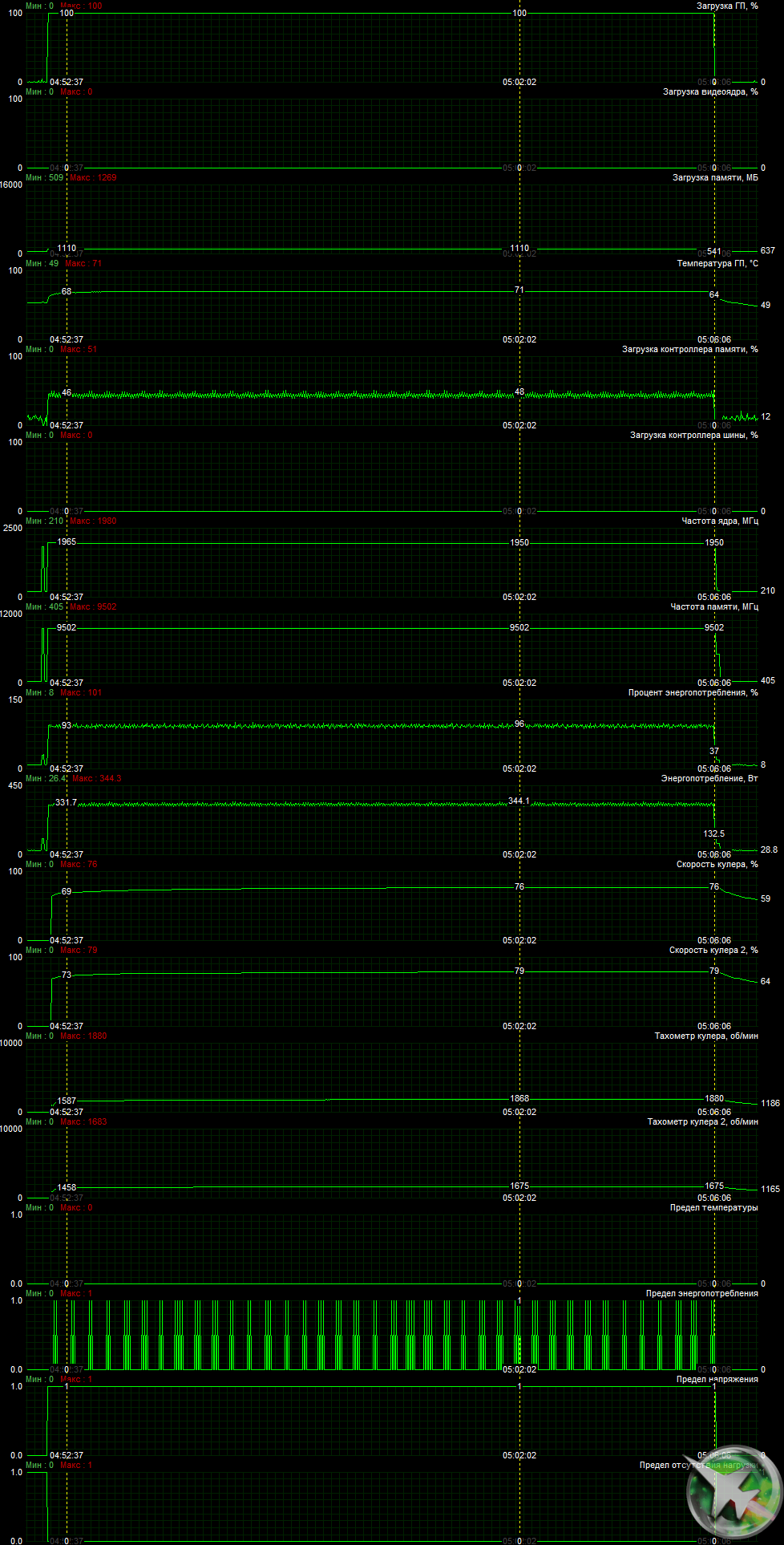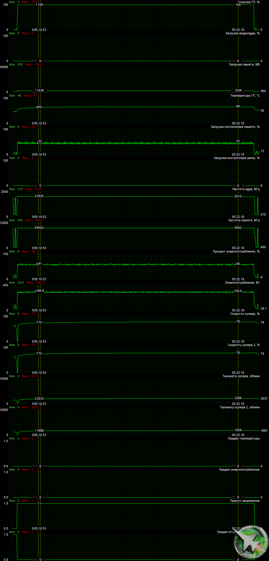 | 05 | RTX 3080 10 ГБ, 1440—1995/19000 | 27 | 230 | 85 000 |