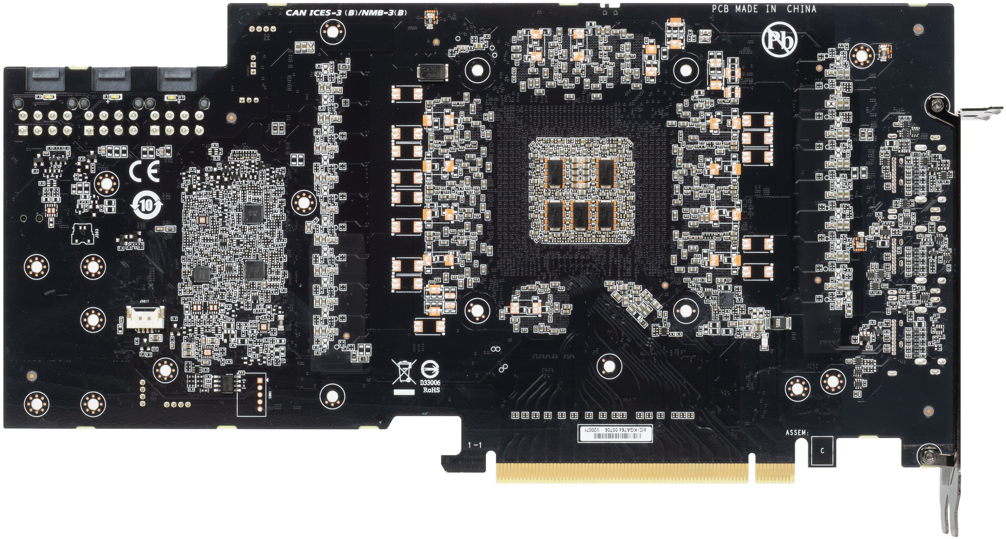 Карта имеет 10 ГБ памяти GDDR6X SDRAM, размещенной в 10 микросхемах по 8 Гбит на лицевой стороне PCB. Микросхемы памяти Micron (GDDR6X, MT61K256M32JE-19) рассчитаны на условную номинальную частоту работы в 4750 (19000) МГц. Расшифровщик кодов на упаковках FBGA находится здесь.