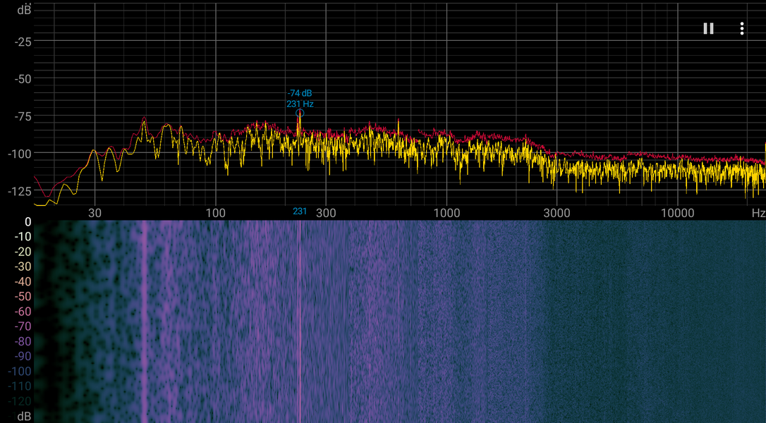 Спектрограмма шума выявила небольшой пик в районе 200 Гц, но на слух он вроде бы не прослушивается.