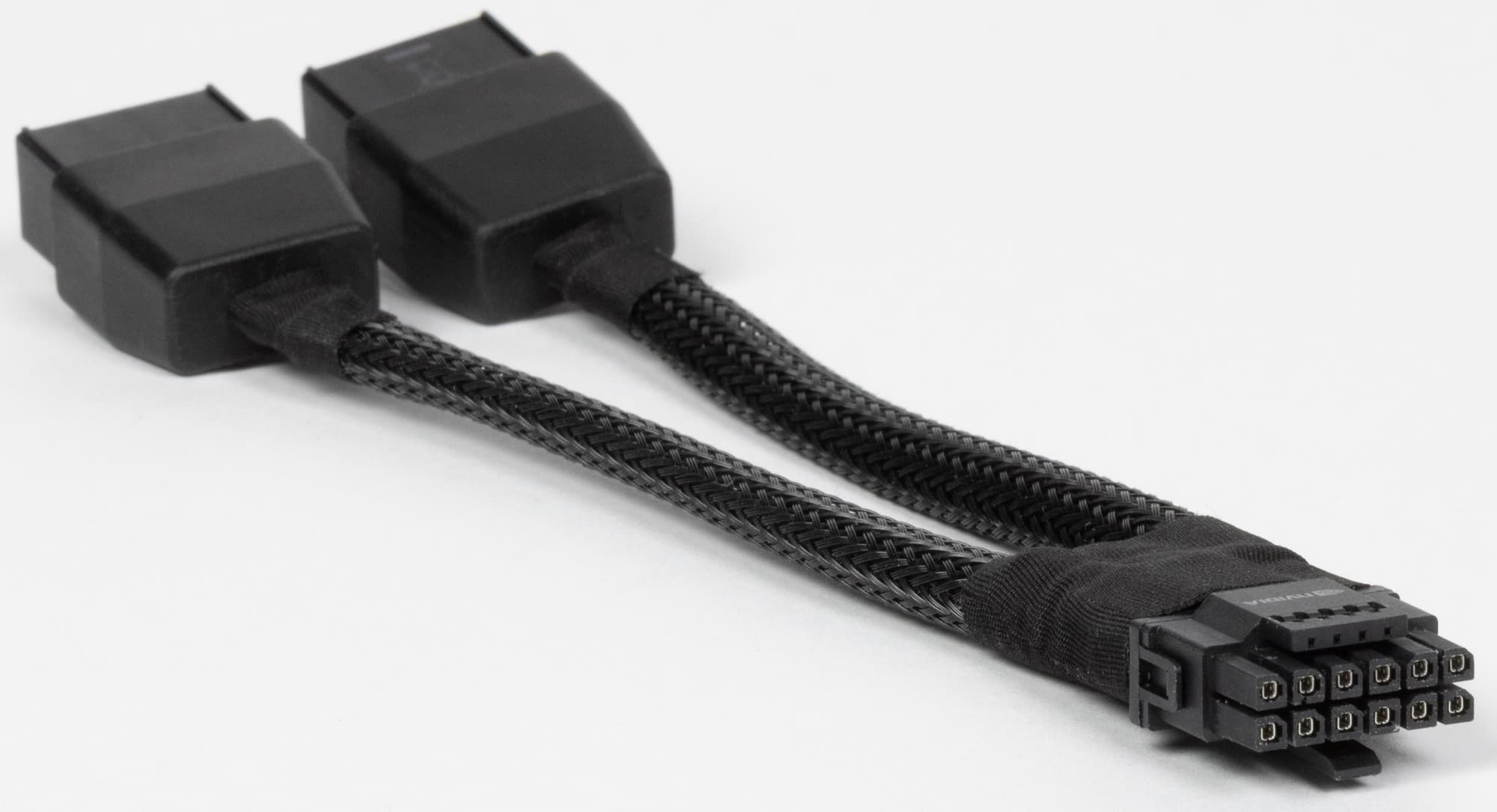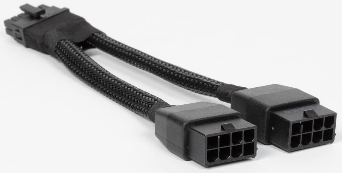В комплекте также лежит переходник питания с двух 8-контактных разъемов на один 16-контактный. Адаптер крайне не рекомендуется сгибать в месте той самой оплетки!