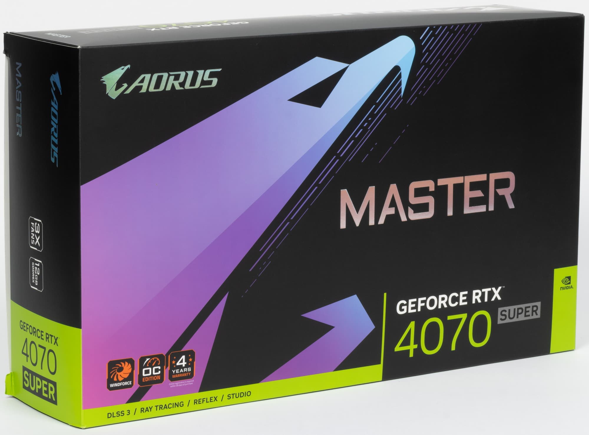 Сегодня мы изучаем видеокарту Aorus, суббренда Gigabyte, да еще с фирменным суффиксом Master — а это флагманские видеокарты Aorus. Позабавило сочетание суффиксов Nvidia и Gigabyte: GeForce RTX 4070 Super Master. Не просто владелец, а суперхозяин :)