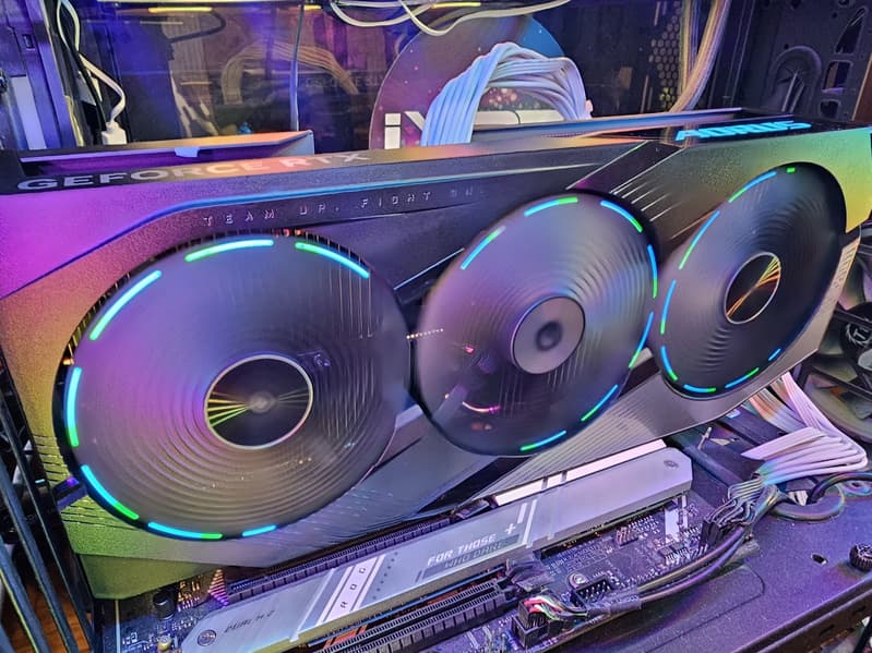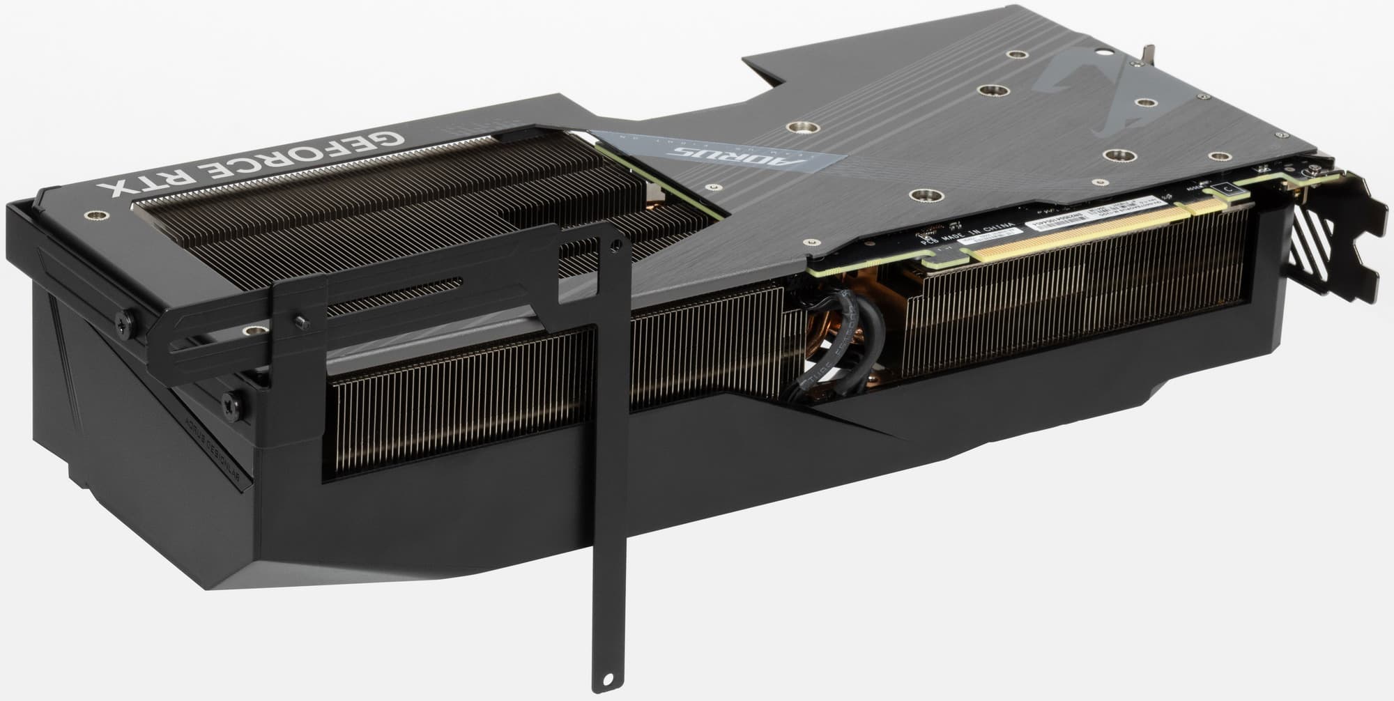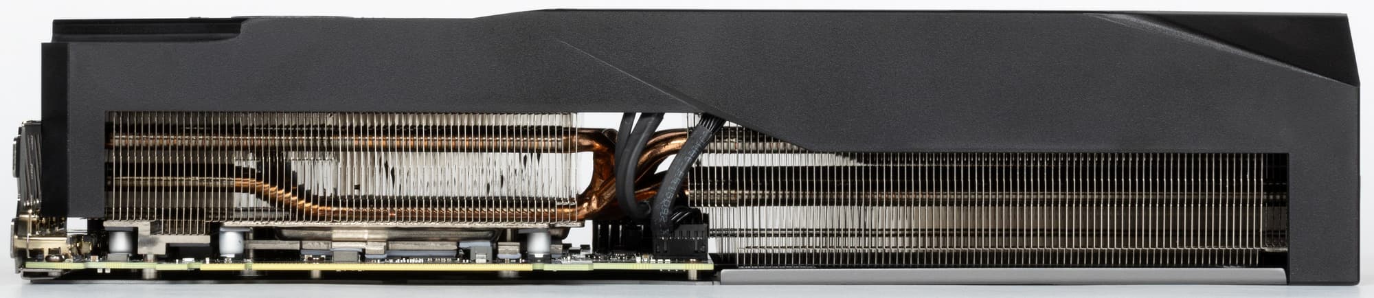 Карта имеет стандартный набор видеовыходов: три DP 1.4a и один HDMI 2.1. Производитель гарантирует прочность и качество печатной платы на высоком уровне. PCB покрыта особым защитным слоем.