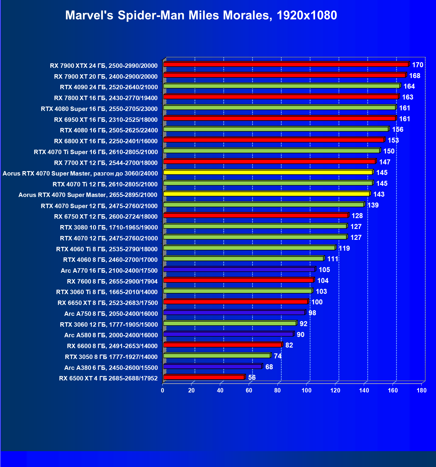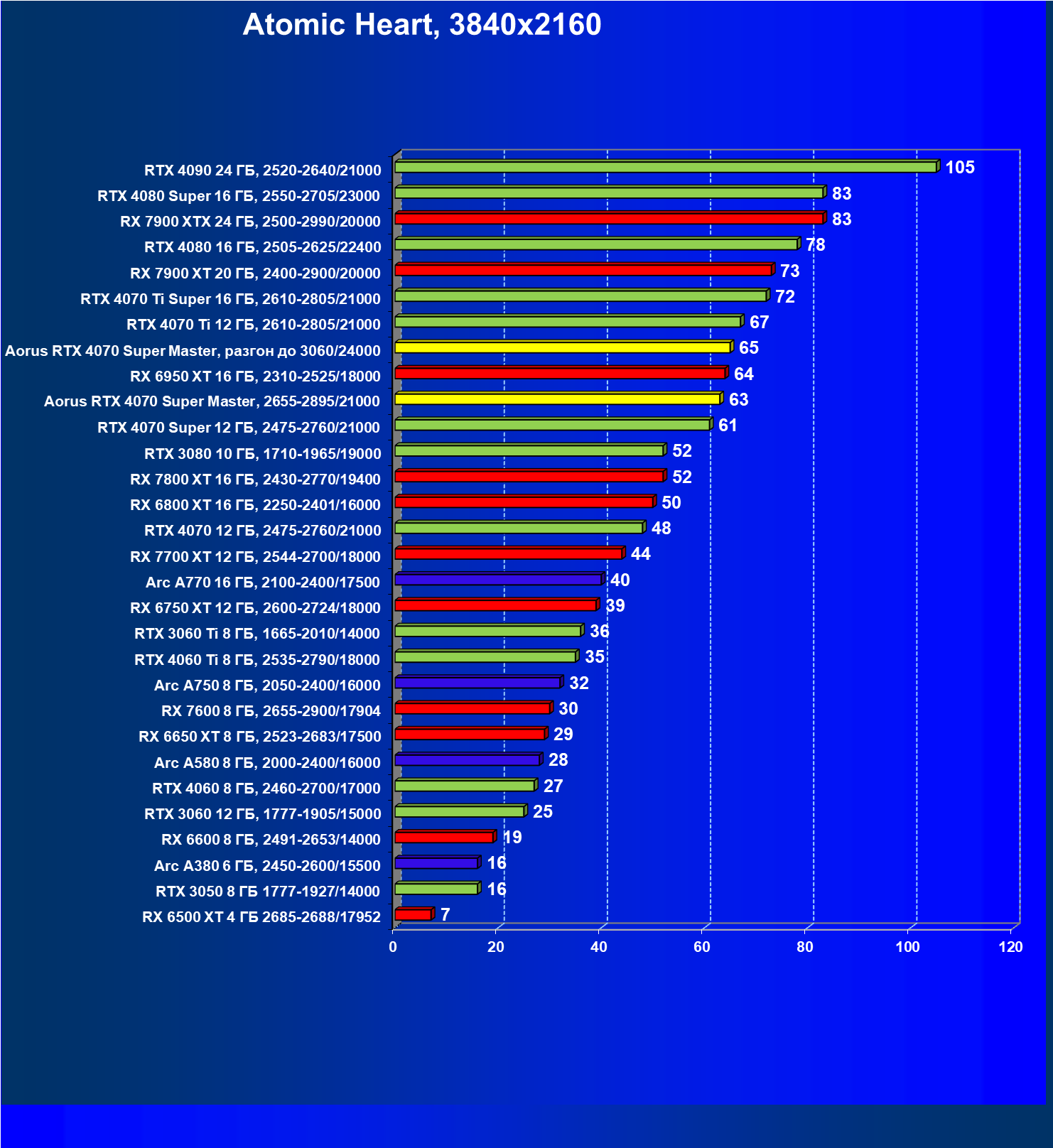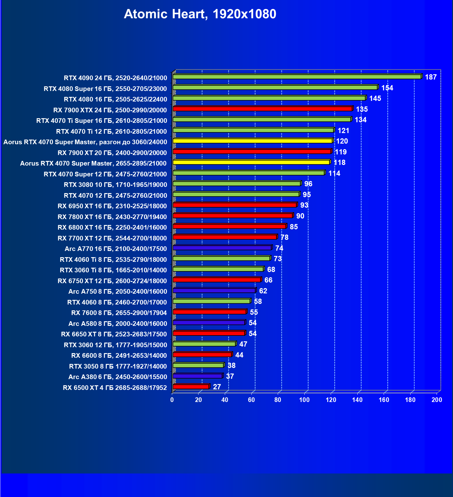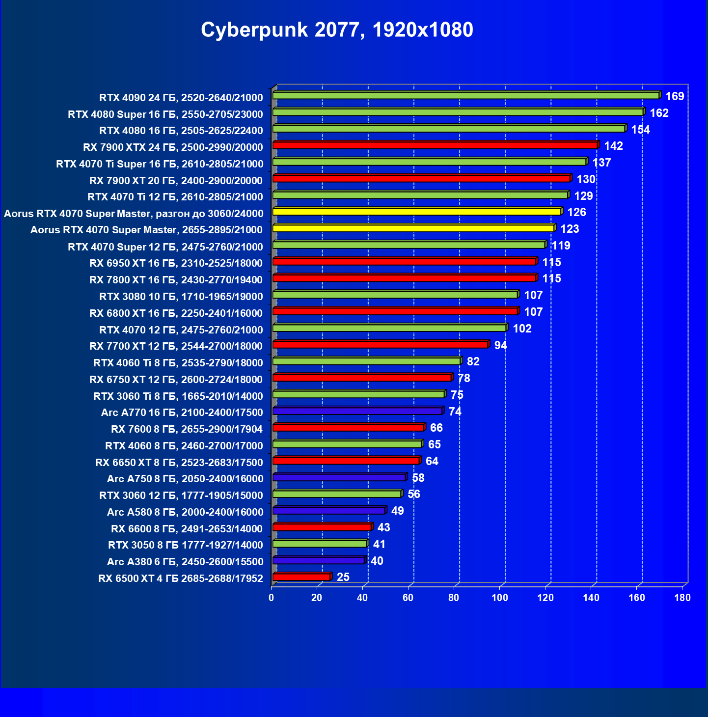 | 07 | Aorus RTX 4070 Super Master, 2655—2895/21000 | 1754 | 214 | 82 000 |