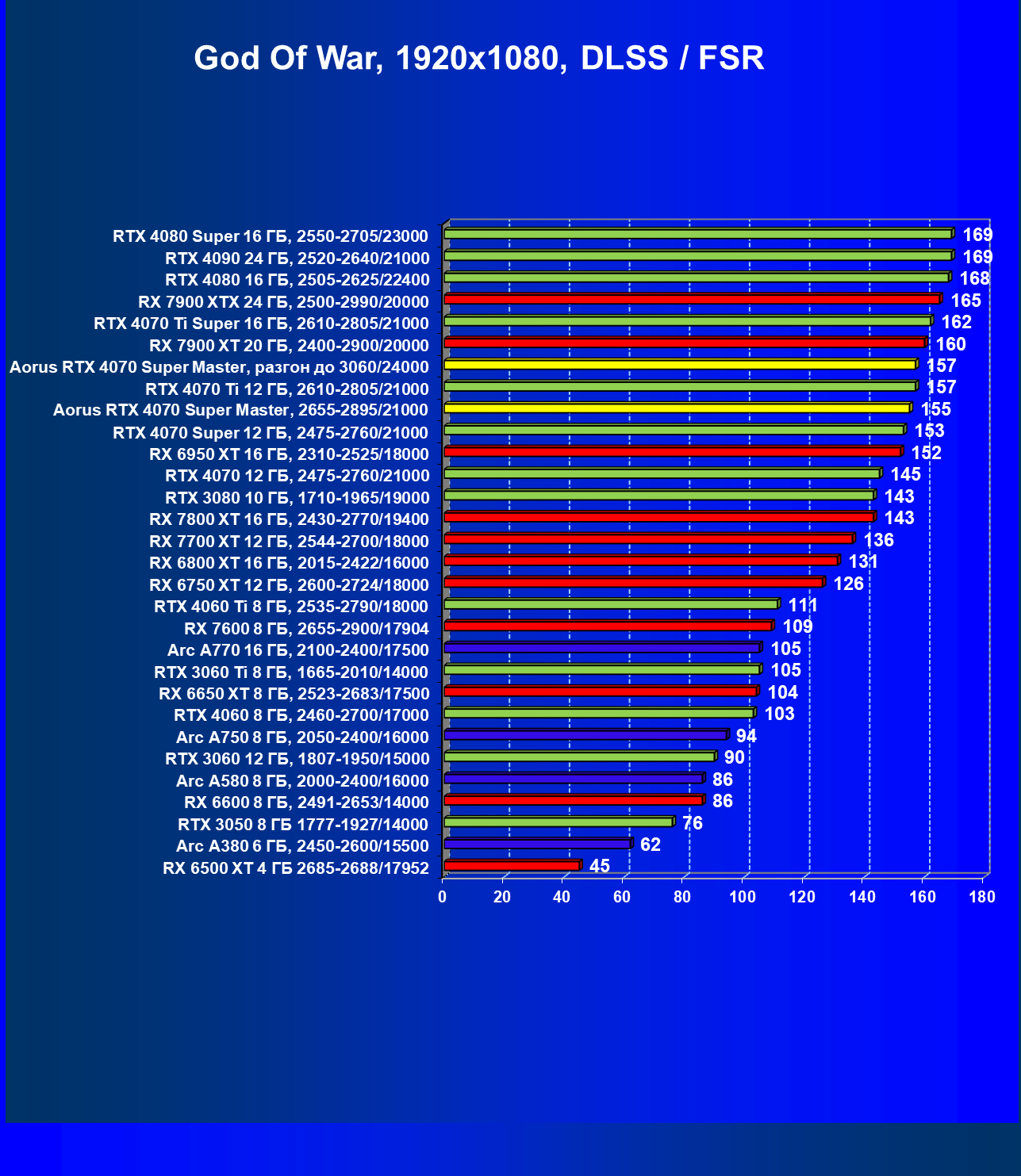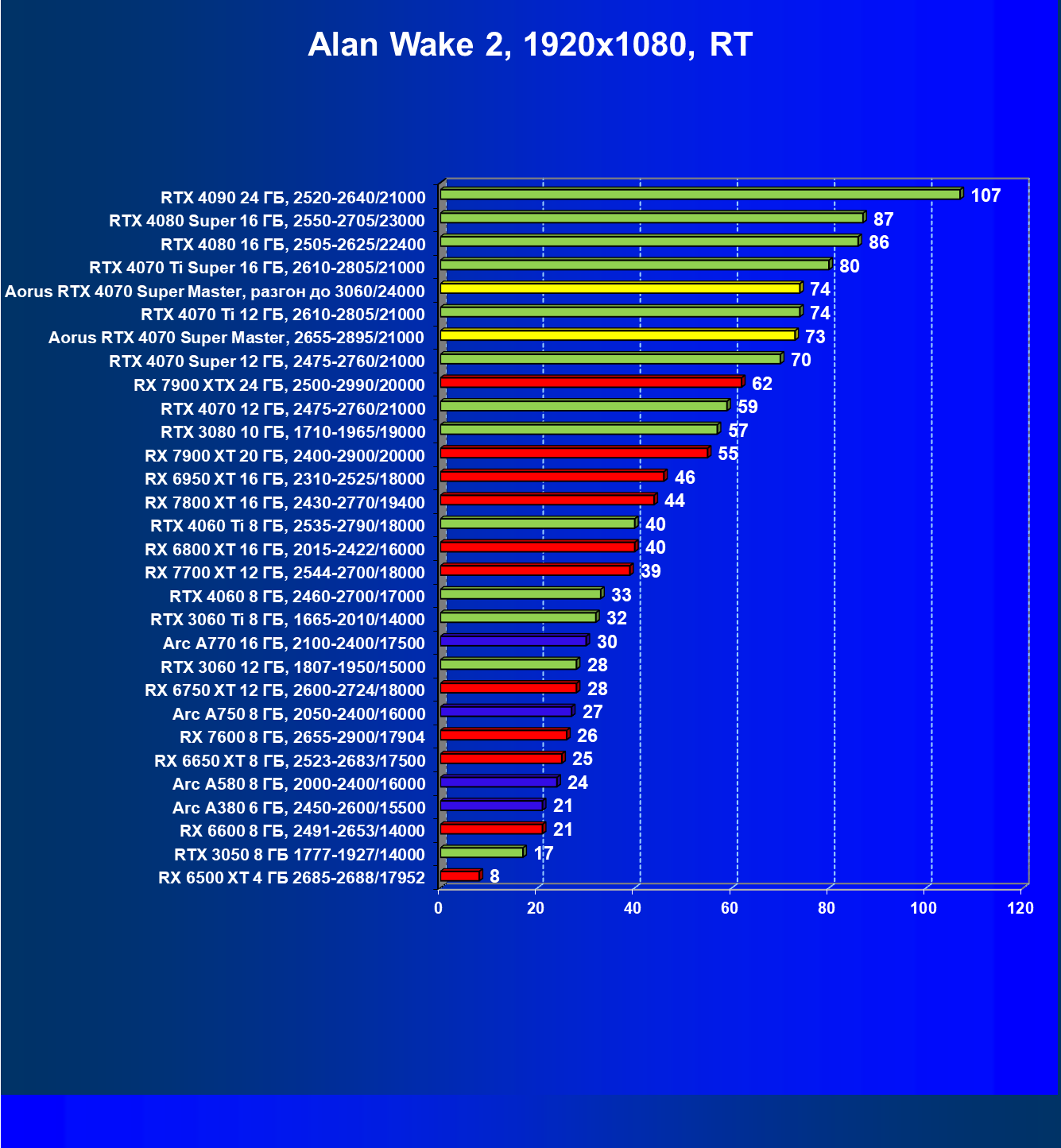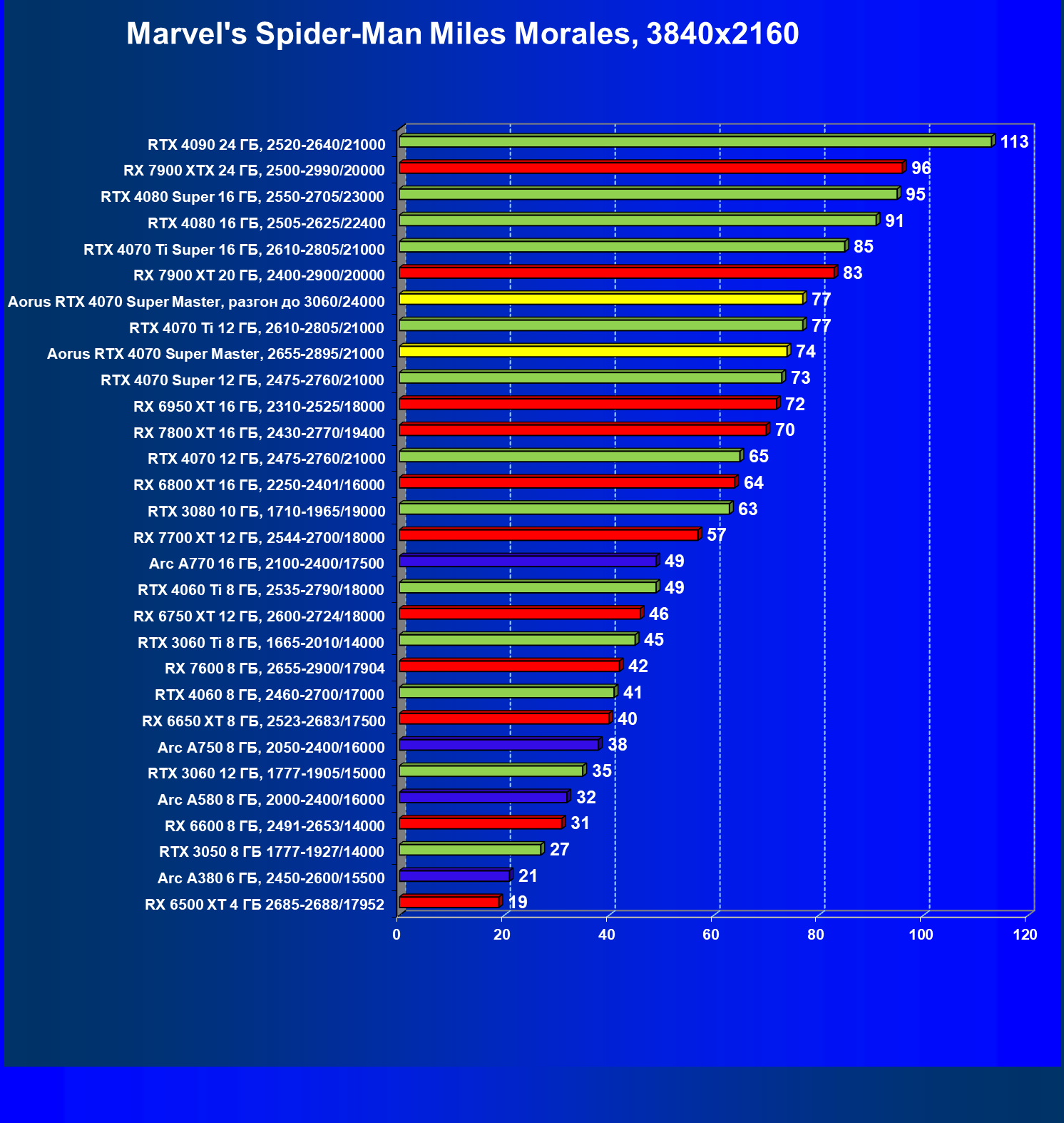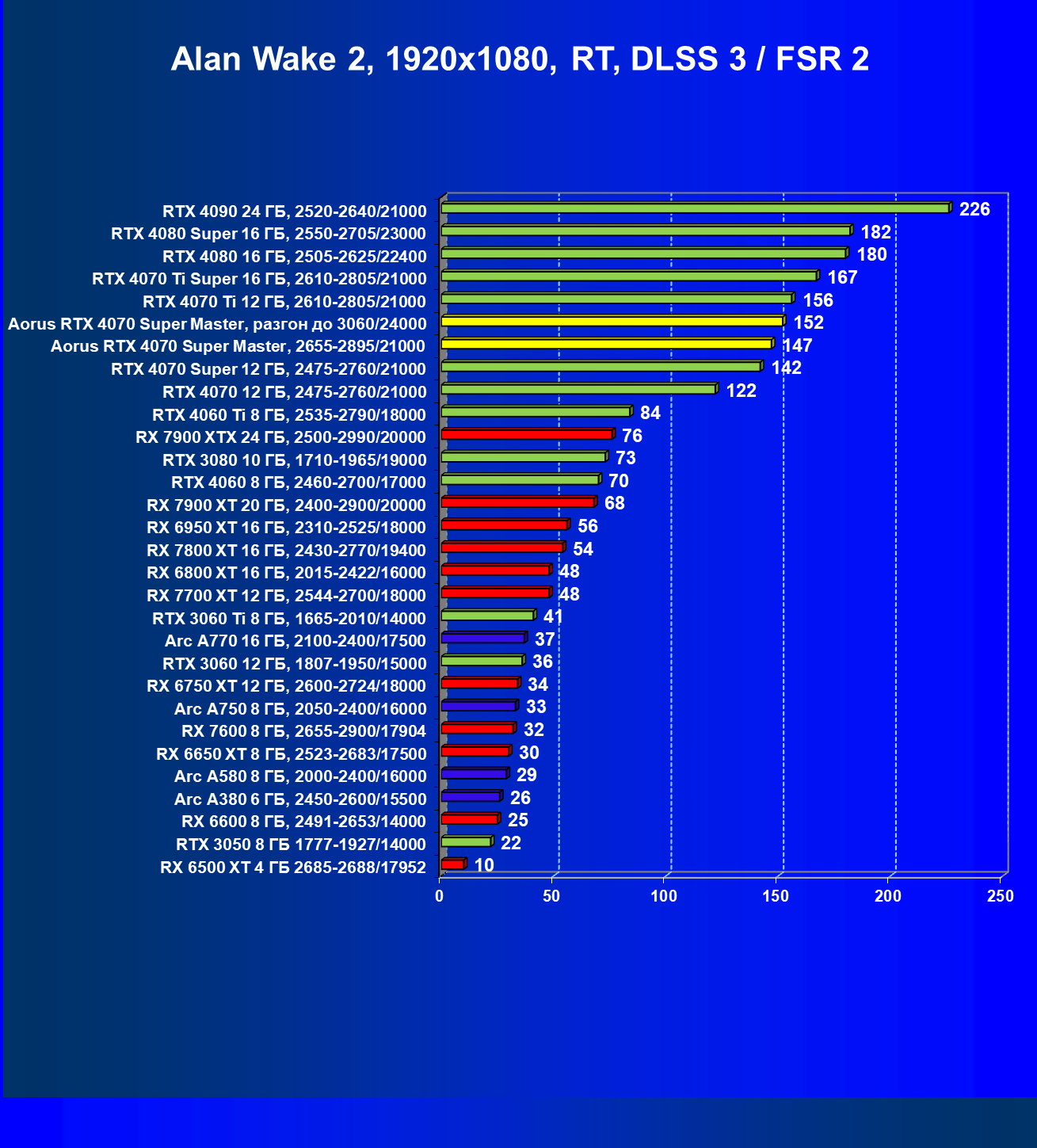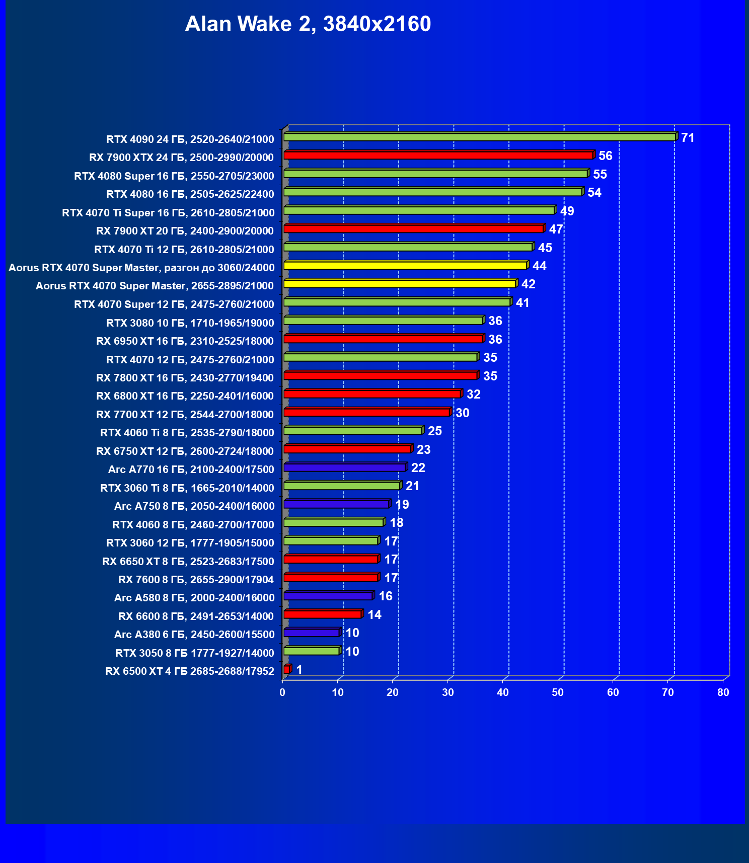 | 07 | Aorus RTX 4070 Super Master, 2655—2895/21000 | 1754 | 214 | 82 000 |