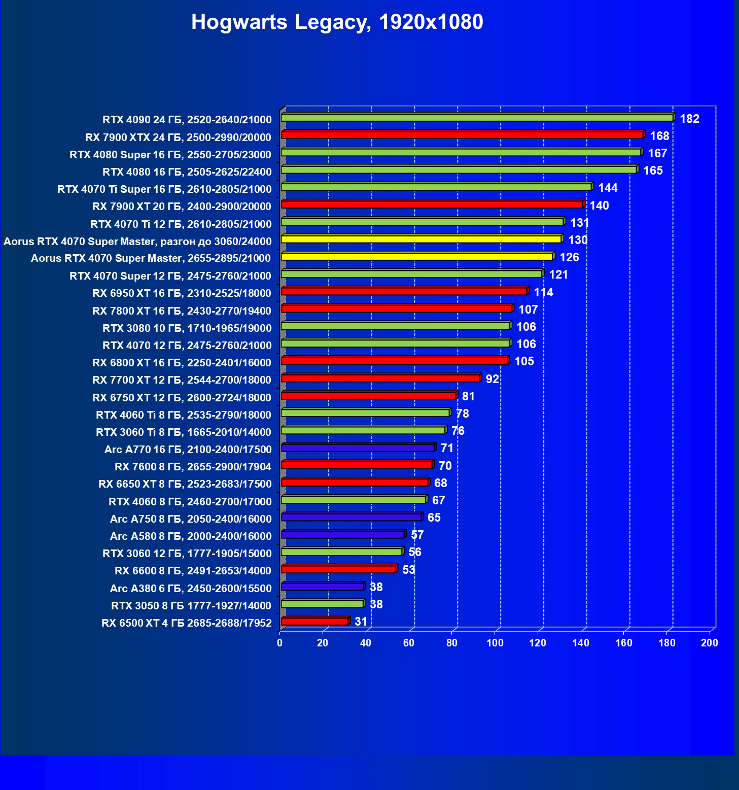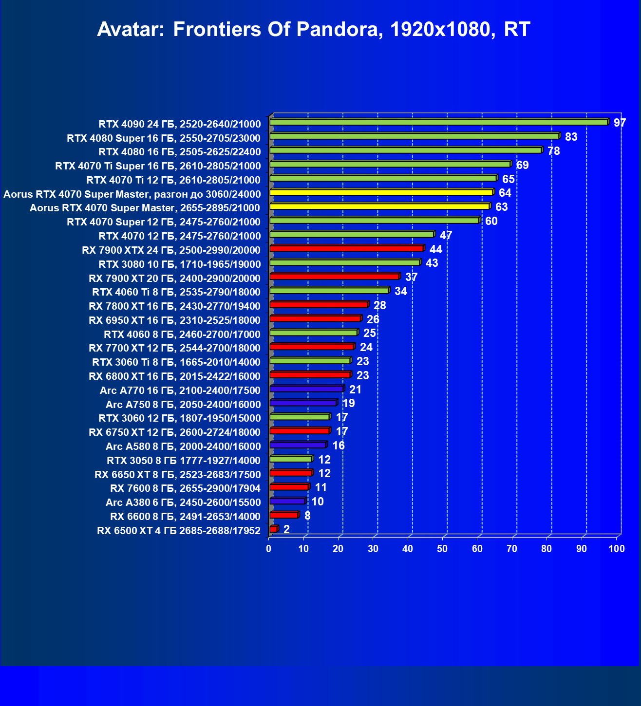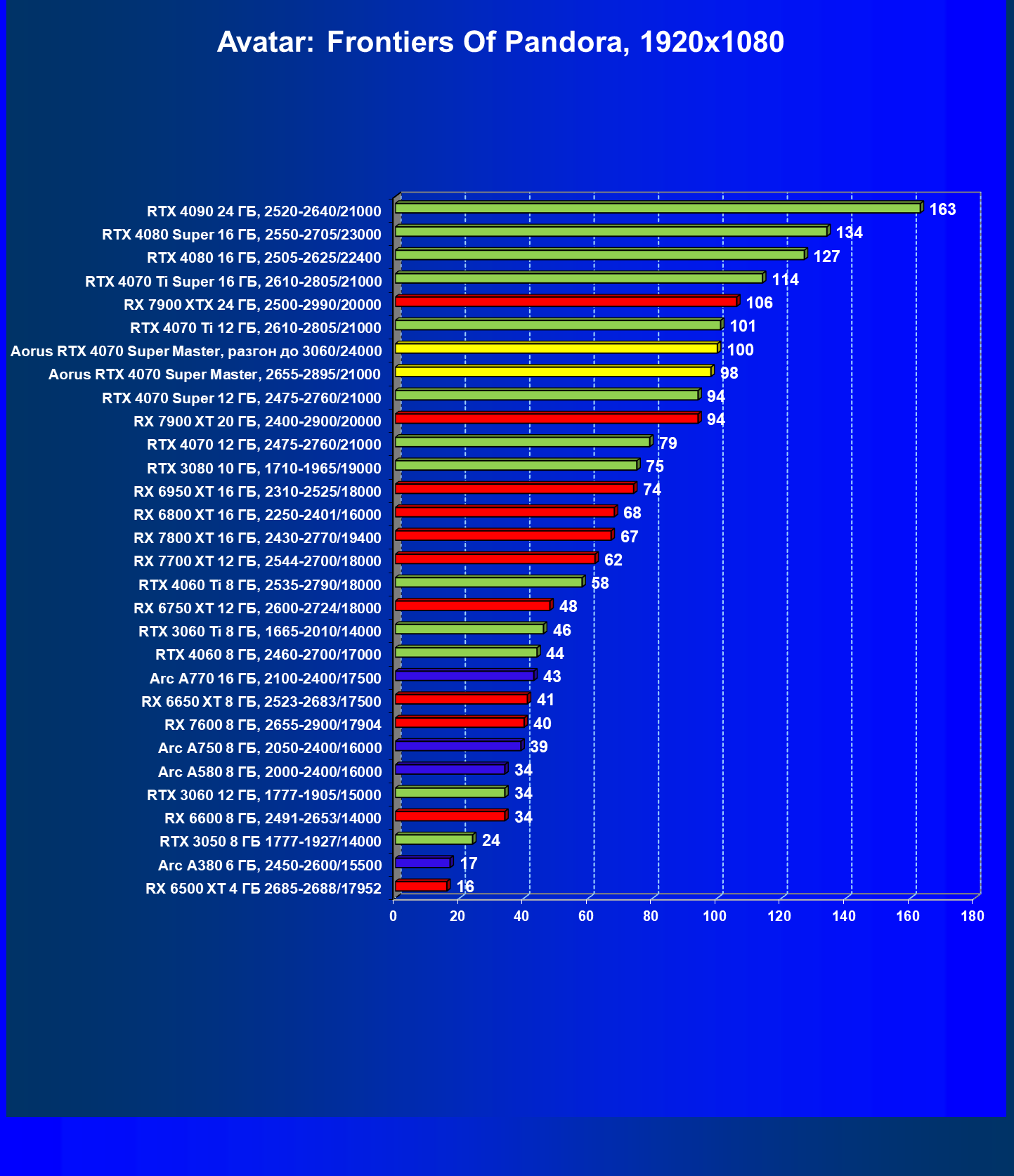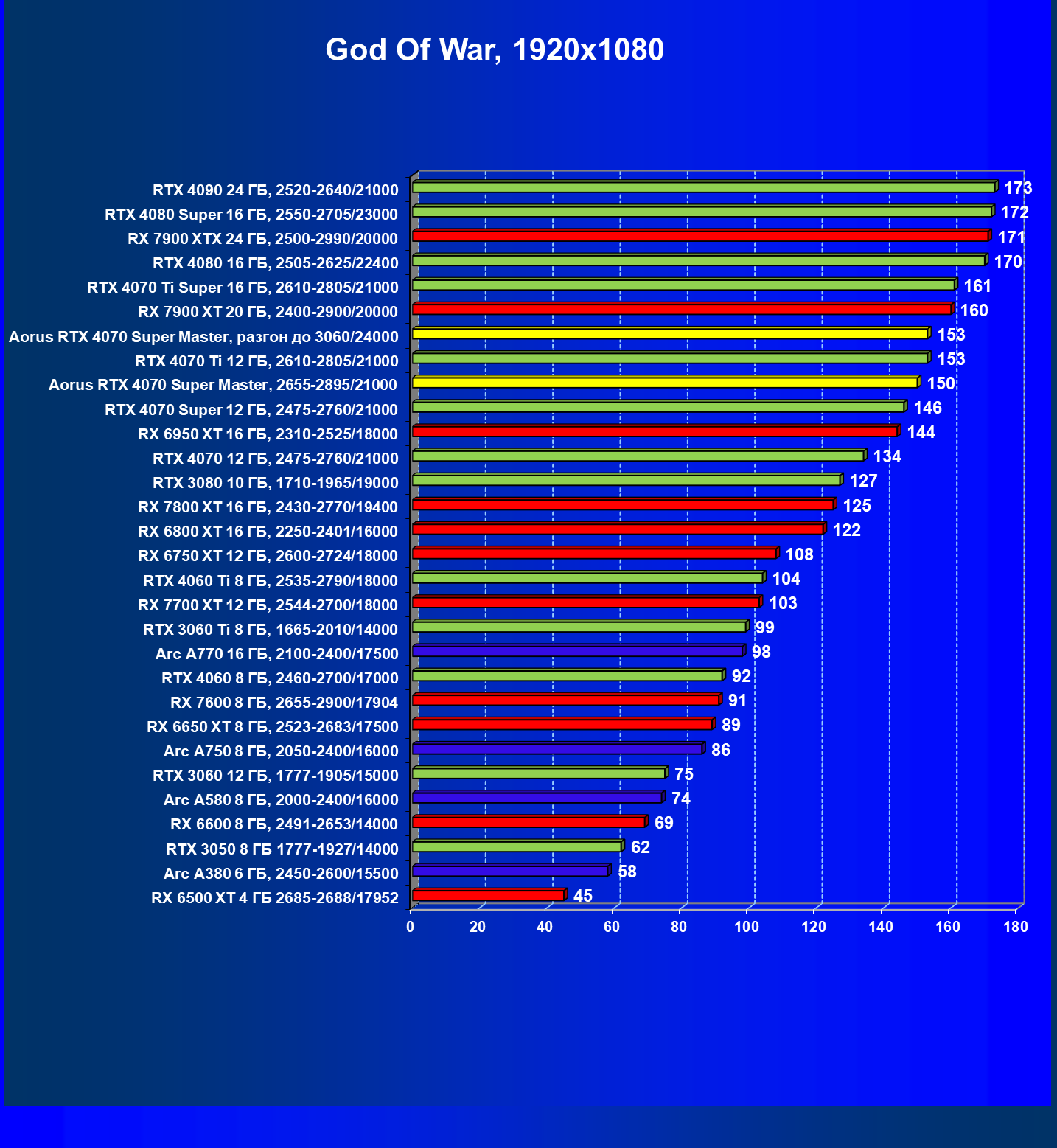 | 07 | Aorus RTX 4070 Super Master, 2655—2895/21000 | 1754 | 214 | 82 000 |