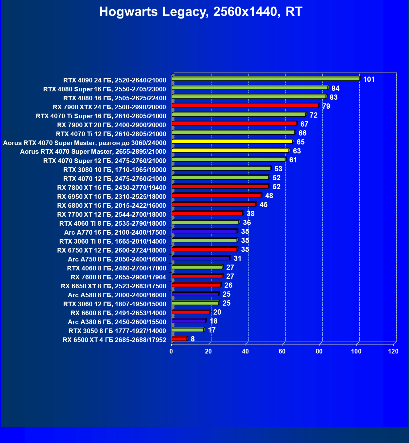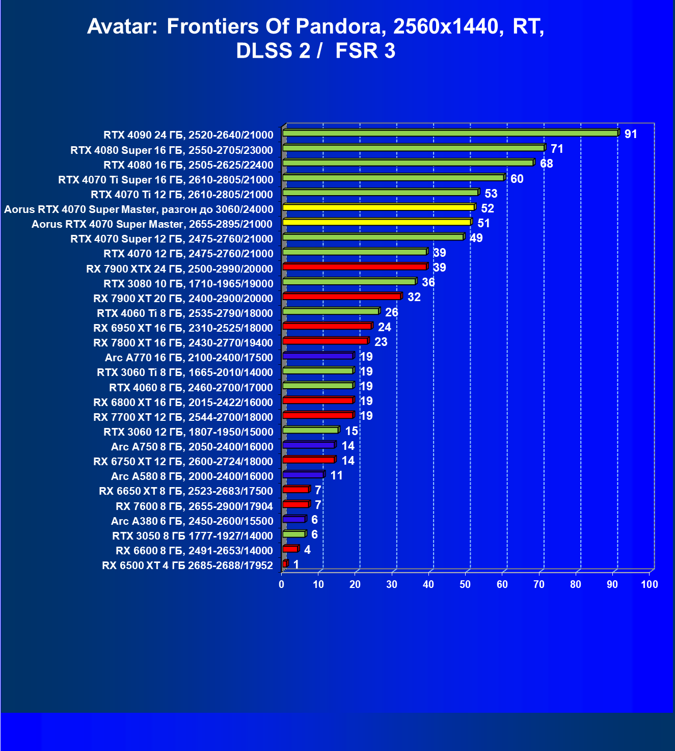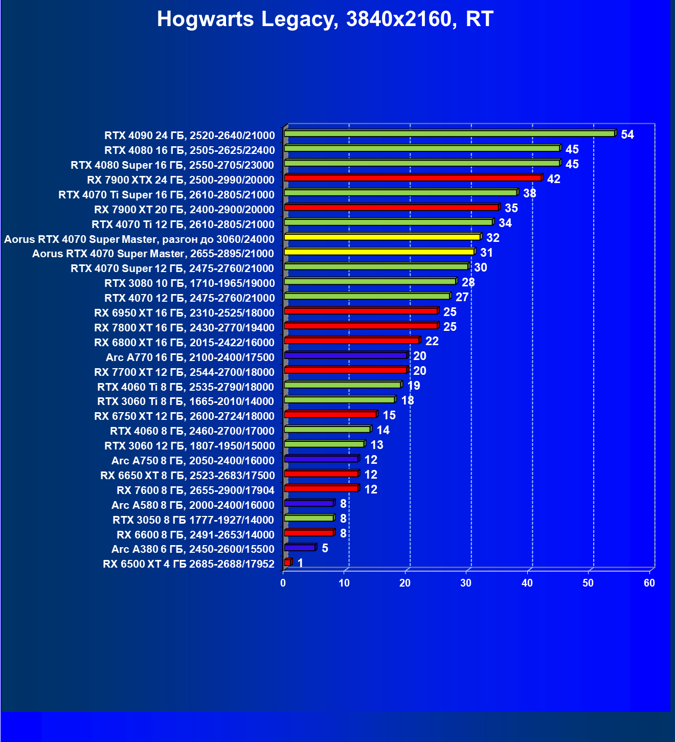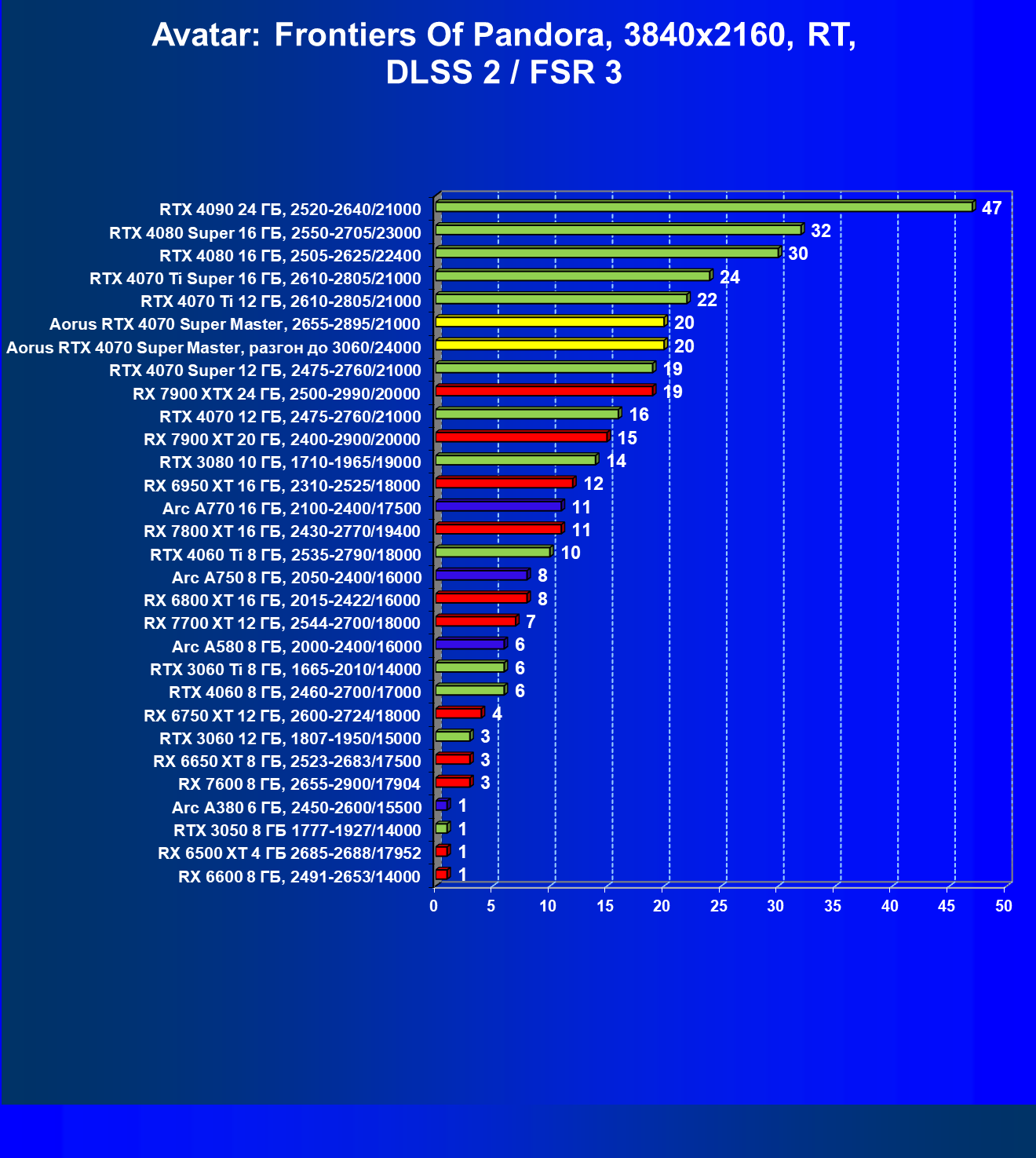 | 24 | Aorus RTX 4070 Super Master, 2655—2895/21000 | 72 | 589 | 82 000 |