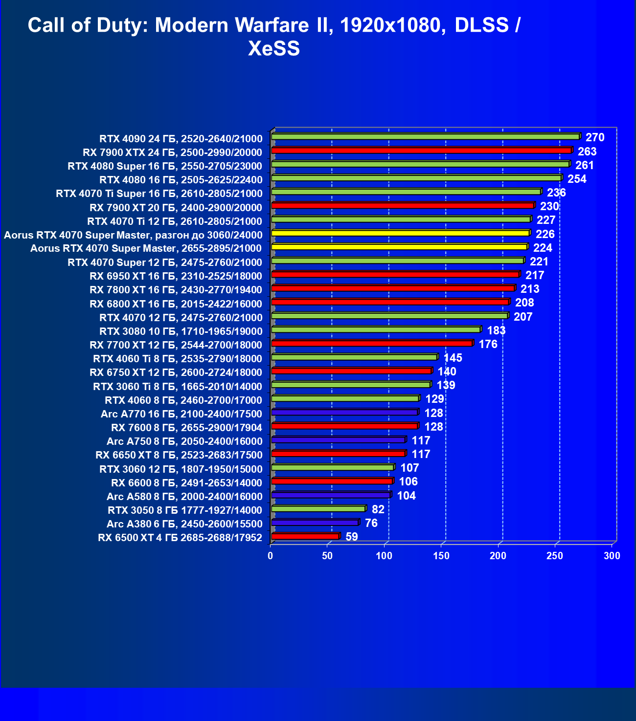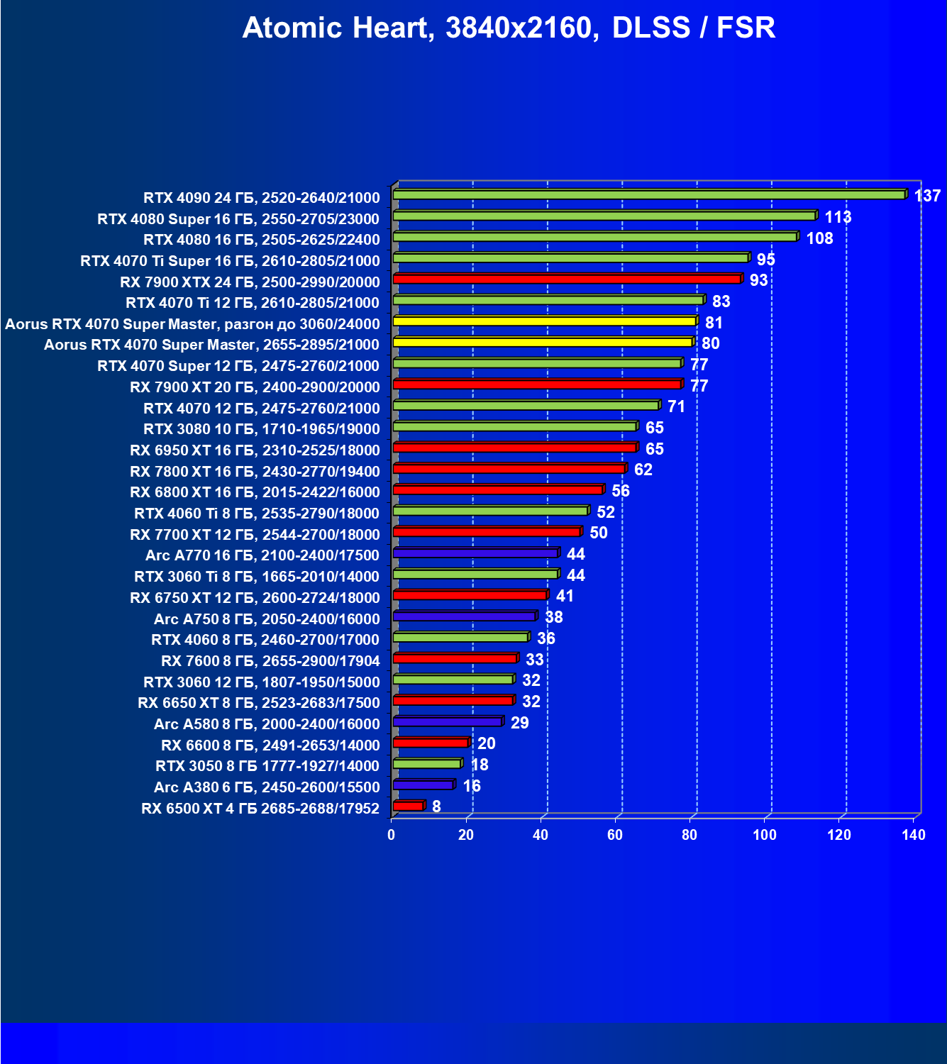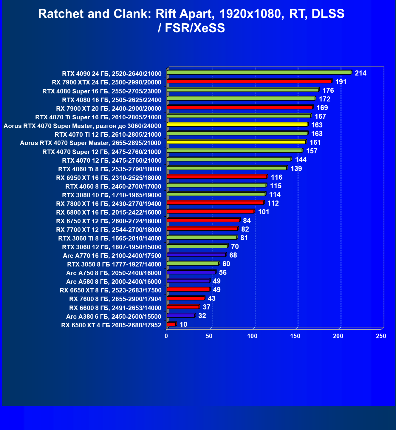 | 09 | Aorus RTX 4070 Super Master, 2655—2895/21000 | 214 | 1754 | 82 000 |